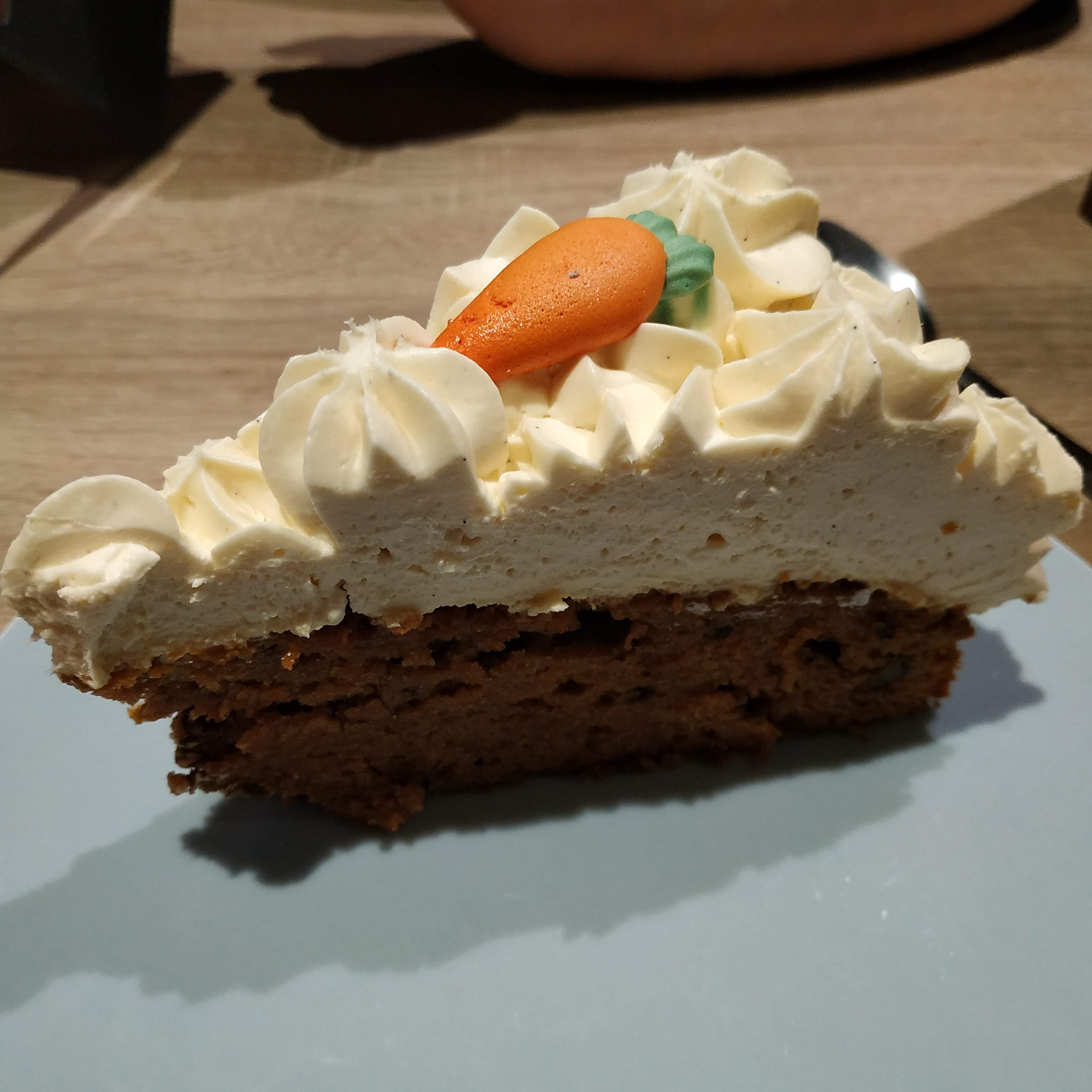 J'ai mangé ici l'un des morceaux de gâteau aux carottes les plus gros et les plus délicieux à ce jour.