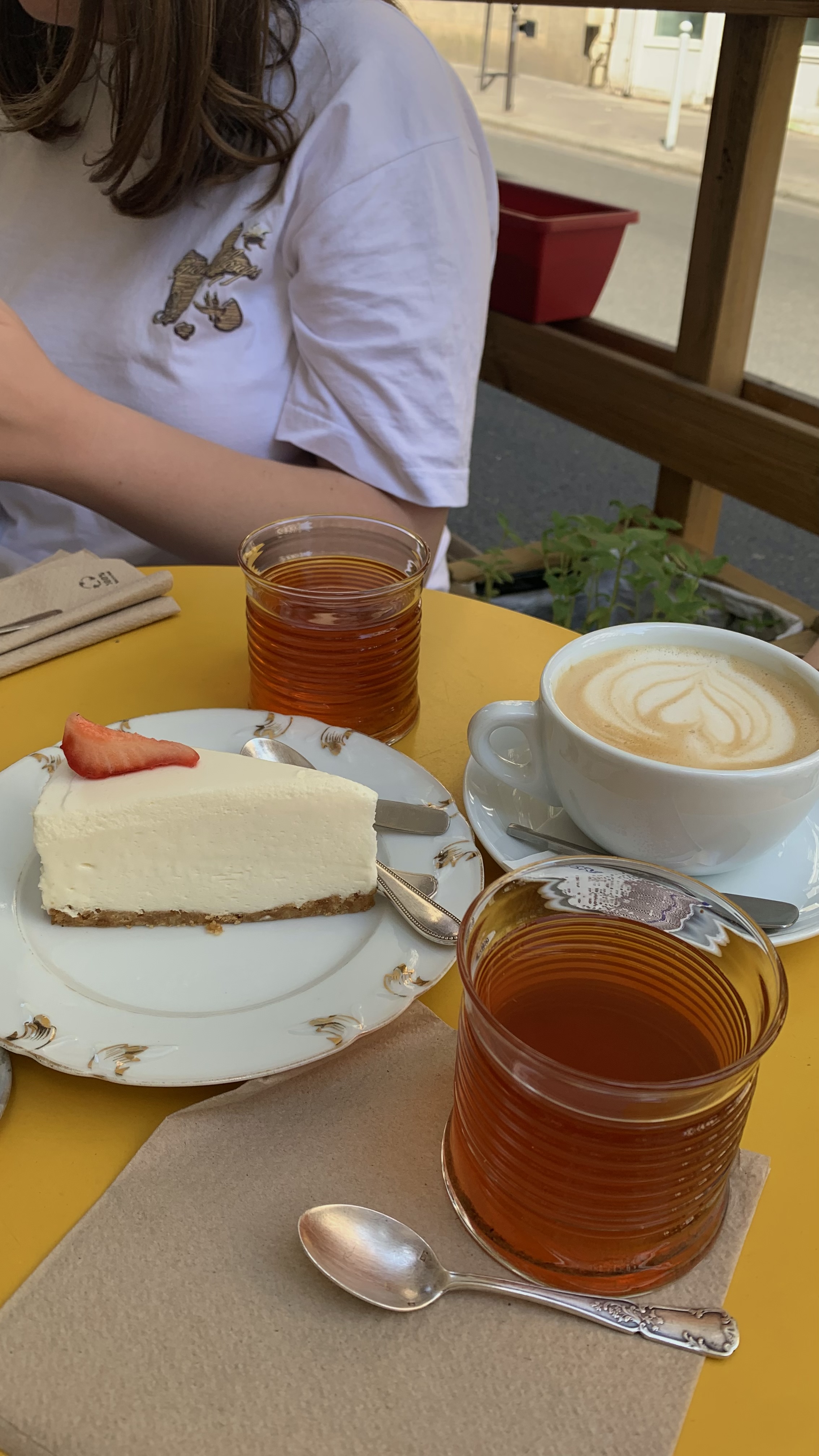 Je n'ai pas aimé le cheesecake. Trop cremeux et pas de goût ( 6€ sur place). Il faisait un peu froid dans le café