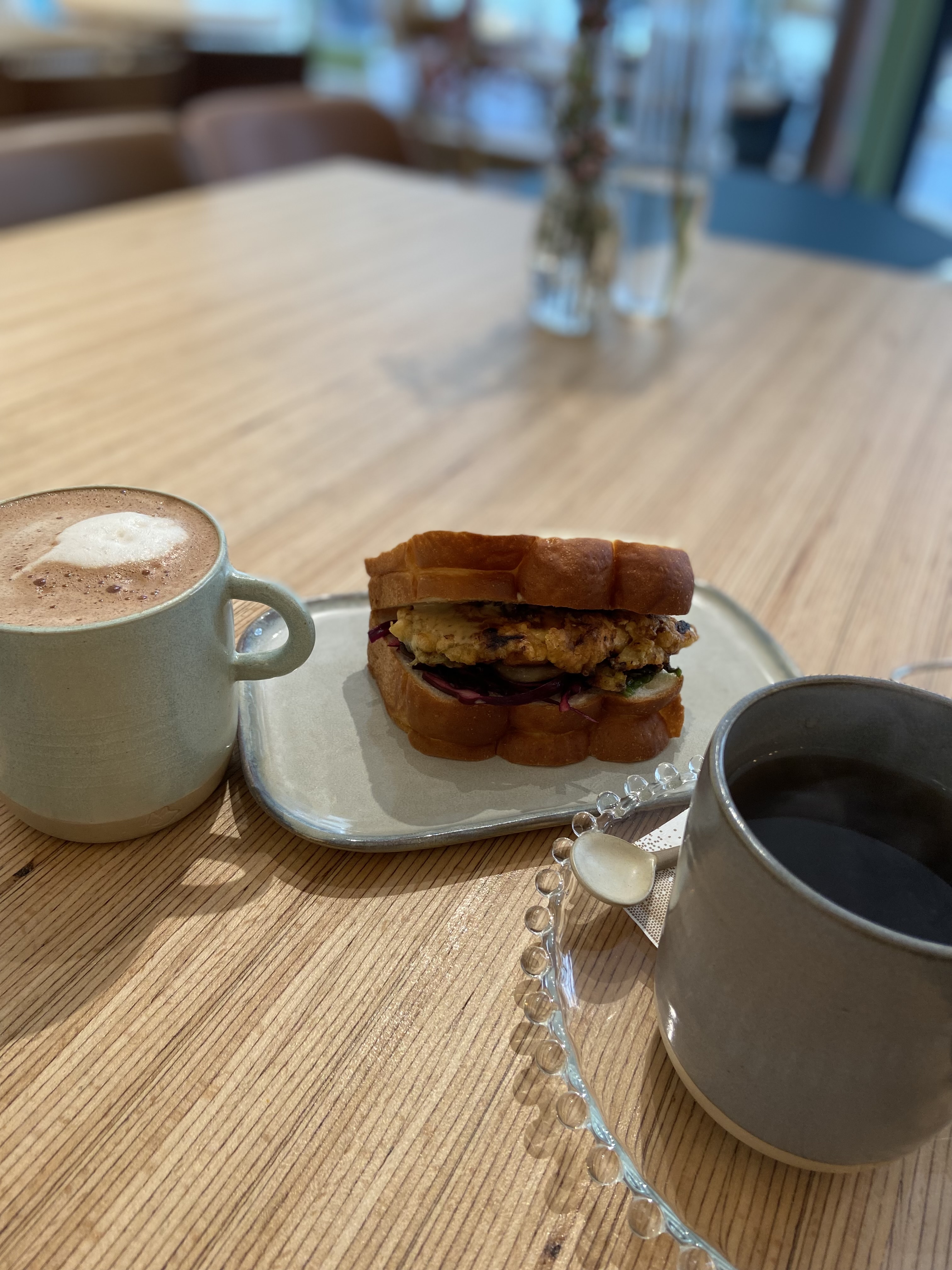Waouh ! Quelle belle trouvaille ! Je suis allé juste prendre un café et j'ai fini par rester pour le déjeuner. Avec un menu de saison et les serveurs les plus gentils - je me suis senti pris en charge et je ne le recommanderais pas assez ! belles céramiques de l'atelier murmur également !!