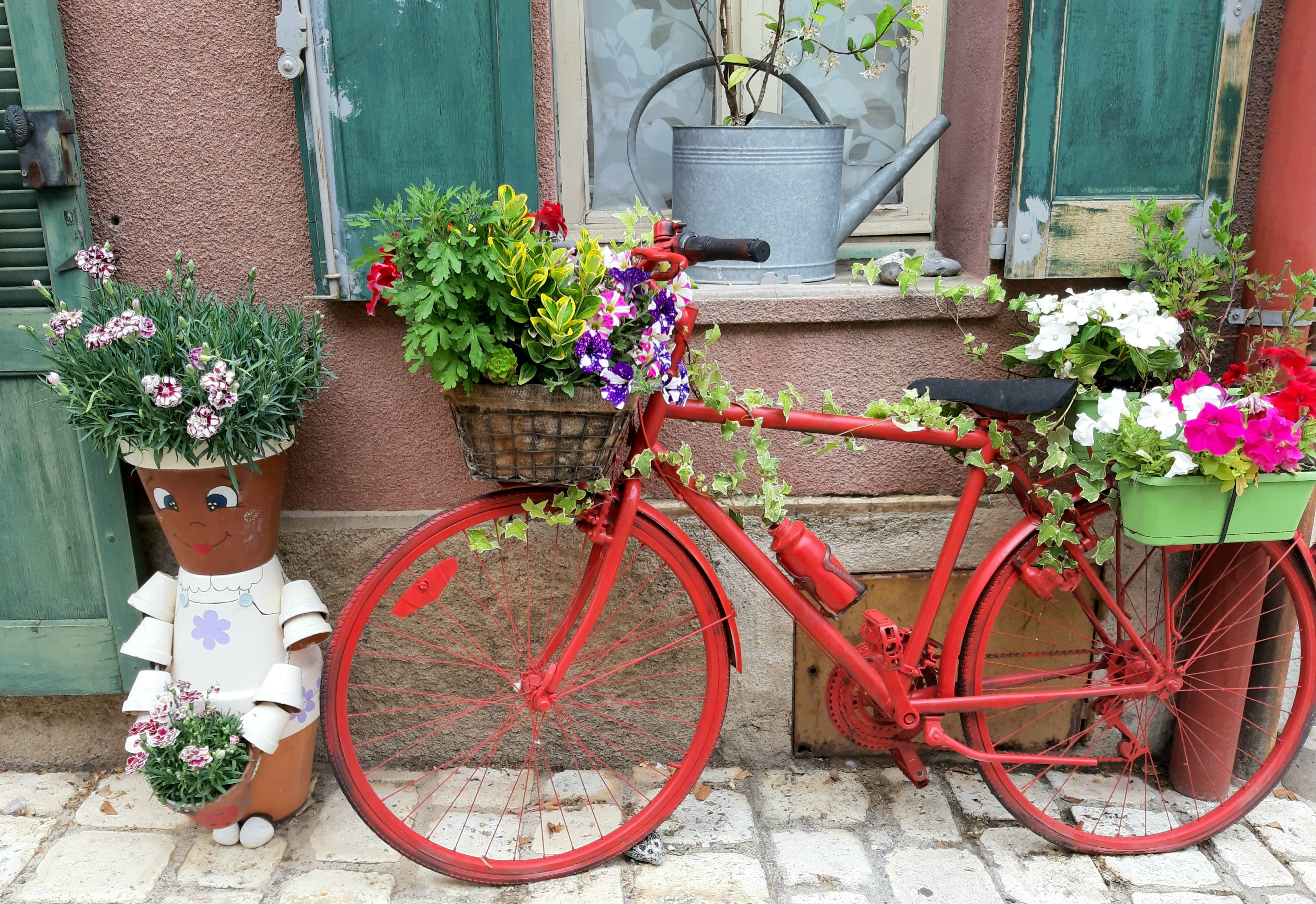 Belles surprises que ces peintures en trompe l'œil... Façades très fleuries... Mais le dimanche, pas grand chose d'ouvert...
