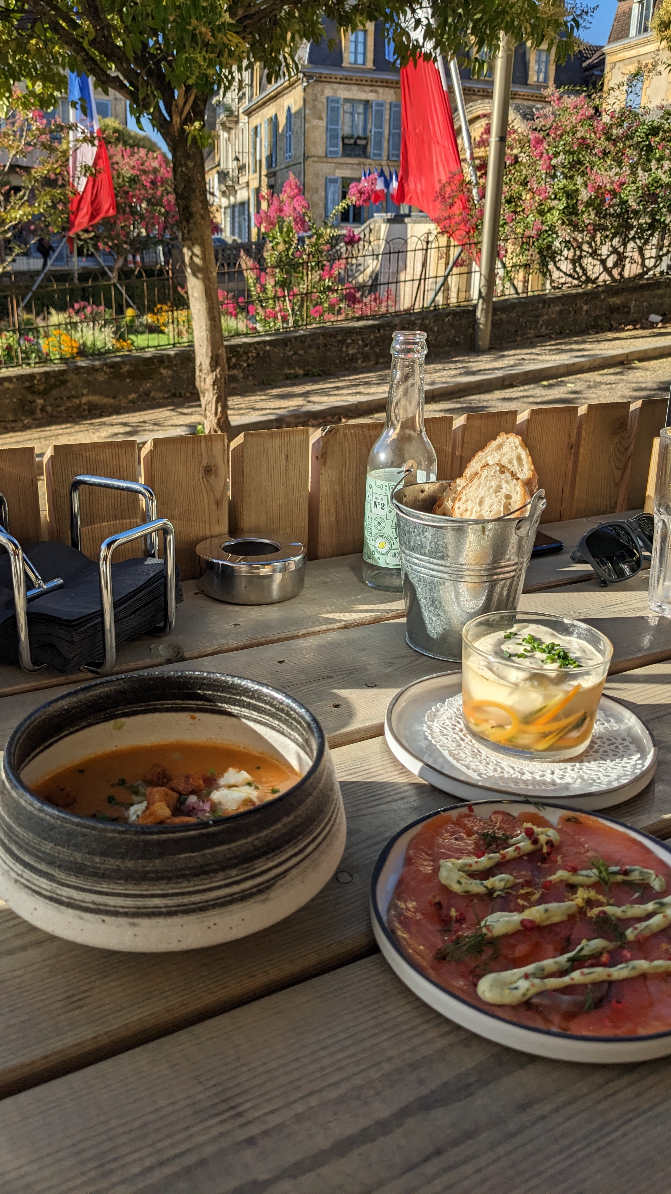 Un moment très agréable en terrasse et en novembre. Façon tapas haute de gamme. Une cuisine goûteuse, des jus incroyables, une jolie carte de petits plats à partager. Qualité et service sont au rendez vous au cœur de Sarlat.