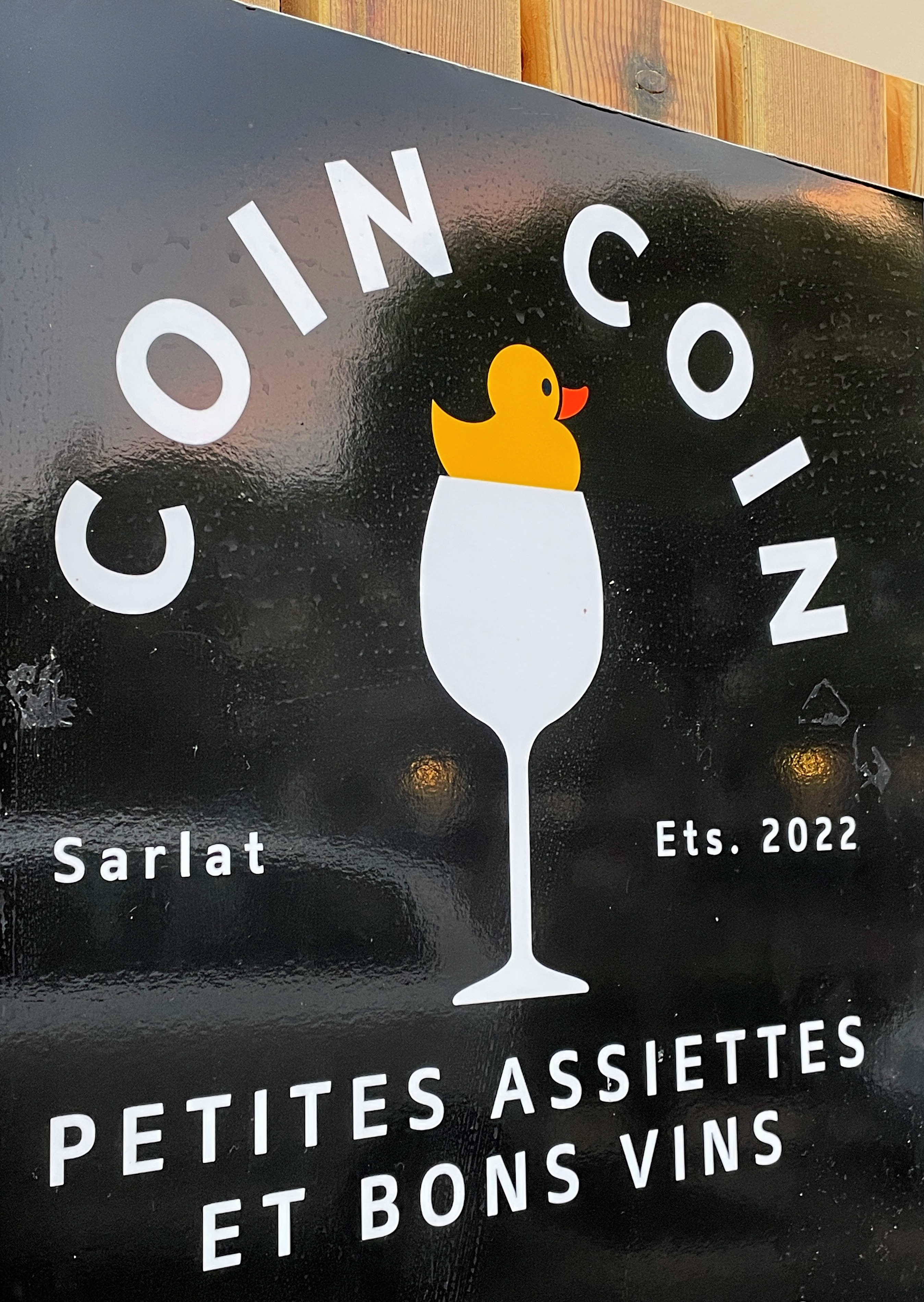 A quelques minutes de marche des ruelles médiévales de Sarlat, Coin Coin nous accueille dans une jolie salle d'inspiration art déco, ou sur une petite terrasse aux beaux jours. A la fois bar à vin et restaurant bistronomique, la carte propose plusieurs petites assiettes de type tapas. Cuisine raffinée. Tout est fait maison avec des produits locaux. Les fournisseurs sont mentionnés sur la carte en toute transparence ce qui est un vrai atout. Les différents plats commandés étaient tous bons. Cependant la qualité a un prix, et Coin Coin ne s'adresse pas à toutes les bourses. Si vous souhaitez y faire un vrai repas (et pas simplement du grignotage), l'addition sera plutôt salée. Si le rapport qualité / prix est cohérent, le rapport quantité / prix l'est moins de mon point de vue. Les petites assiettes portent bien leur nom et il en faut bien 3 pour se sustenter (et sans doute d'avantage pour les plus gros mangeurs) A 10€, les pâtisseries du café gourmand mériteraient d'être un peu plus consistantes. La tuile croustillante à la mousse d'orange fut une belle découverte. En résumé, une expérience gustative réussie, une ambiance sympa, mais pas à la portée de tous les budgets.