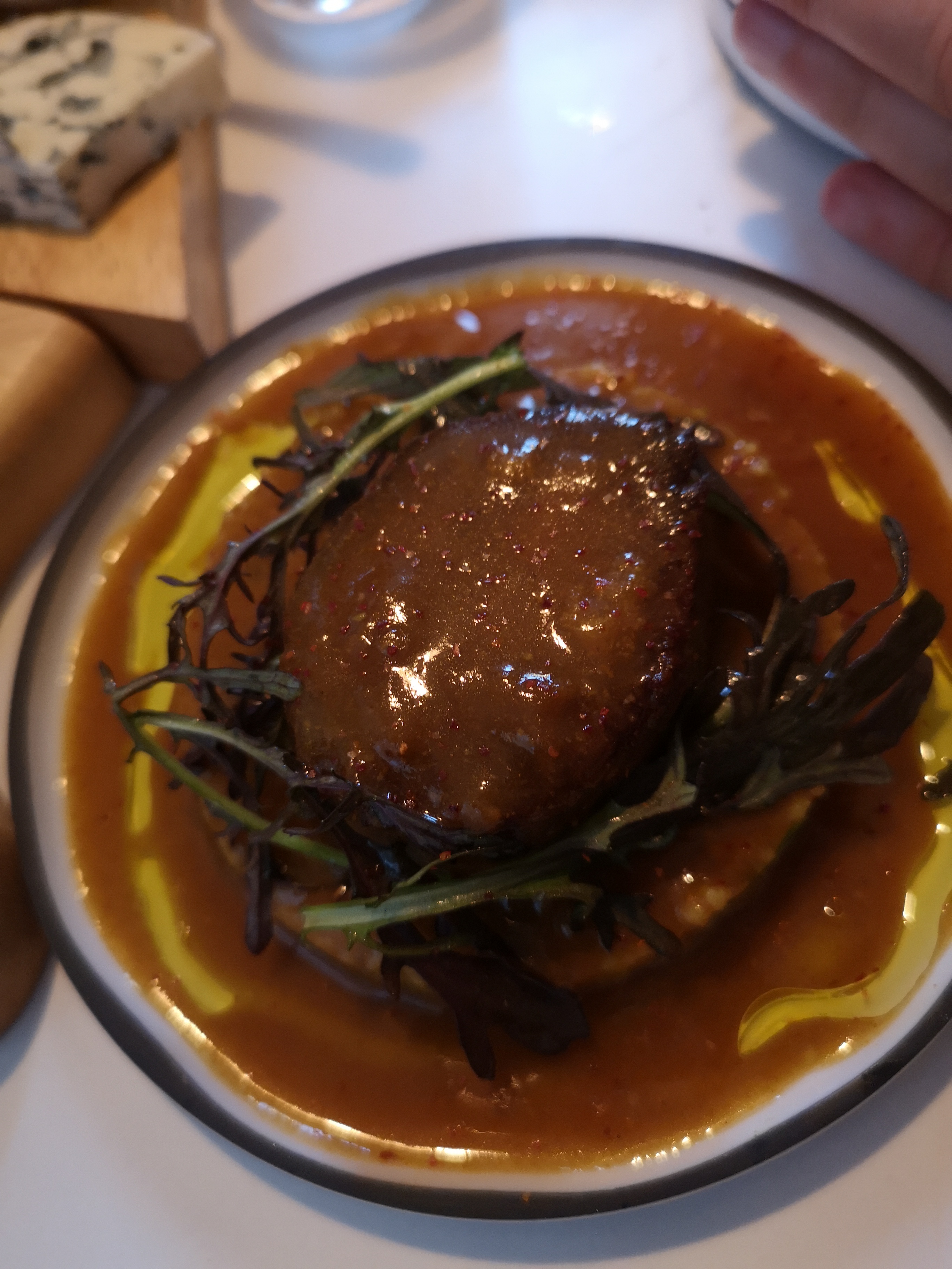 Tapas bas de gamme magret sèché industriel, produit très froid donc pas de saveur, planche de fromage miniature 4 morceaux de bleu à oui ! 9€ la planche mais si vous n'aimais pas le bleu tant pis pour vous. Le serveur pousse à la consommation à eviter. 43 € pour 4 petites assiettes un peu cher gros mangeur s'abstenir !!!