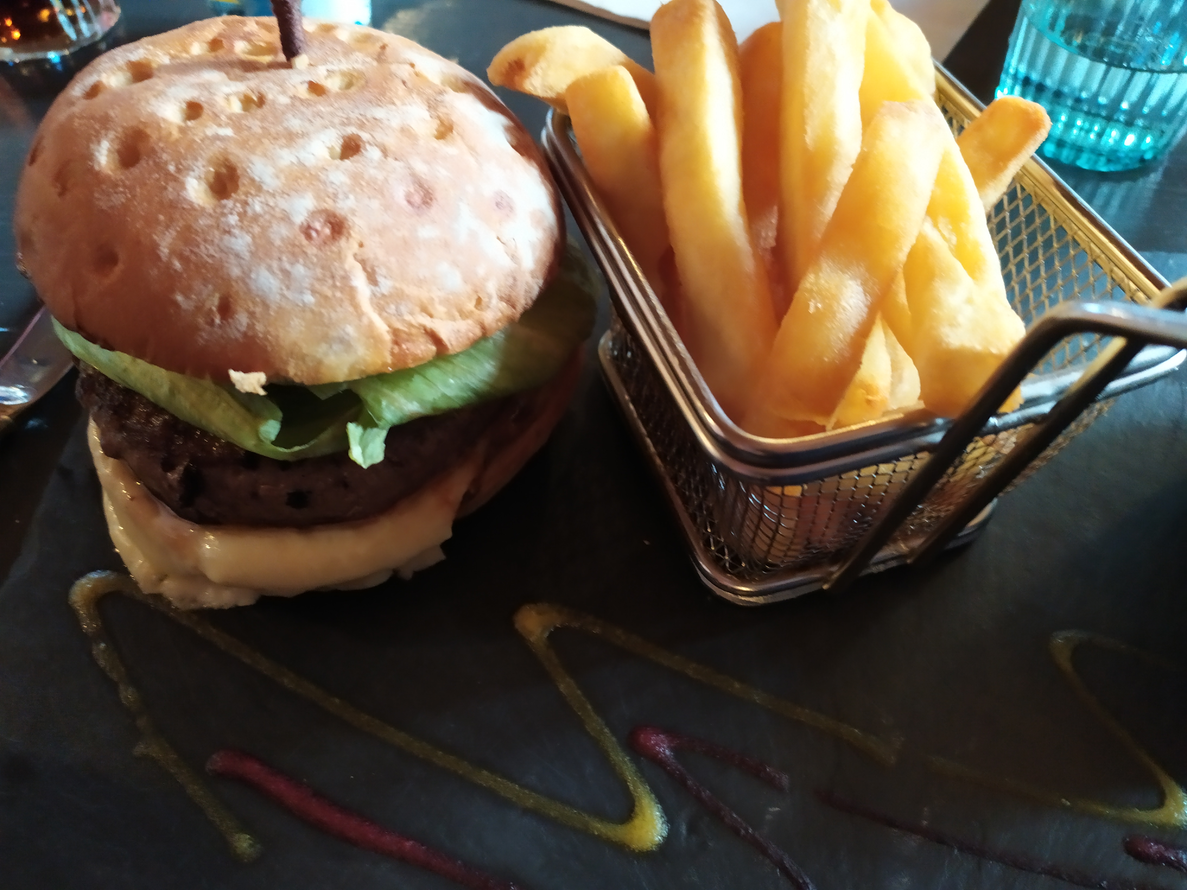 Bonsoir, donc on a pris 2 poulets noisettes et un veggie burger a emporter le goût était bon mais le prix est trop élevé pour la quantité la sauce curry pour le burger était pas bonne et le dessert pomme caramélisée, des pommes et une cuillère de mascarpone et le reste, c’était pas très bon le mascarpone aurait dû être en forme de sauce avec vanille par exemple. Mais en soit c’était bon