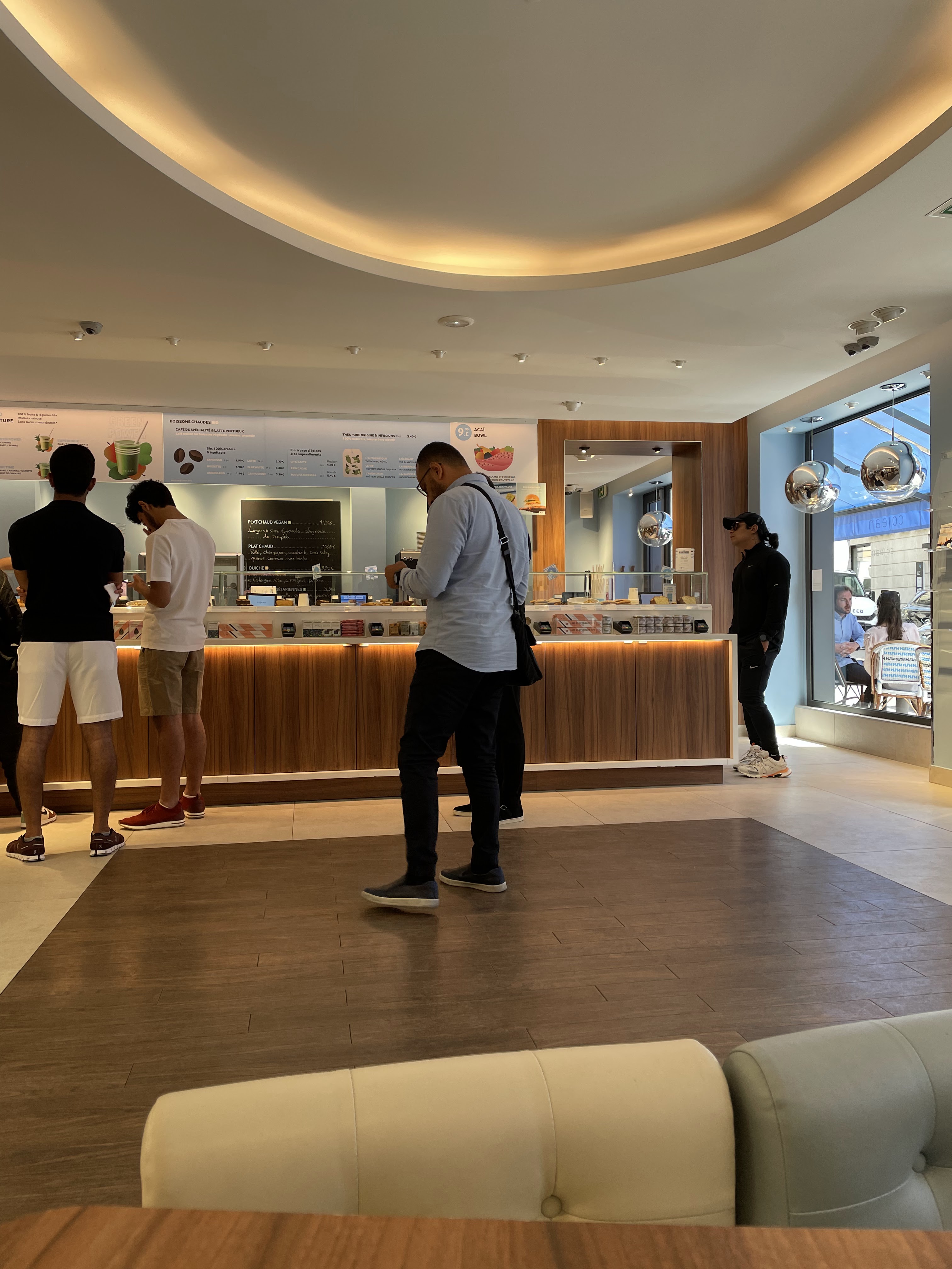 Plus de 15mn pour avoir mon latte…froid. Service lent même en dehors des heures de rush.