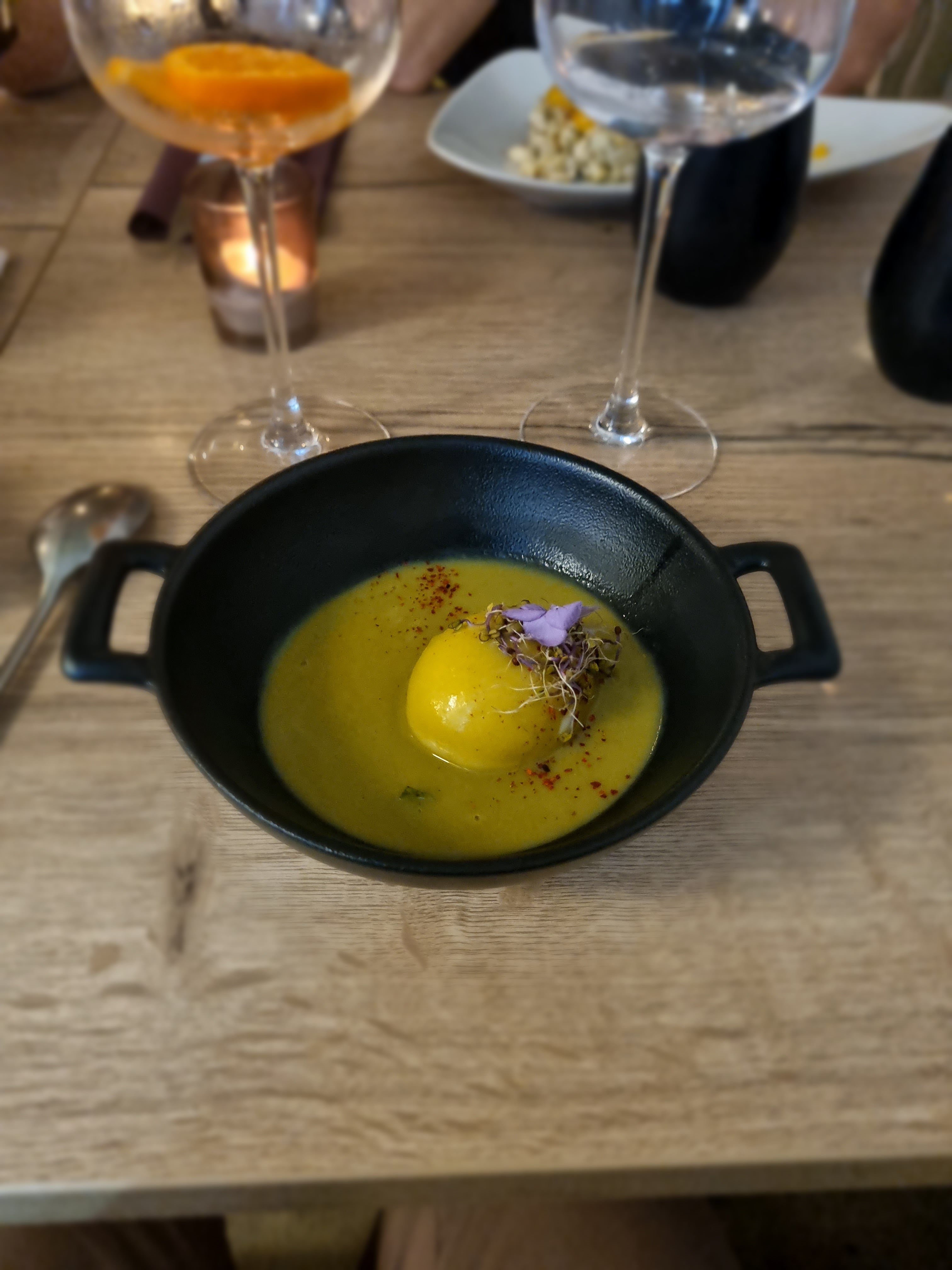 Pas mal mais un peu déçue par rapport aux avis qui me mettaient l eau à la bouche. Déco sympa Service sympa mais un chouia trop car un peu surfait (pas suffisamment de chaleur) Lotte trop cuite pour ma part (un peu elastique), girolles et gnochis excellents.es (plat de mon conjoint). Original cependant, c est clair