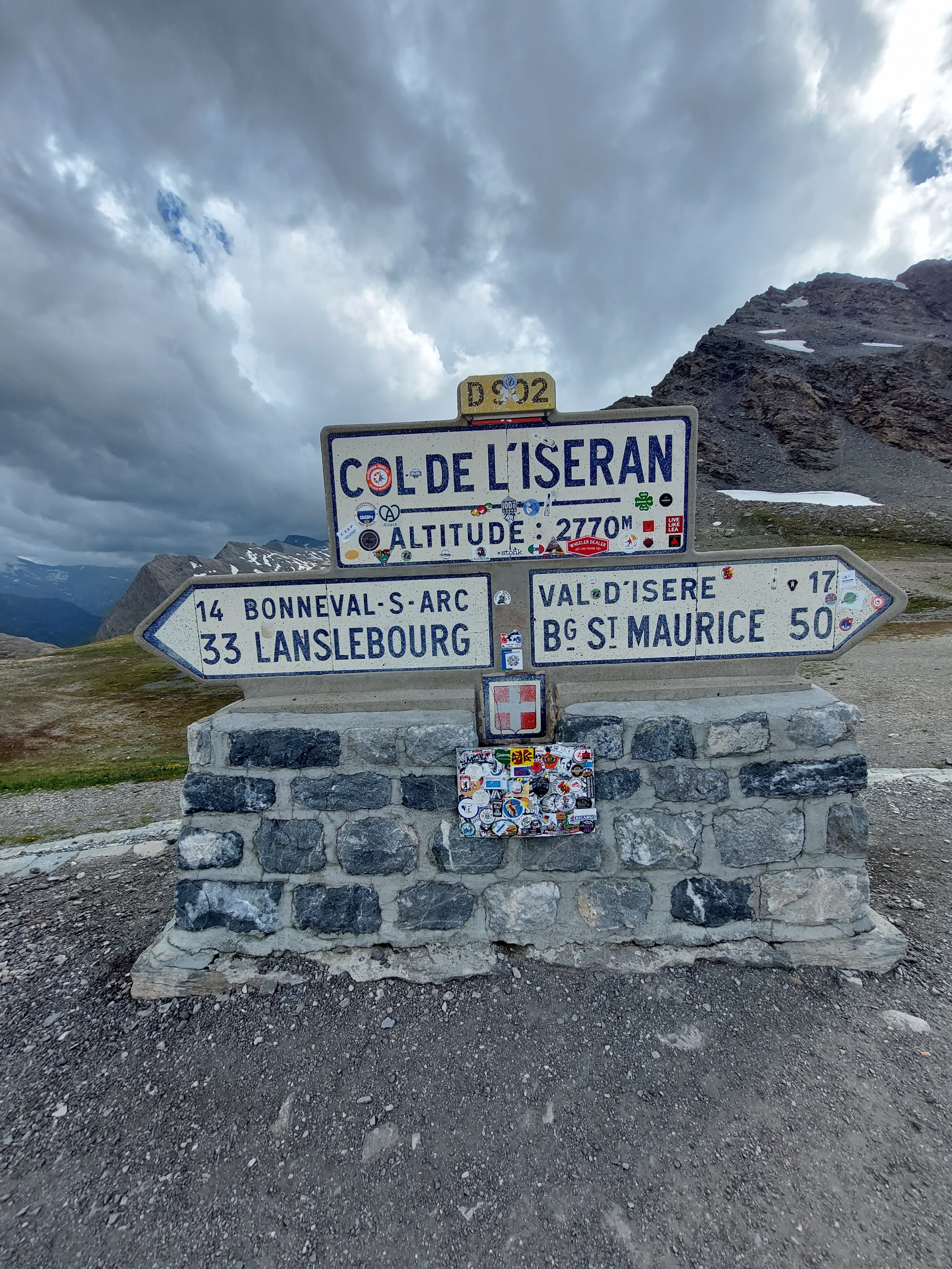 L'un des meilleurs de tous les cols. Le Col de l'Iseran est le col routier le plus haut accessible en transport public dans toutes les Alpes. À une altitude de 2770 m d'altitude. il était assez facile de ressentir un air frais et agréable après une chaleur de 30 degrés, soit 2 000 mètres en dessous. Croyez-moi, nous ne voulions pas avancer, c'était tellement sympa.