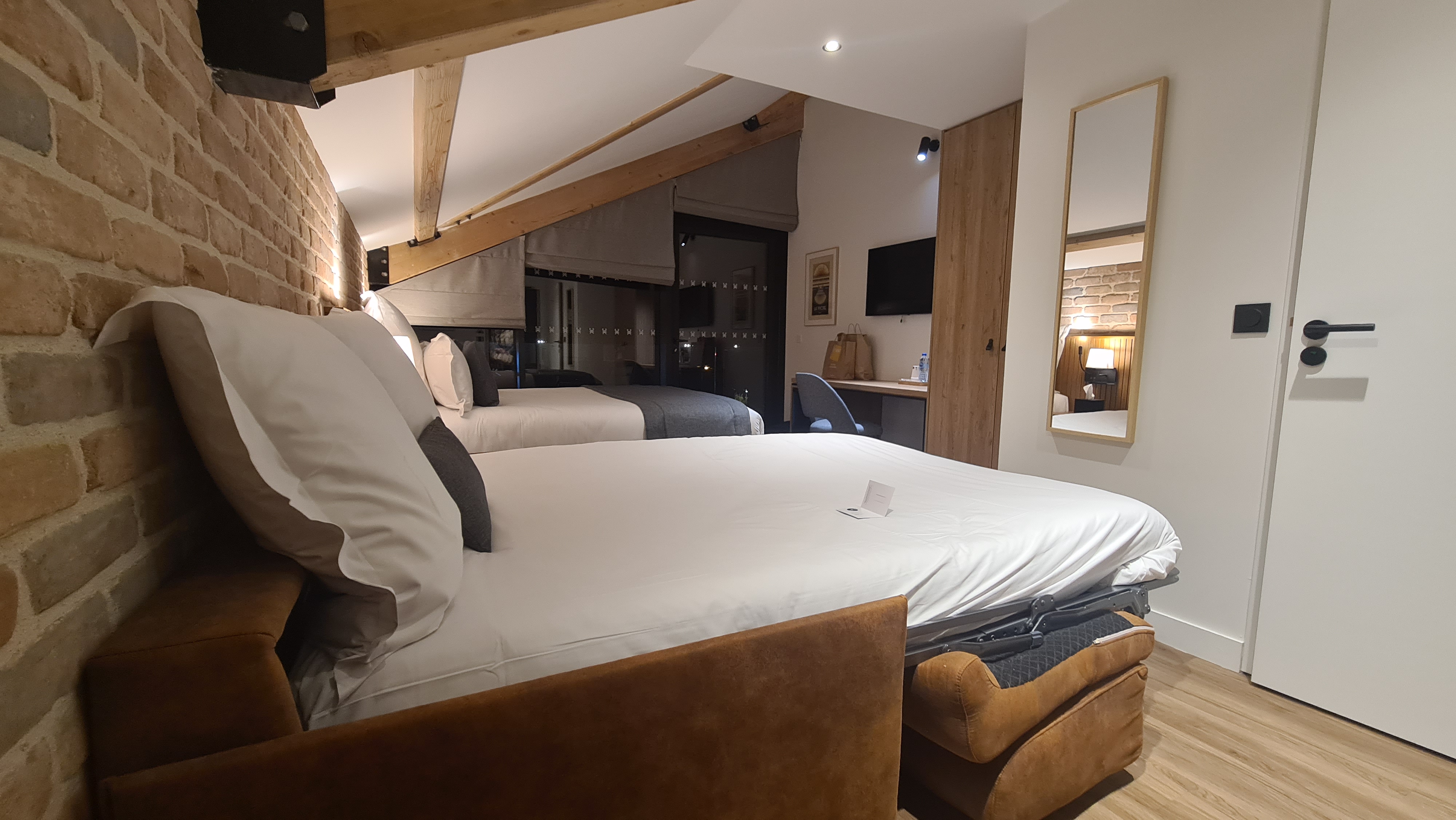 Nous avons séjourné en couple ce week-end. C'est un très bon établissement dans son ensemble. Les chambres doubles sont superbes et spacieuses avec des petits + : - Terrasse muni de chaises et d'une petite table - De l'espace pour ranger - Un mini frigo dans la chambre Salles de bain topissime et toilette séparé. Propreté irréprochable. Isolation thermique et phonique mitigé. Pour le côté thermique, le chauffage permet de contrecarrer cela, en revanche, il n'y a pas grand chose à faire pour le bruit. Le petit déjeuner aurait pu être merveilleux, les produits sont de qualités. Hélas bien que nous sommes arrivés aux alentours de 9h15, il n'y avait rapidement plus rien, ce fut très vite un carnage. Nous avons pu petit dejeuner correctement malgré tout mais nous aurions aimé goûter certaines choses qui étaient rapidement épuisés (viennoiseries, lard fumé, fromages, jambon cru etc..). Cette situation semblait pour le coup assez exceptionnelle mais reste dommageable. Bravo tout de même à la personne en charge du petit déjeuner qui à fait son maximum malgré cette situation devenant désespérée après 9h30 10h. L'accueil est absolument parfait. L'établissement dispose d'un parking extérieur gratuit et d'un espace partagé superbe avec billard, jeux de société, jeux d'arcades, canapé etc. Vraiment génial (la possibilité d'avoir thé ou café serait parfait 😉) Très bon rapport qualité prix donc dans l'ensemble, lieu tout à fait recommandable. Des petites choses à améliorer certe mais loin d'être irrémédiable et l'envie de bien faire est la et je suis convaincu que cela sera corrigé rapidement.