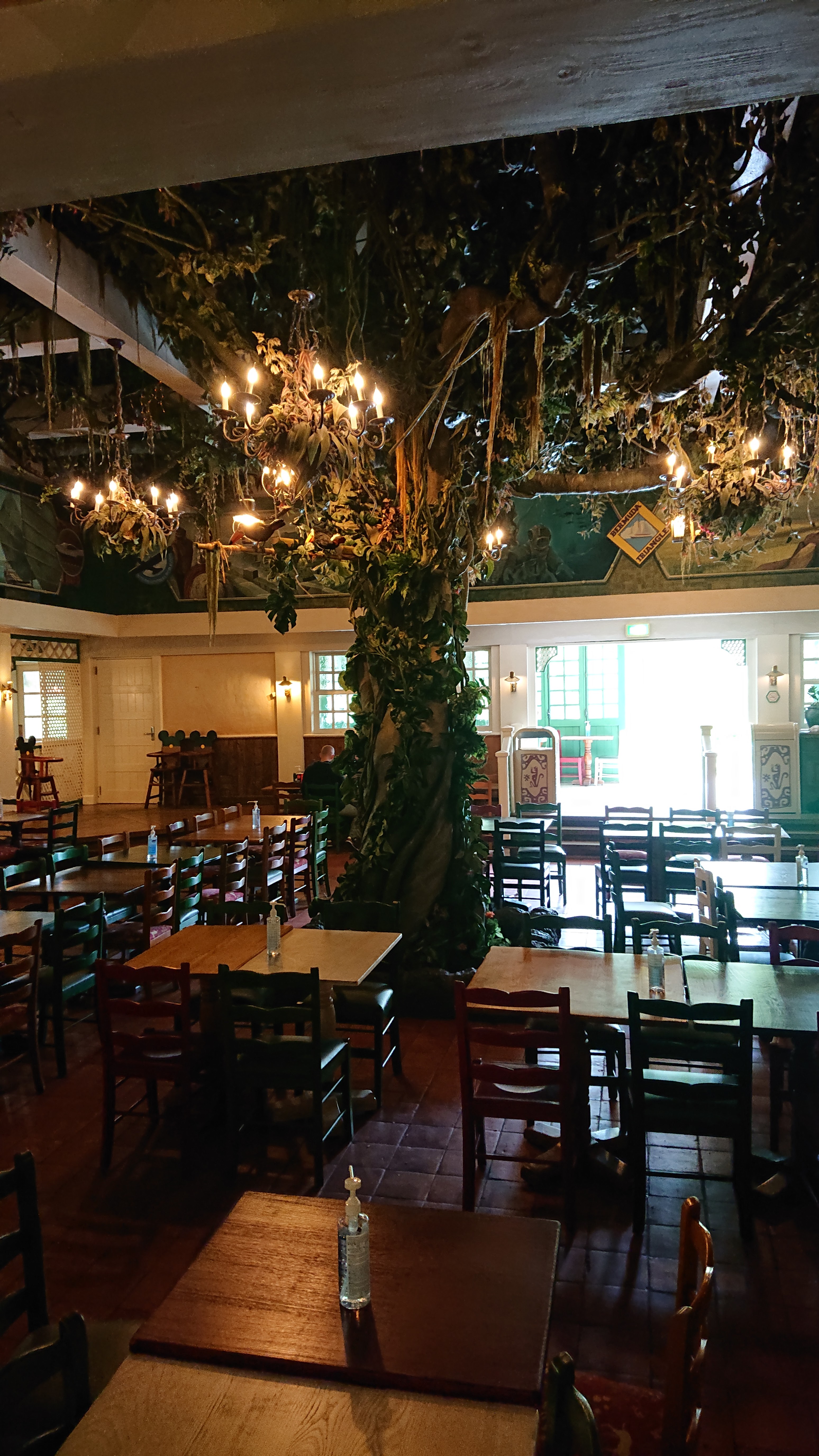 Quasiment la même carte qu'au Bella Note (j'y reviendrai plus bas), mais dans un décor du livre de la jungle. L'ambiance est vraiment chouette, la salle intérieure sur le thème colonial est très dépaysante. Il y a aussi des petites vérandas, une belle terrasse couverte sur pilotis et une terrasse non couverte à l'avant du restaurant ouverte aux beaux jours uniquement. Peu d'attente en période normale, et beaucoup de places assises, nous n'avons jamais eu de problème à trouver une table. De nombreux cast members sont là pour nettoyer les tables entre chaque groupe de guests. Côté nourriture, les menus 1 et 2 sont les mêmes qu'au Bella Note; pâtes, lasagnes, baguette à l'ail... Il y aussi des pizzas, la pizza reine a été remplacée récemment par une pizza pepperonis. Le rapport qualité prix reste très correct. Très bonne option pour changer des fast food classiques (comme le café Hyperion).