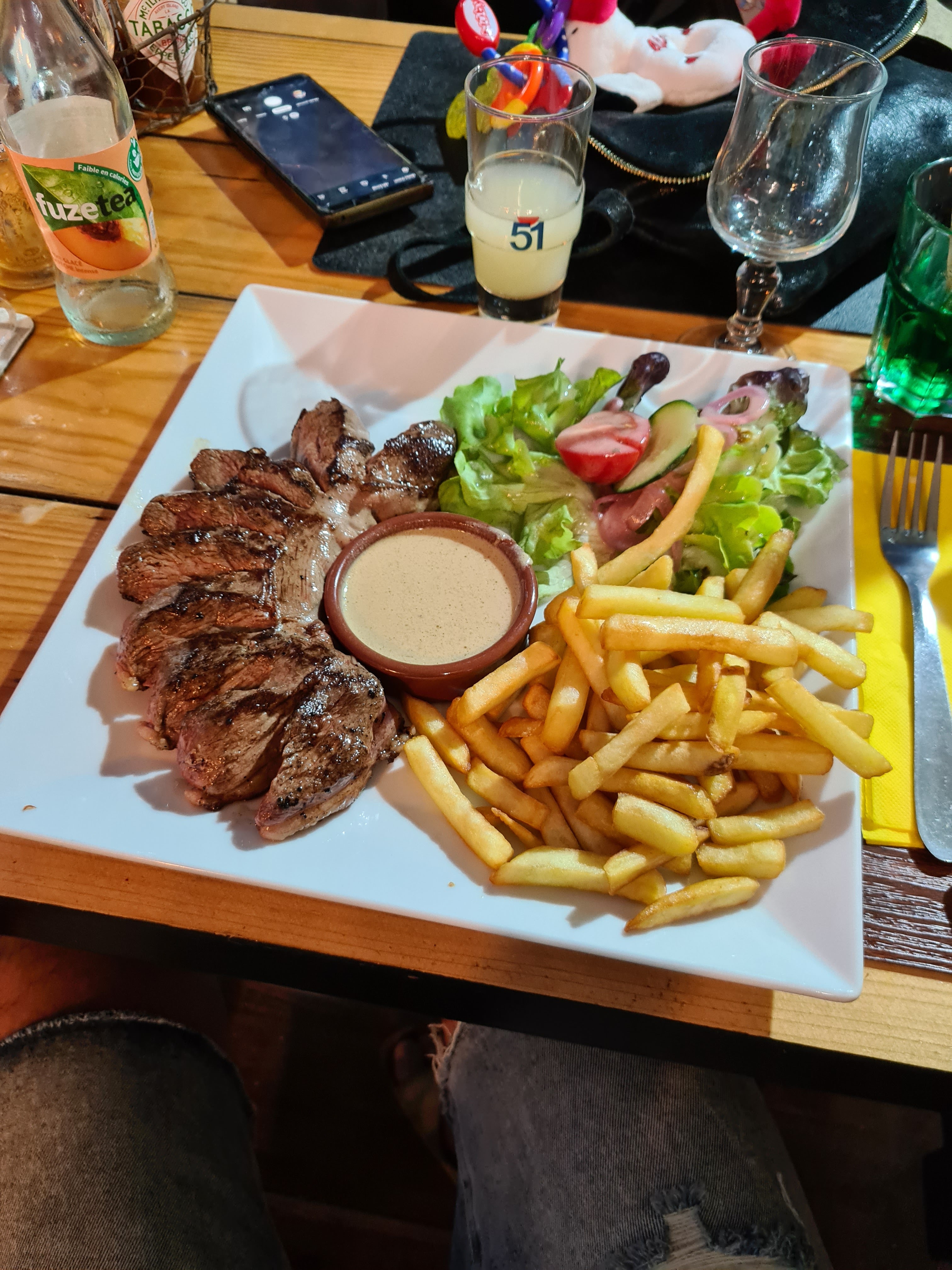 steak haché avec un œuf dessus et des frites c’était très bon mais sympa bon accueil pour des vacances c’est top