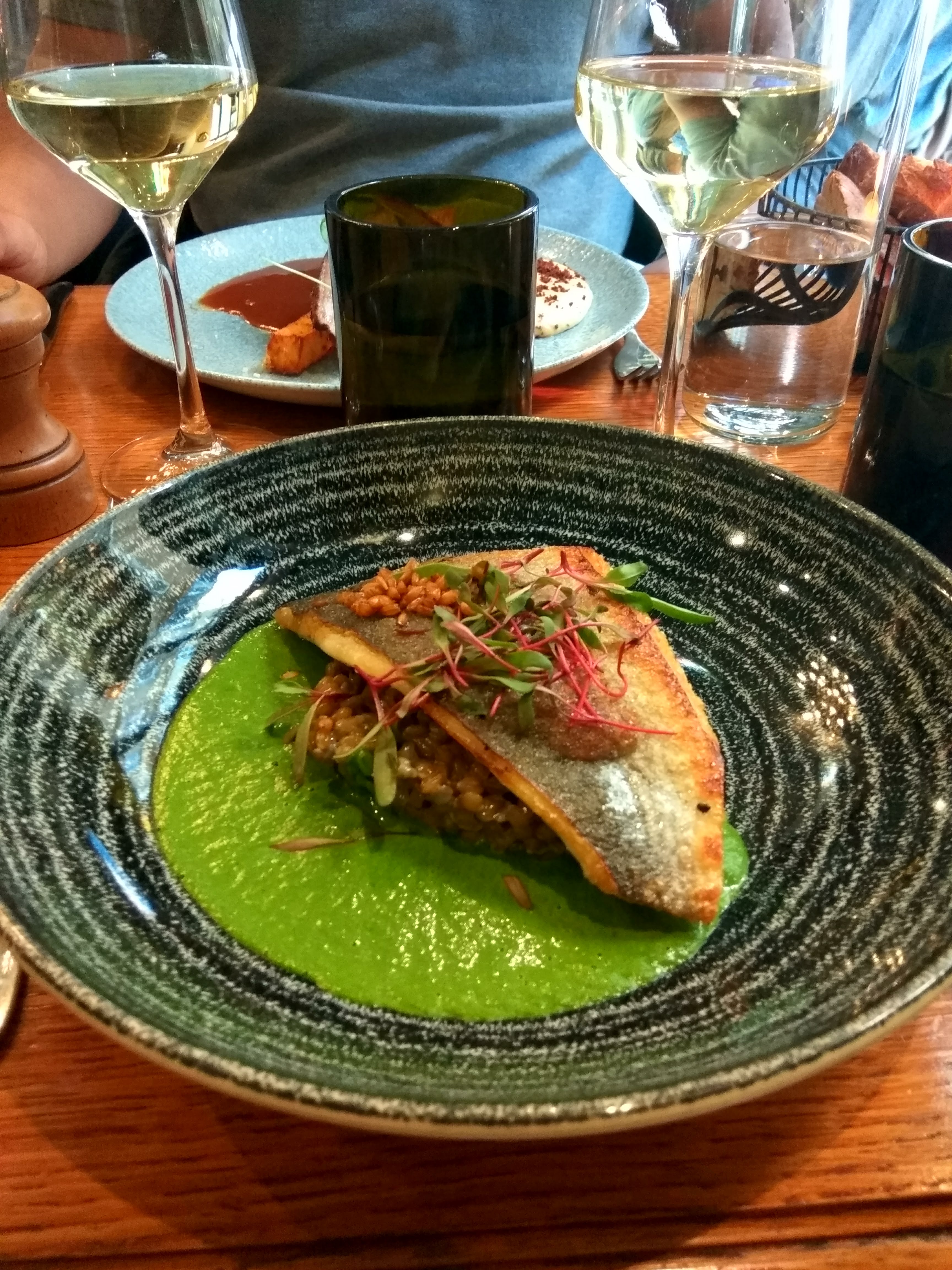 Cuisine intéressante et délicieuse. Nous avons eu quelques difficultés à trouver le vin qui nous plaisait. Dans l’ensemble, bonne nourriture et bel endroit.