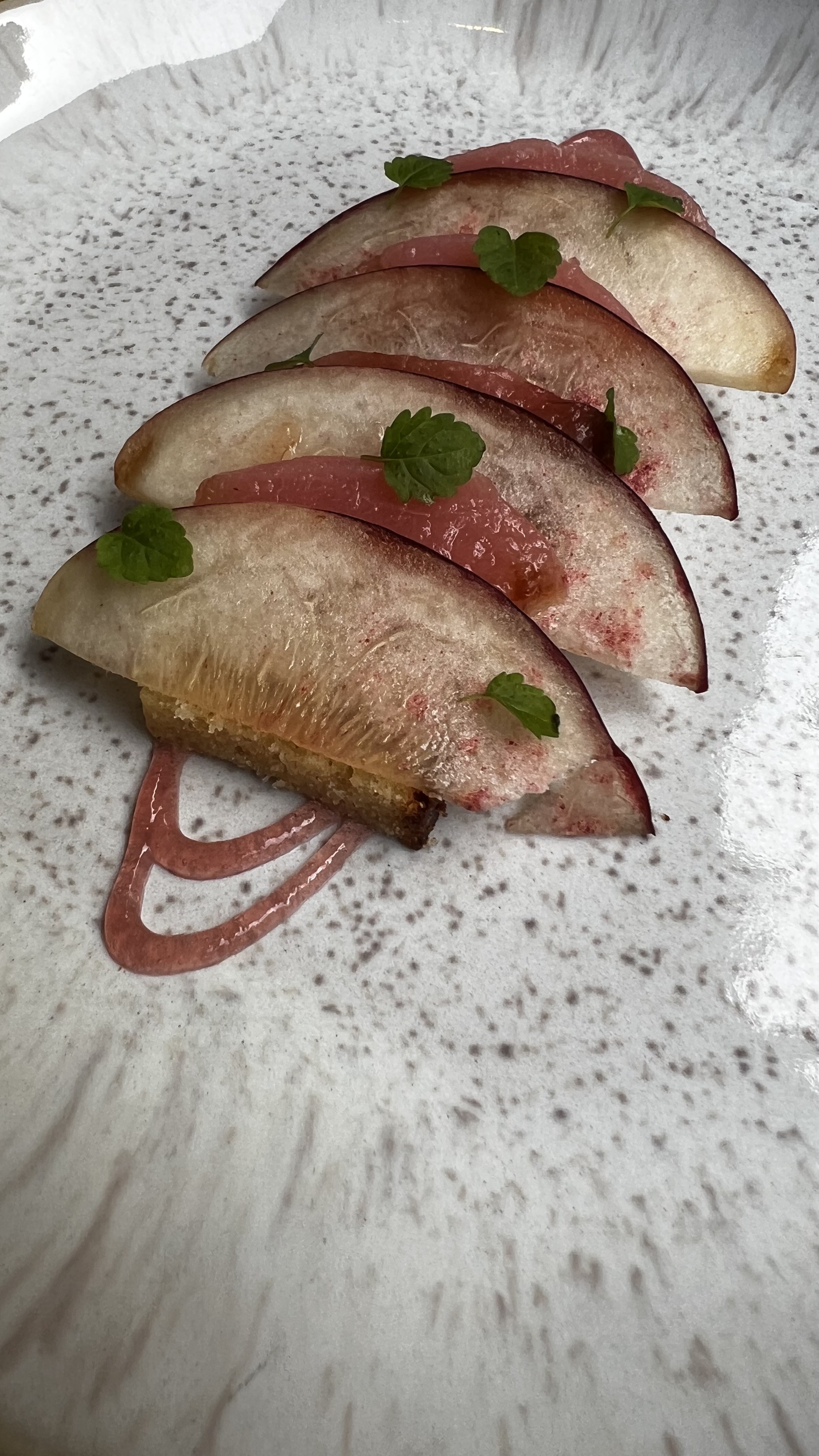 Un cadre magnifique avec des serveuses très agréables et professionnelles (conseils avisés pour le vin, le choix des plats). Première impression: on se sent parfaitement bien dans ce lieu. Puis une entrée (pêche du jour), un plat (agneau) et un dessert (à la pêche). La cuisine est succulente, originale, recherchée au niveau des saveurs dont les mariages sont incroyablement réussis. Merci pour tout, ce fut une soirée et un dîner mémorables.