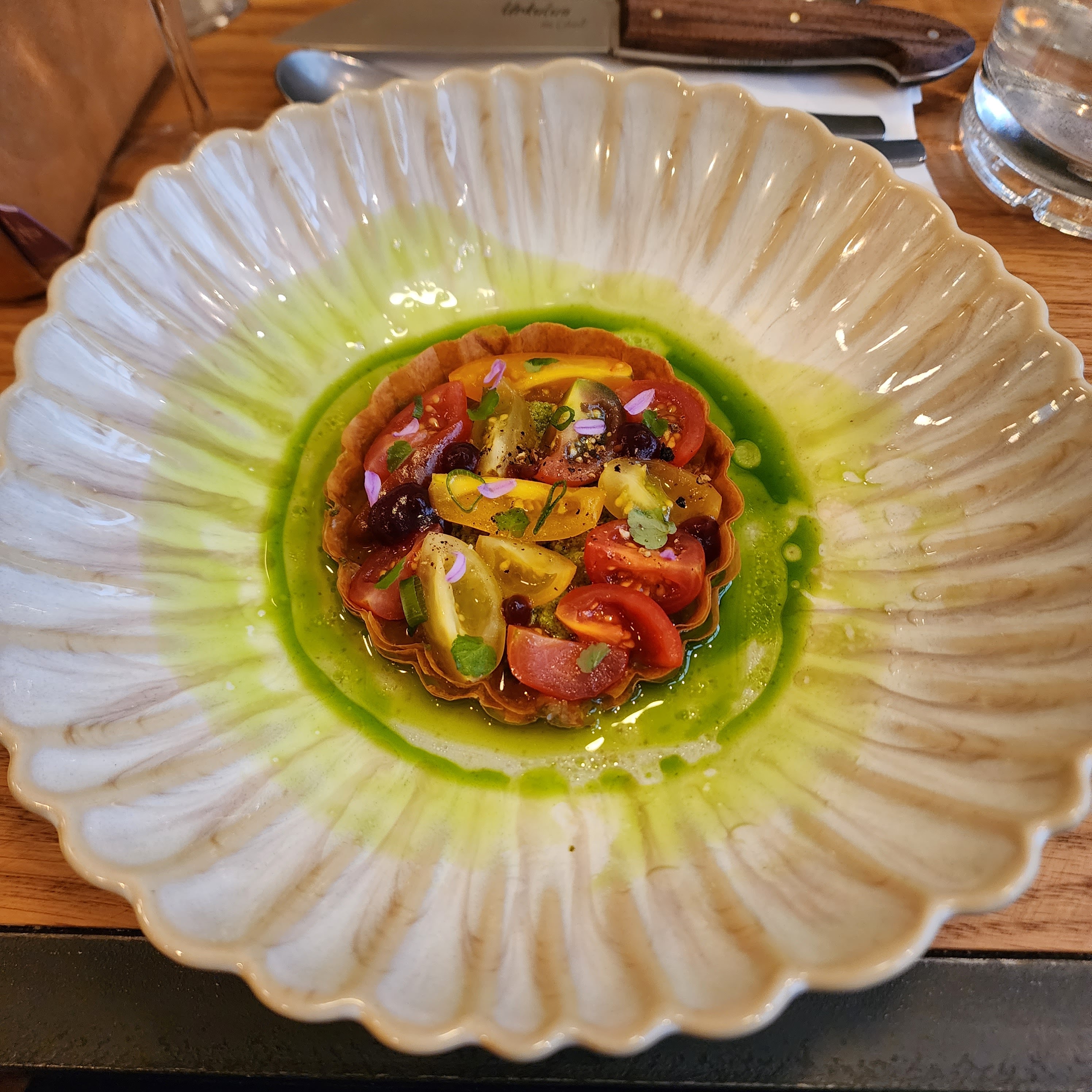 Une très belle adresse! Un service soigné, une cuisine de qualité accompagnée d’une solide carte des vins avec les conseils avisés d’un sommelier passionné. Mention spéciale aux tomates ainsi qu’à l’agneau qui sont deux superbes réalisations. Un joli moment passé dans ce restaurant qu’on recommande sans aucune hésitation !