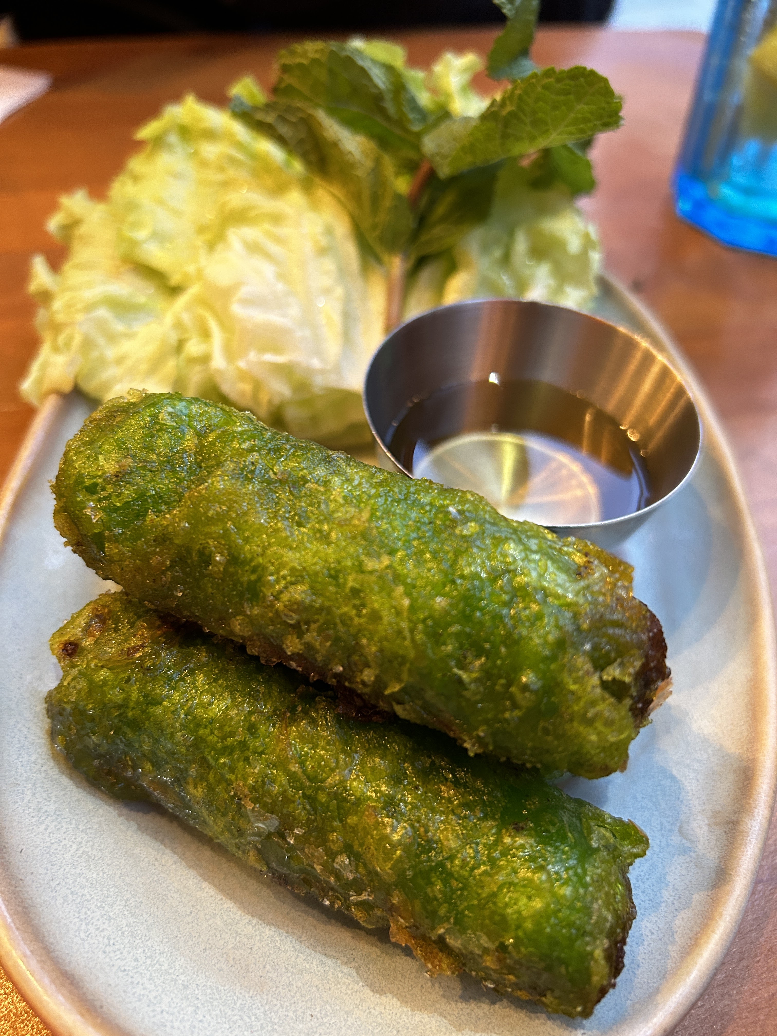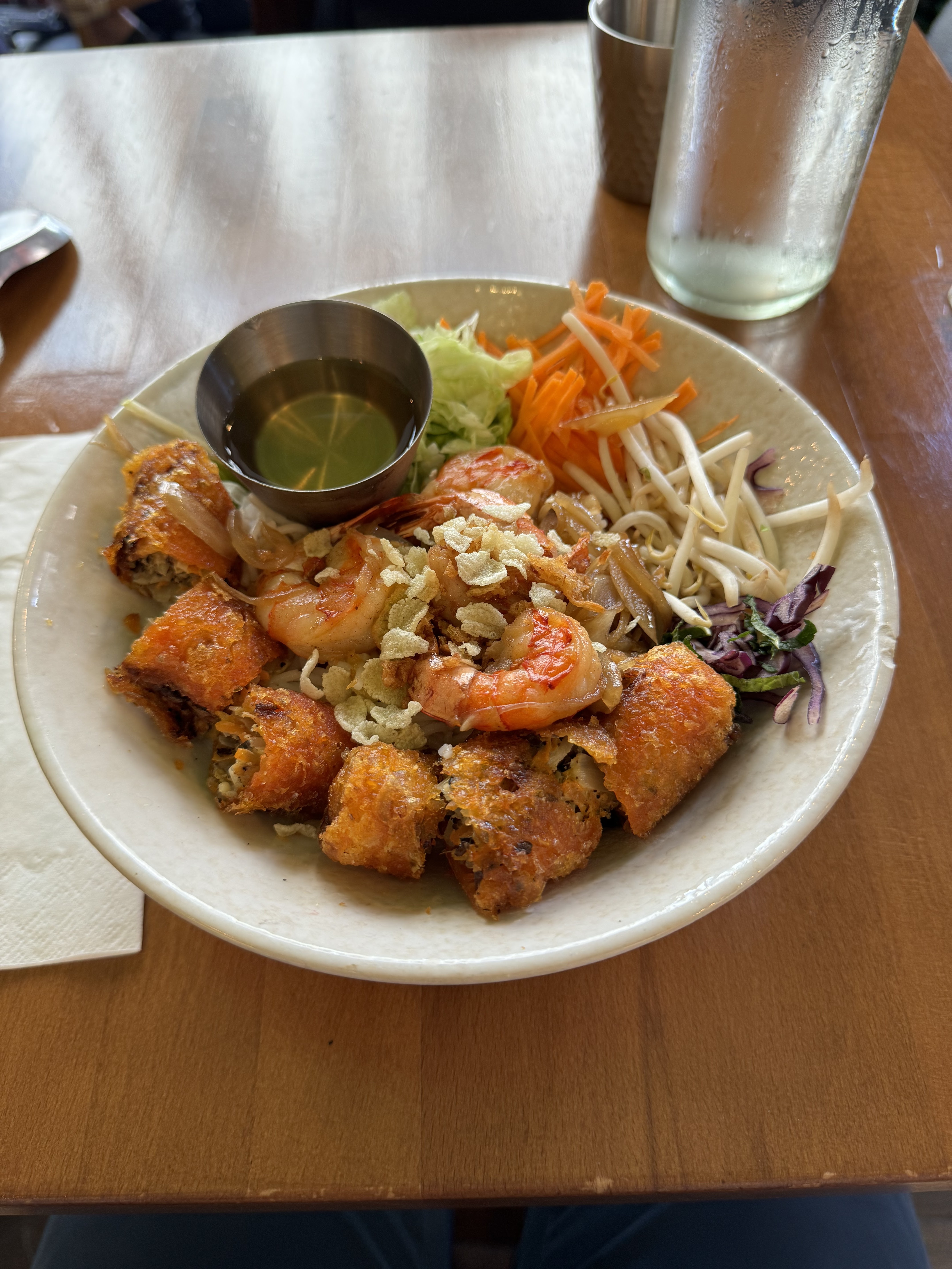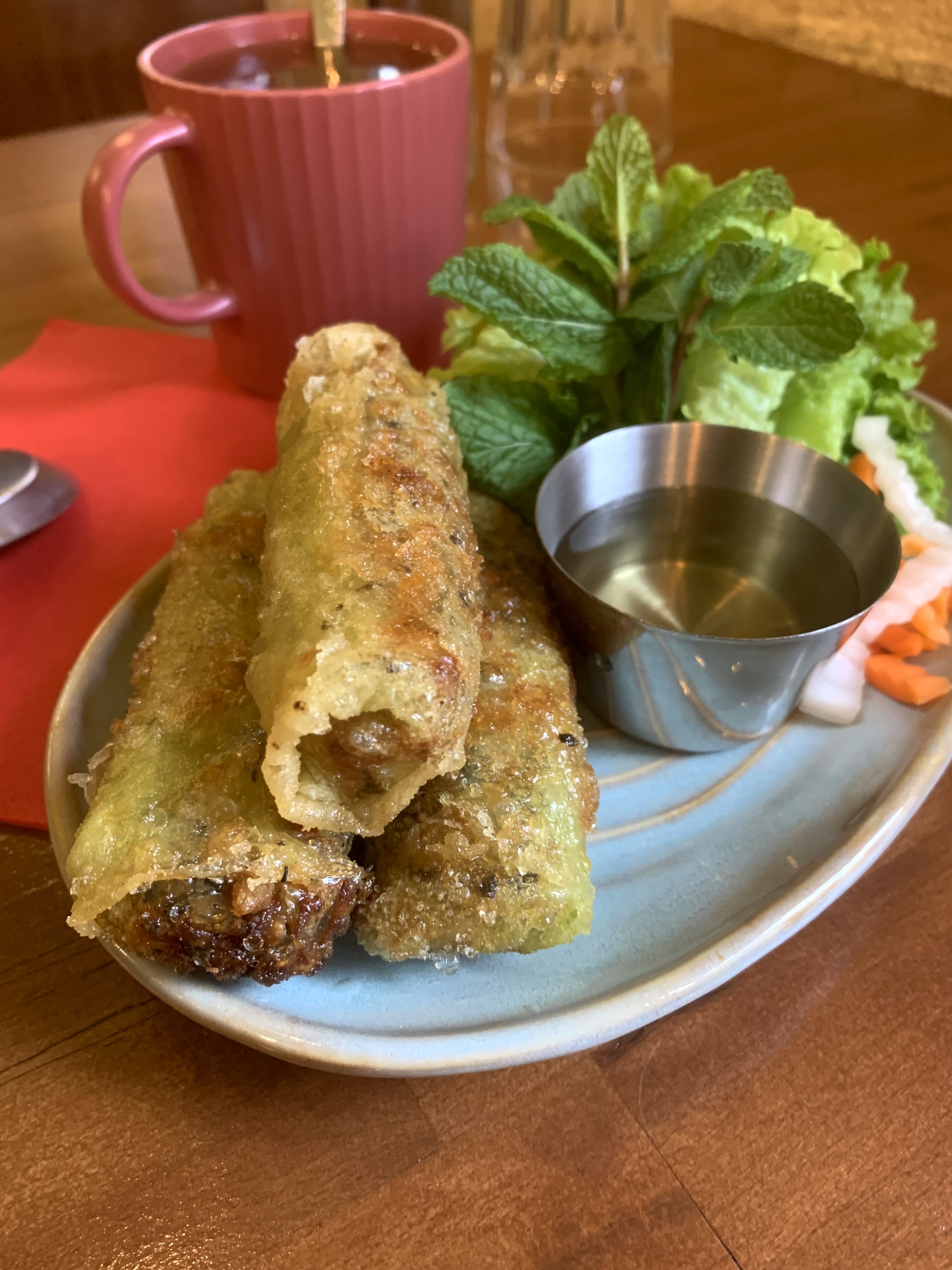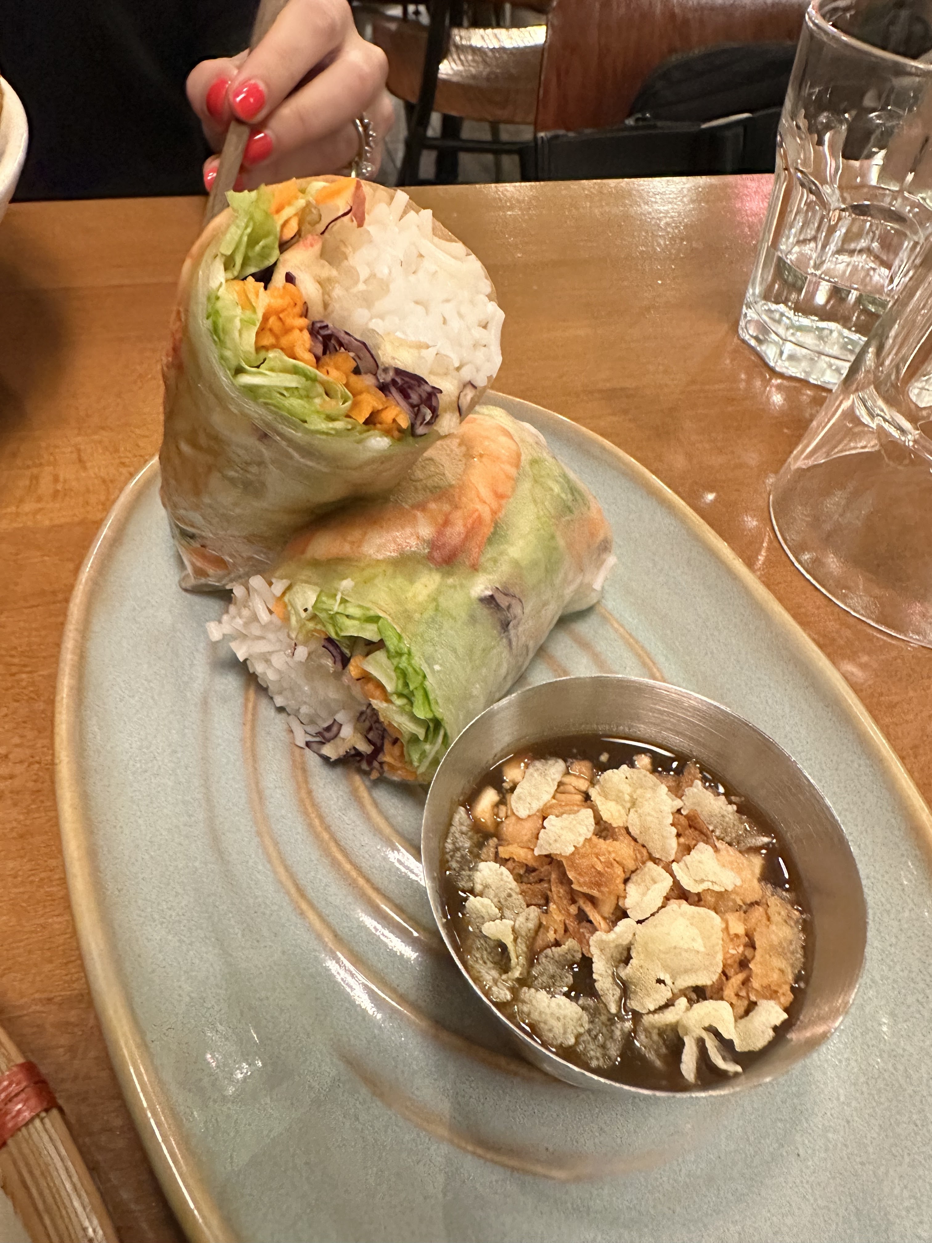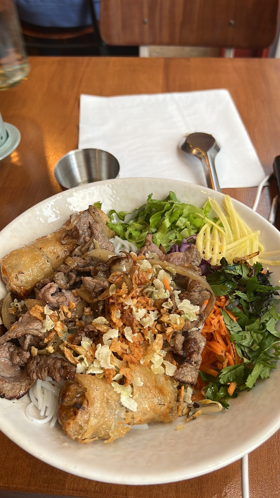 Cuisine ok mais sans grand relief. Des originalités sur les recettes (poivrons rouge dans la salade de mangue par ex). Service pas super efficace et des portions vraiment petites vs prix pratiqués. Plus gênant, le manque d’herbes aromatiques notamment dans les rouleaux de printemps (essentiellement des nouilles). Bref pas dingue.
