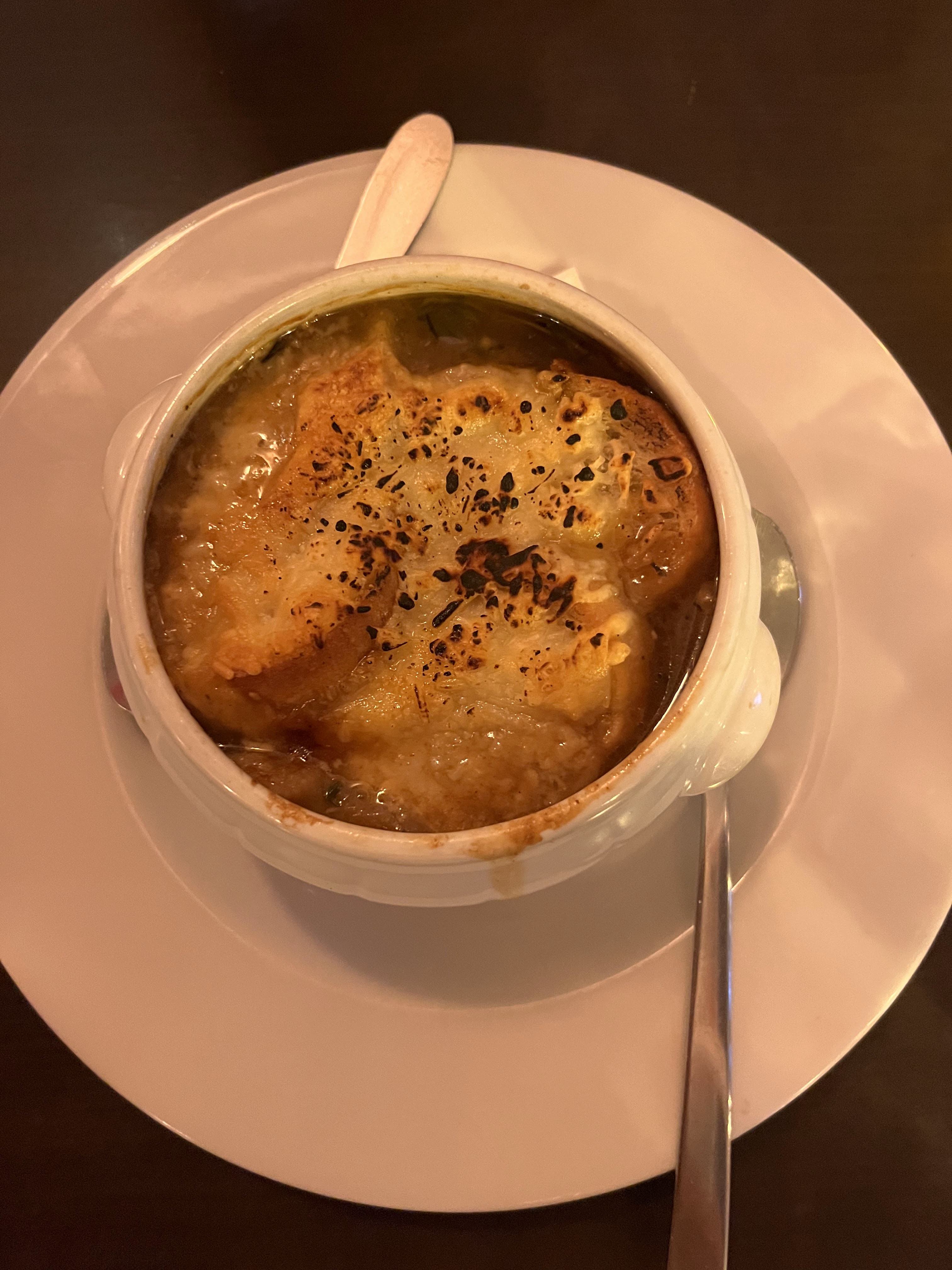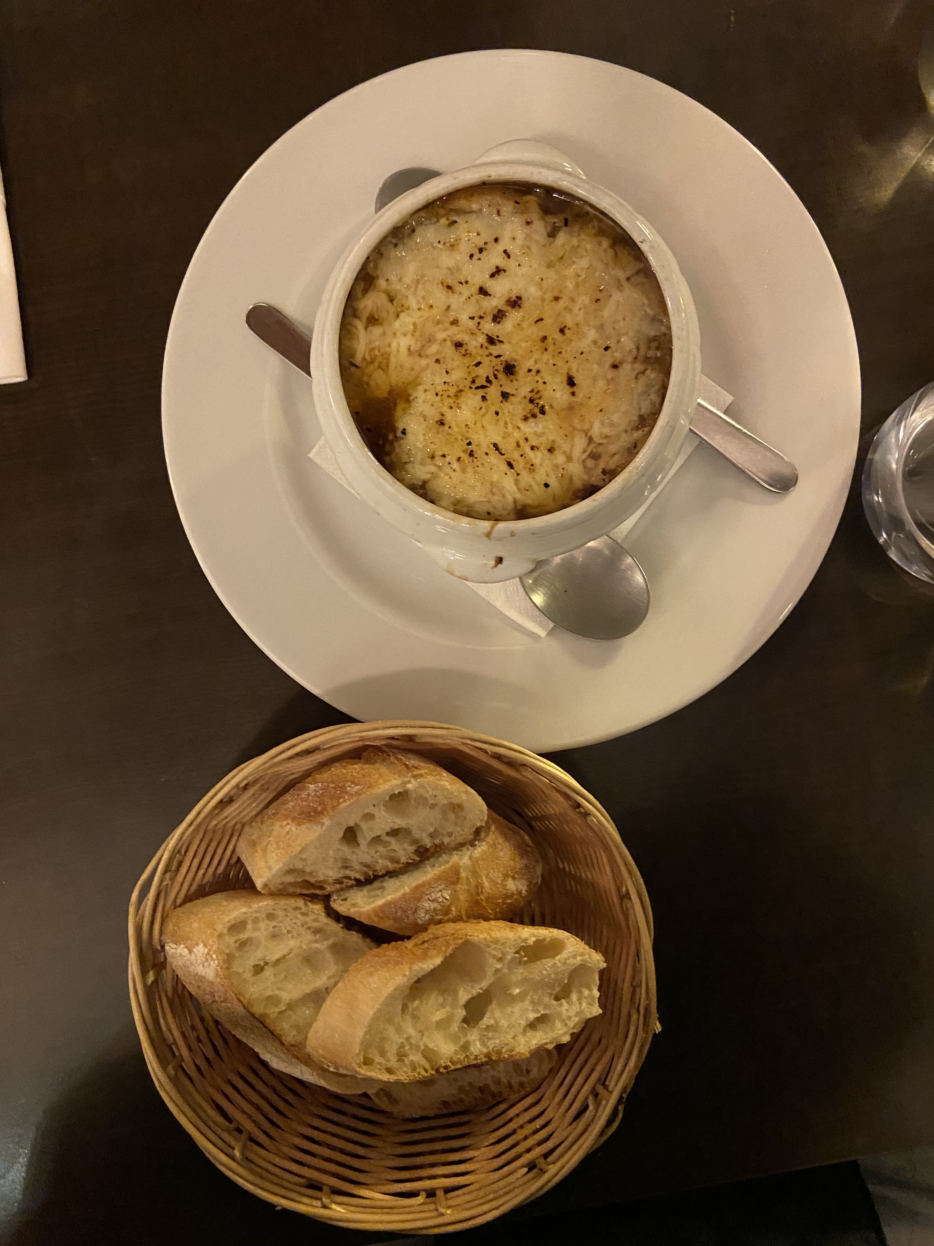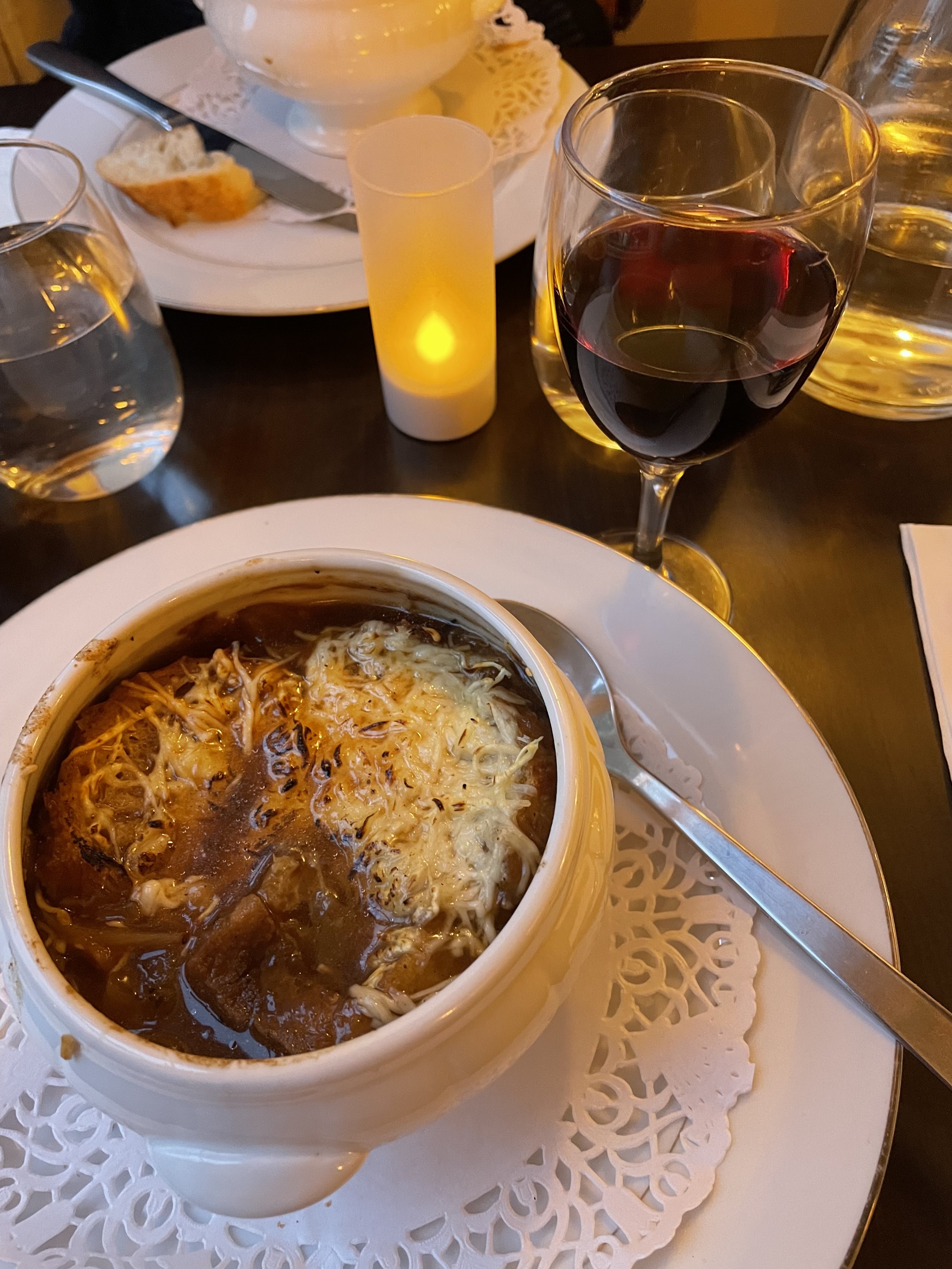 Tout était délicieux, j'ai particulièrement aimé la soupe à l'oignon et le canard confit.