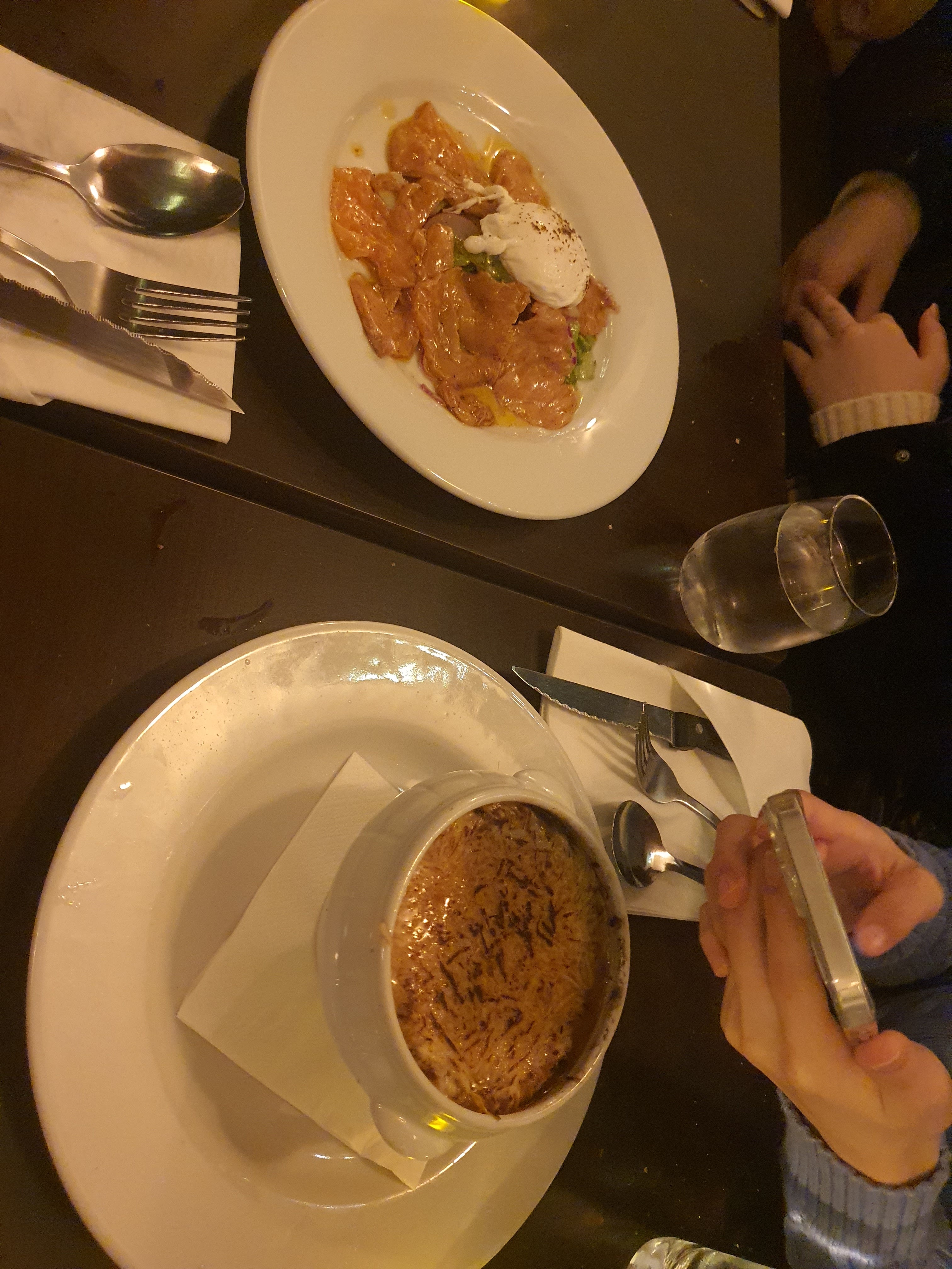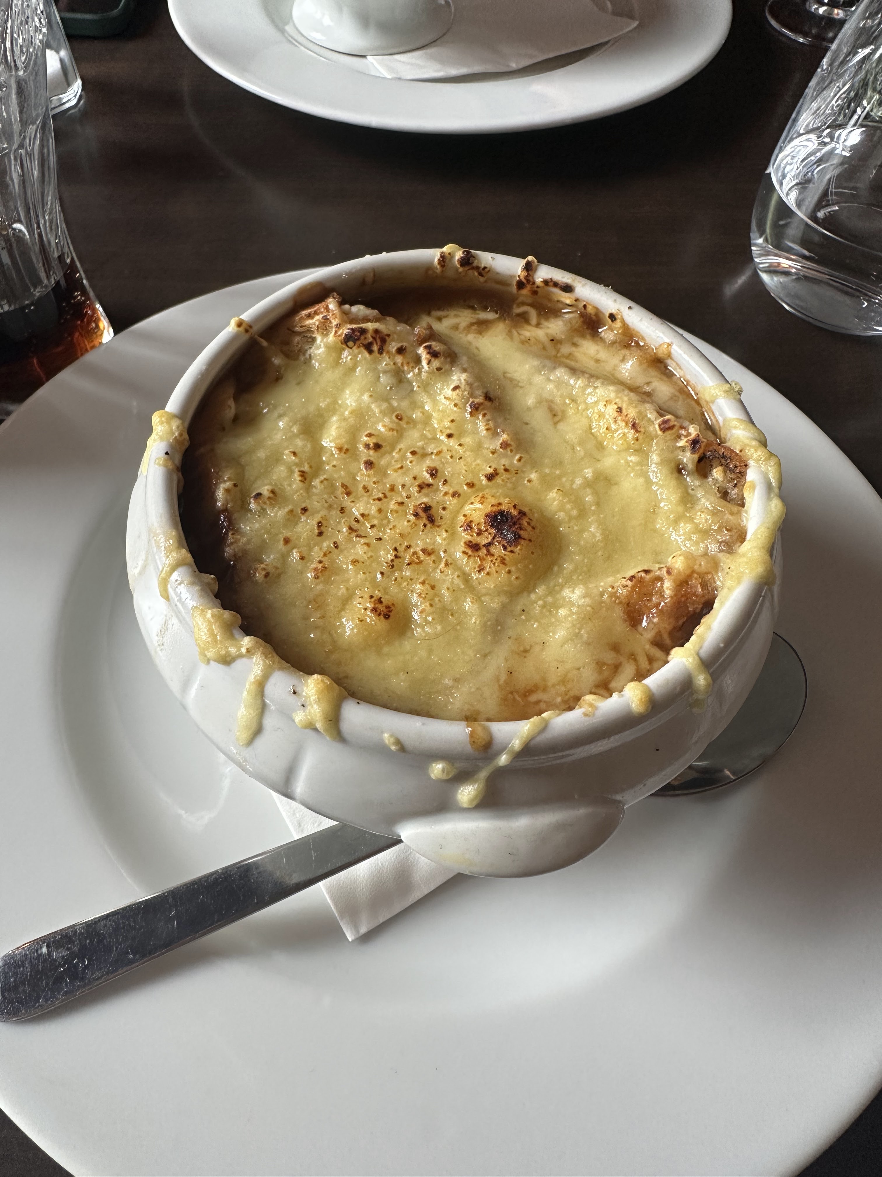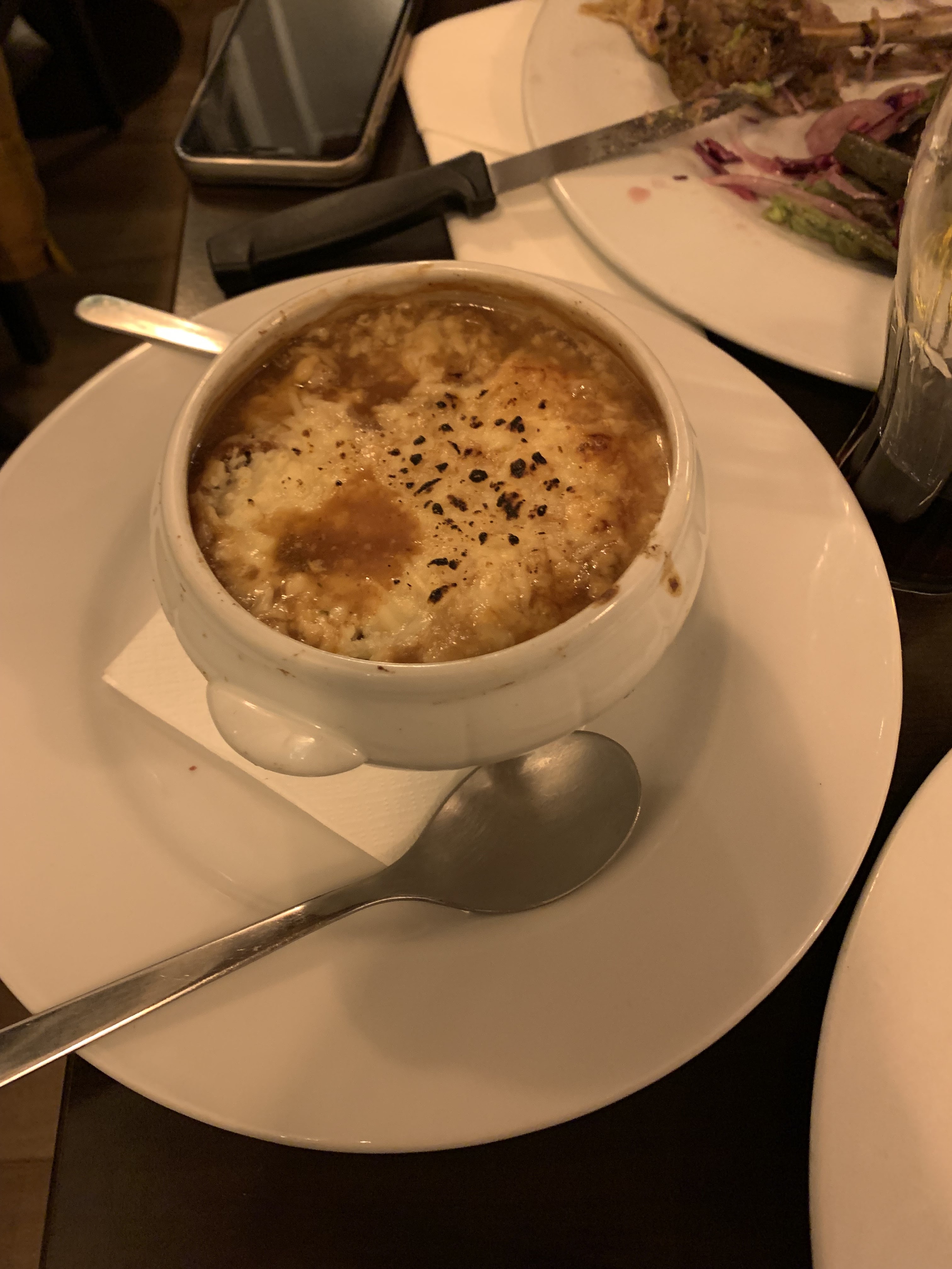 Tout était délicieux, j'ai particulièrement aimé la soupe à l'oignon et le canard confit.