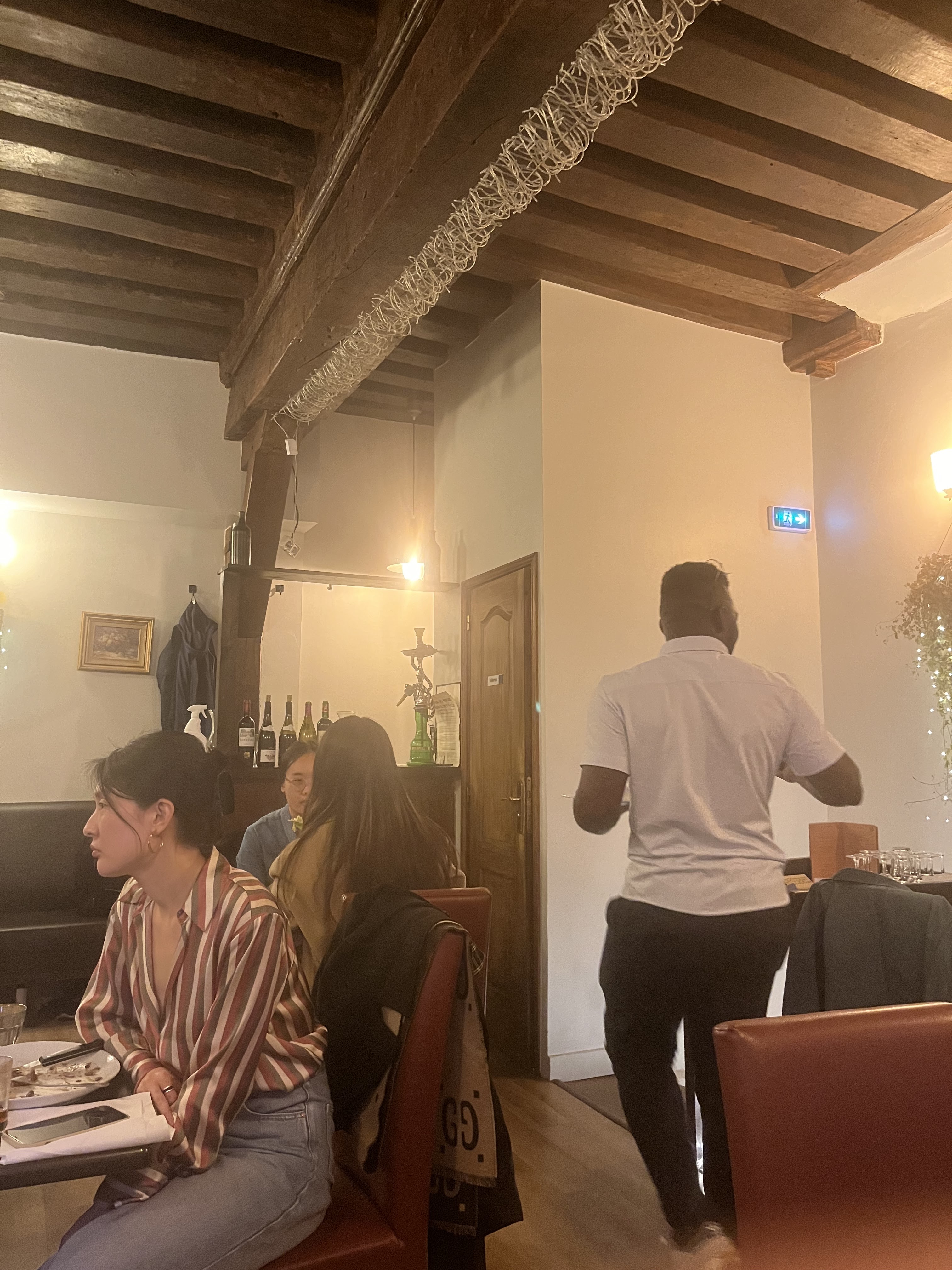 Ne vous méprenez pas, la nourriture était excellente, très savoureuse et bonne. MAIS, le service était médiocre, lent et nous avons dû garder nos couverts après avoir mangé le premier plat… quoi ? :)) et le pire c'était la chaleur, c'était une soirée très chaude à Paris, pas de vent, juste chaud, et ils n'ont pas de clim. Nous voulions manger à l’étage à côté de la fenêtre ouverte, cela n’a pas aidé. Veuillez installer une forme de refroidissement par air !