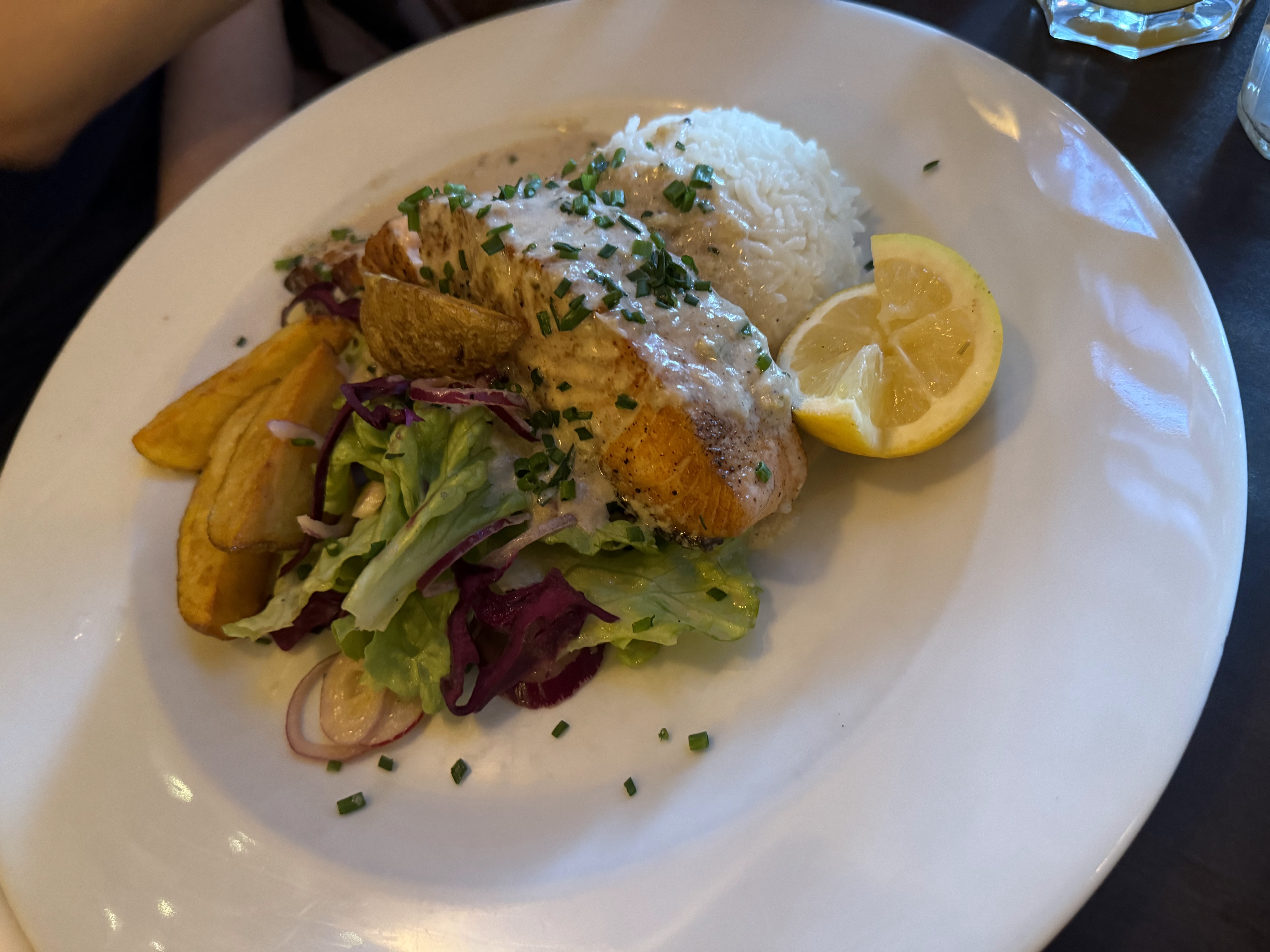 Le fish and chips et la crème brûlée étaient tous deux parfaitement préparés. Le personnel était serviable et gentil.