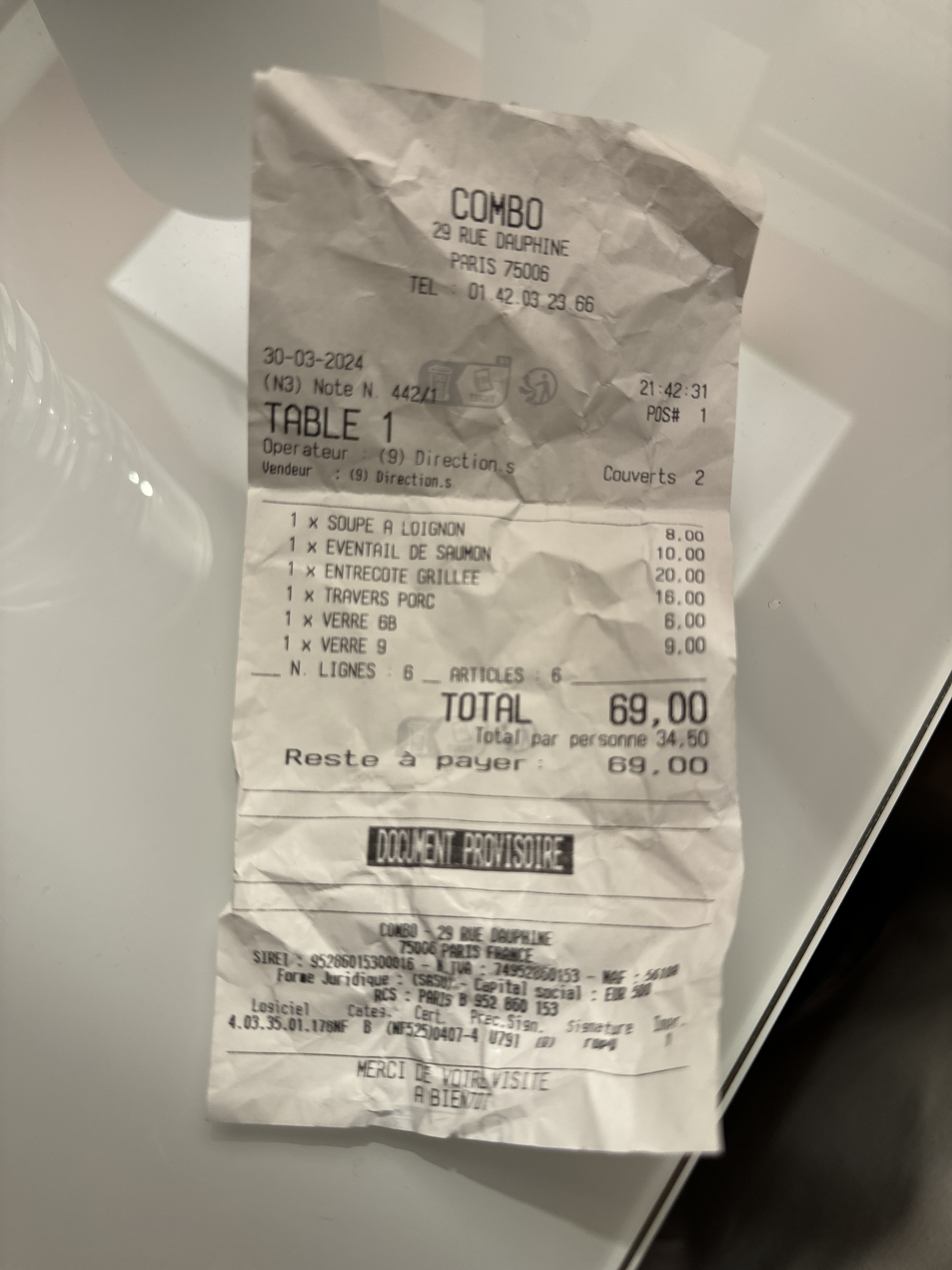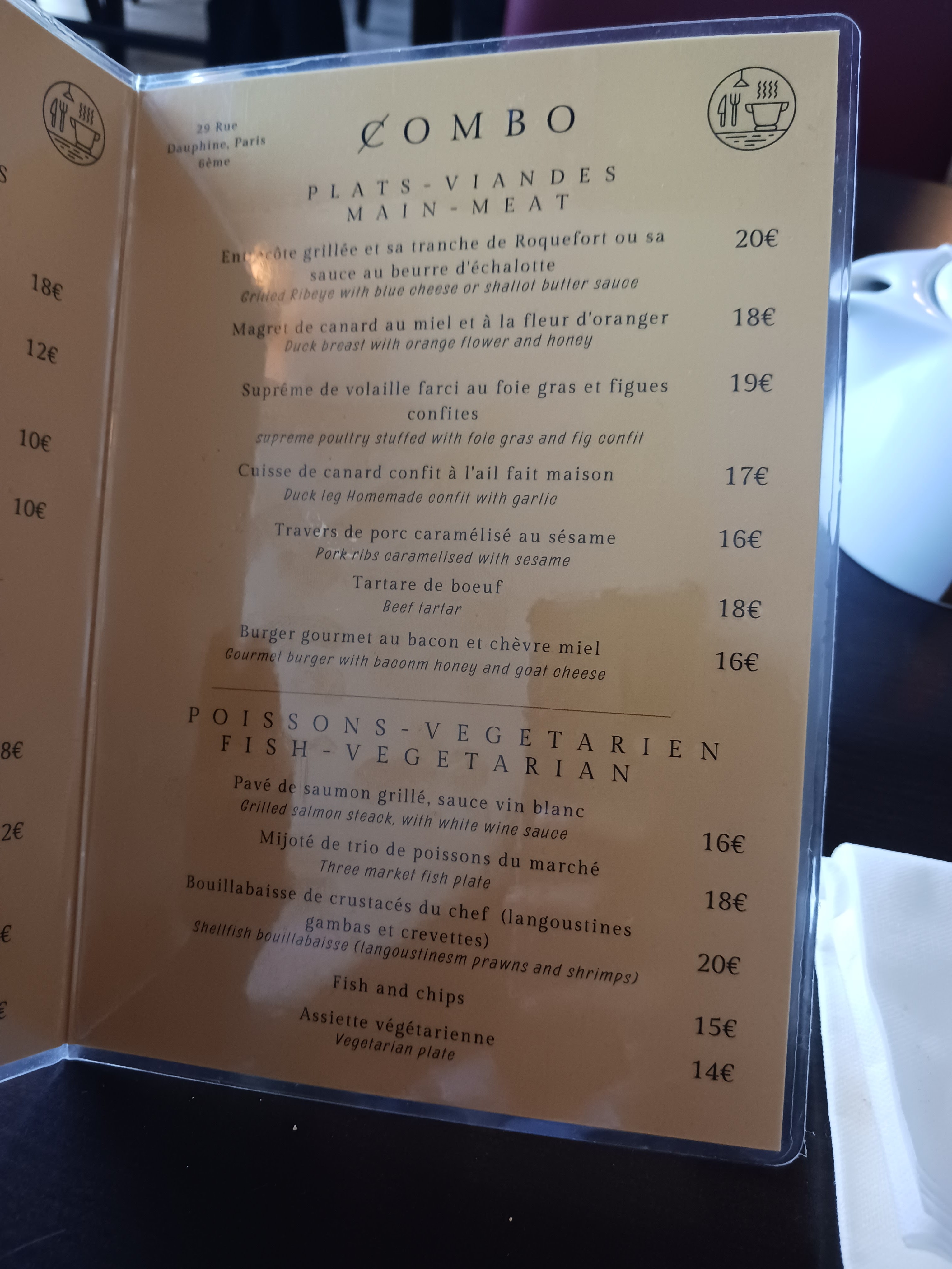 Normalement, je ne laisse pas de commentaires, mais ce restaurant m'a obligé à en écrire un. Le Combo est facilement mon restaurant français préféré à Paris. La nourriture était superbe, le service était excellent, l'ambiance était chaleureuse et les prix étaient extrêmement raisonnables. Des accessoires massifs au personnel pour être attentif, diligent et informatif. Je ne saurais trop recommander ce restaurant. J'espère que ce restaurant recevra l'attention qu'il mérite. P.S. J'ai tellement aimé le magret de canard que j'ai dû en commander une deuxième portion.