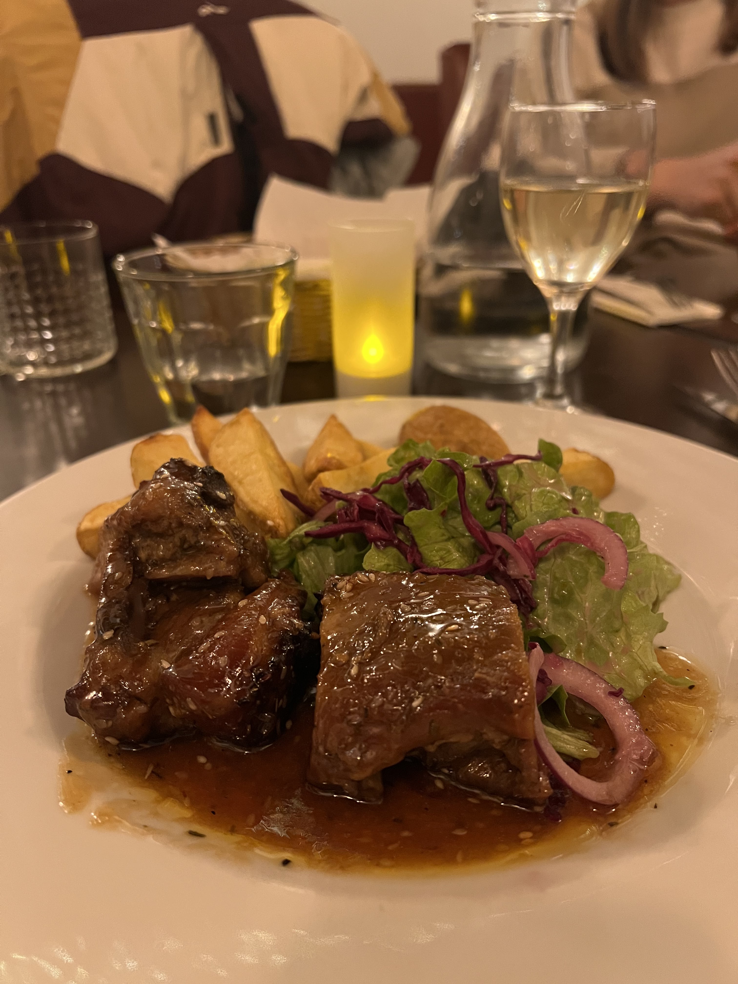 C'est le meilleur rapport qualité/prix. Soupe à l'oignon, salade de saumon Plat de canard, faux-filet. J'ai commandé des côtes de porc. J'ai été très satisfait de la quantité et du goût de tous les plats par rapport au restaurant français que j'ai mangé la veille. Surtout le prix!!!! C'était très raisonnable. Ils nous ont donné de bonnes recommandations de vins et le personnel était sympathique. Je laisse un avis dans l'espoir que vous prospérerez ~^^
