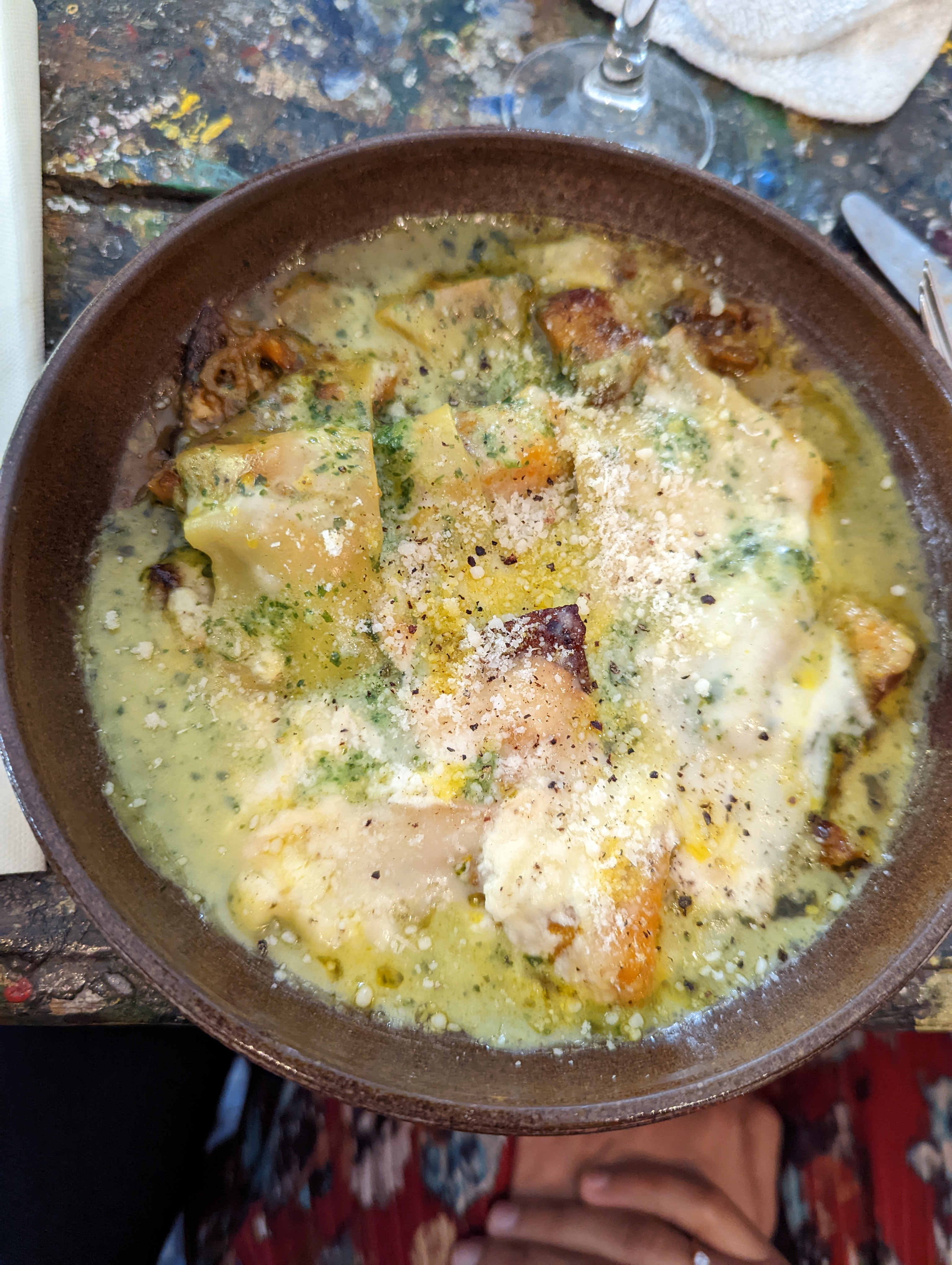 La nourriture était vraiment très savoureuse. Nous avons pris les lasagnes, notamment celle aux truffes, qui est fortement recommandée. J'ai trouvé un peu dommage que le service donne très vite l'impression de devoir repartir après son repas, car par exemple, nous avons reçu l'addition sans rien demander. Cela a fonctionné pour nous ce jour-là, mais c'était un peu trop rapide pour une bonne soirée.