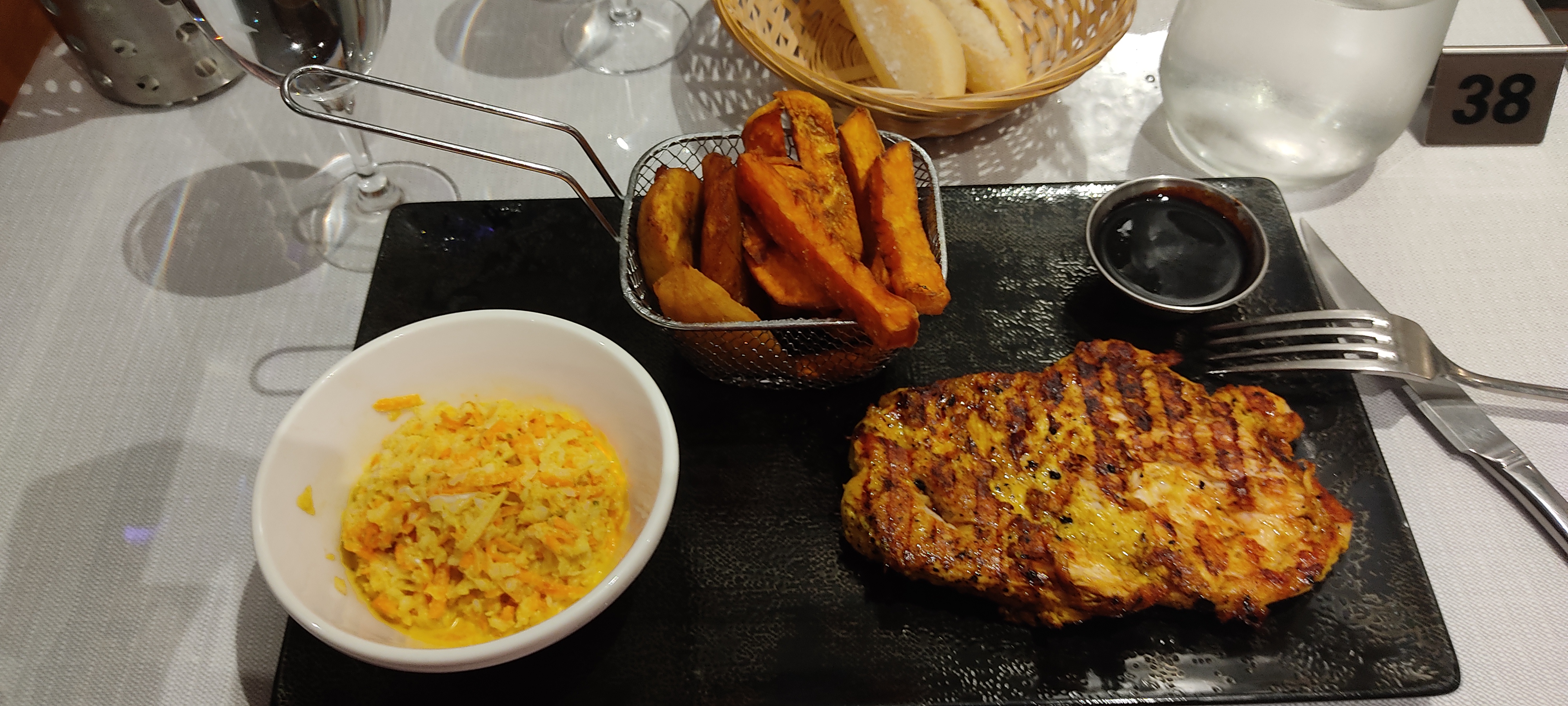 Vraiment excelent, super bonne qualité et le service super sympa, la viande perfect, mix des frittes mmmm et le dessert manioc coco extra bonne. Une andalusse-suisse vous remercie.
