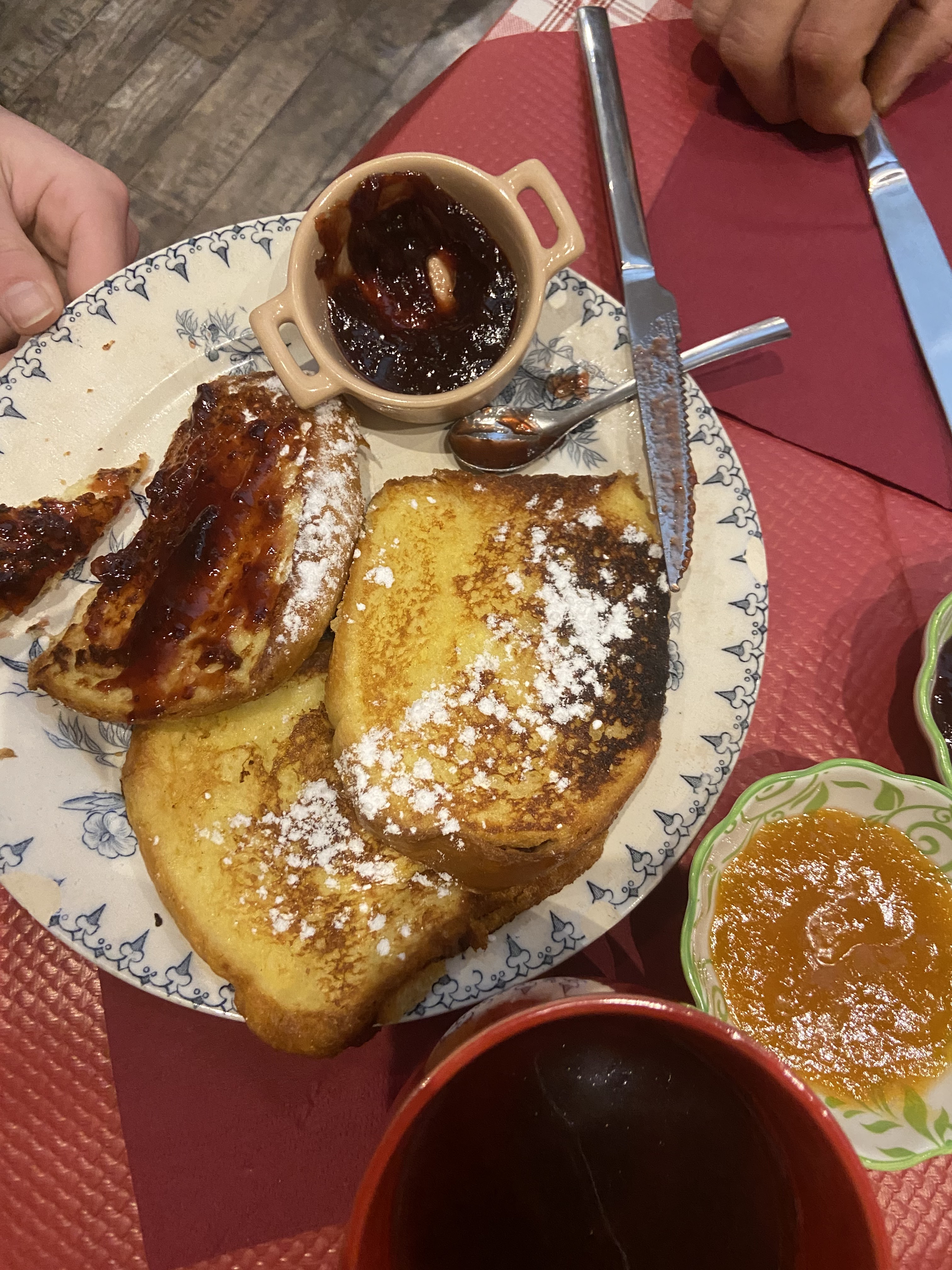 Nous voulions un petit-déjeuner français magique et ce que nous avons eu ressemblait davantage aux petits restaurants locaux que l’on trouve aux États-Unis. Si vous souhaitez un repas rapide et sans chichi avant de commencer vos courses, cela peut faire l'affaire. Simple est le meilleur mot pour décrire l’expérience.