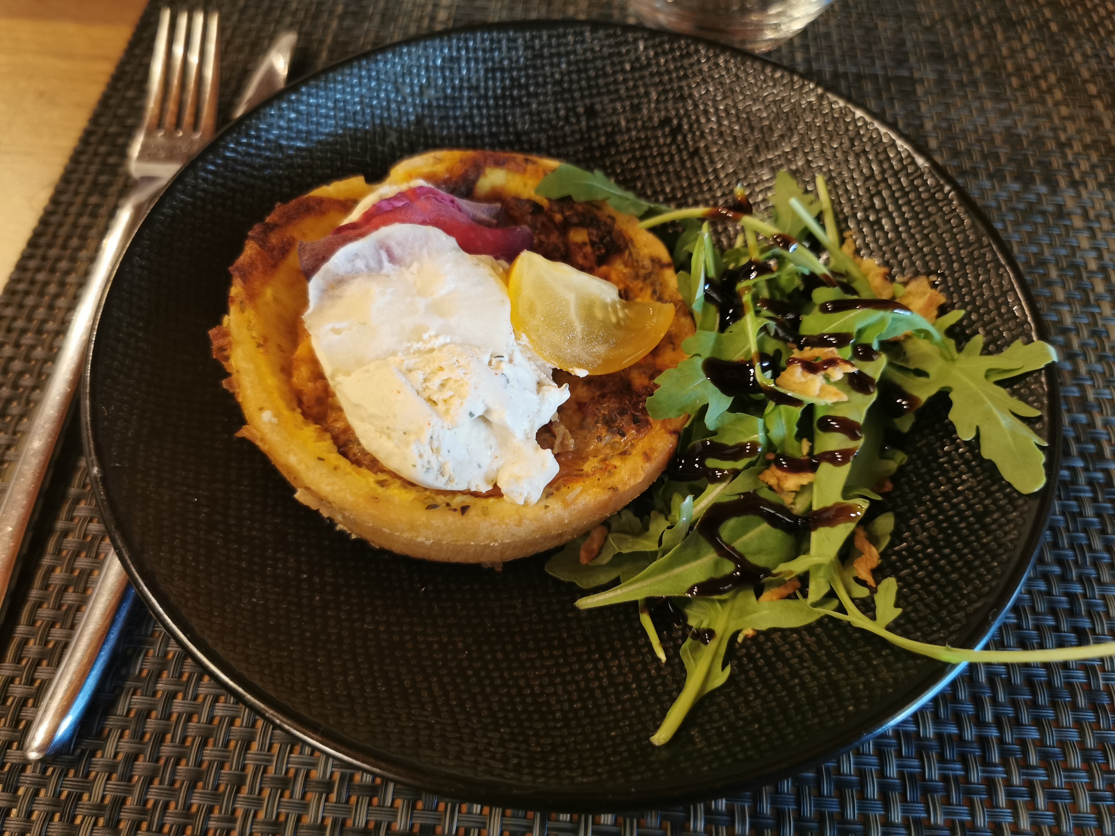 Bof ! Lors de la présentation du menu on ne nous précise pas qu'il y a du poisson ( hareng fumé ) dans l'entrée. Soit ! Ca peut arriver. Au moment du service je précise que je ne mange pas de poisson, à ce moment-là une personne me demande c'est une allergie ou vous aimez pas ? ( drôle de question allergie ou pas quand on en mange pas on en mange pas .... ) comme je n'étais pas allergique, mon assiette est revenue avec juste les morceaux de harengs qui ont été retirés. En effet je suis tombée sur un petit morceau de hareng.... Bref ! Allergie ou pas on change le plat... Donc végétariens, sans porc, personnes intolérantes ou autre s'abstenir...