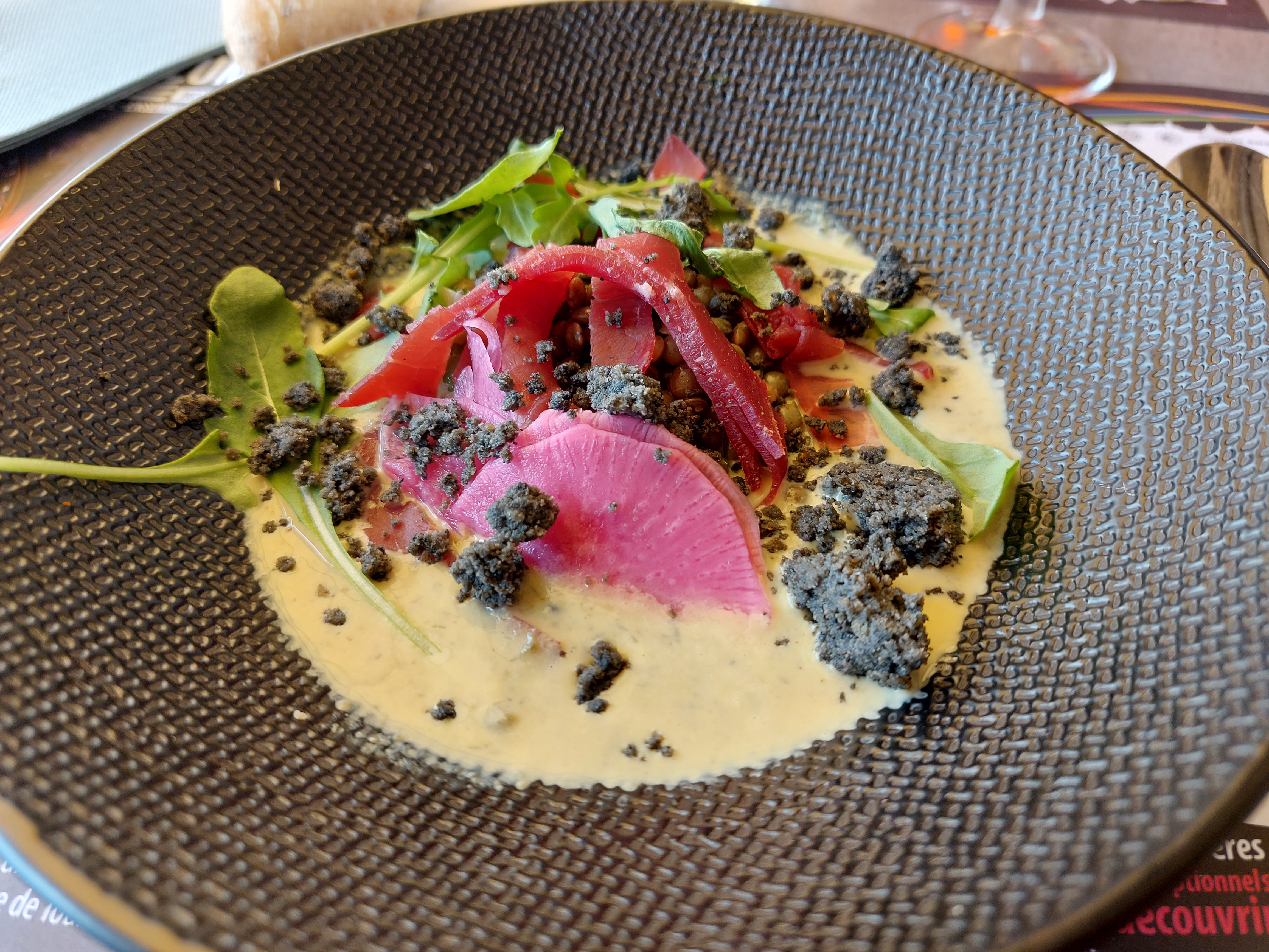 Vraiment délicieux ! On a découvert de nouvelles saveurs, tout les aliments se marient à merveille. Un très bon travail sur le végétal et les aromates. À la fois frais et gourmand on en redemande, une vrai cuisine de chef. Le terroir local est aussi mis à l’honneur notamment les lentilles. On s’est vraiment régalé, je recommande vivement !