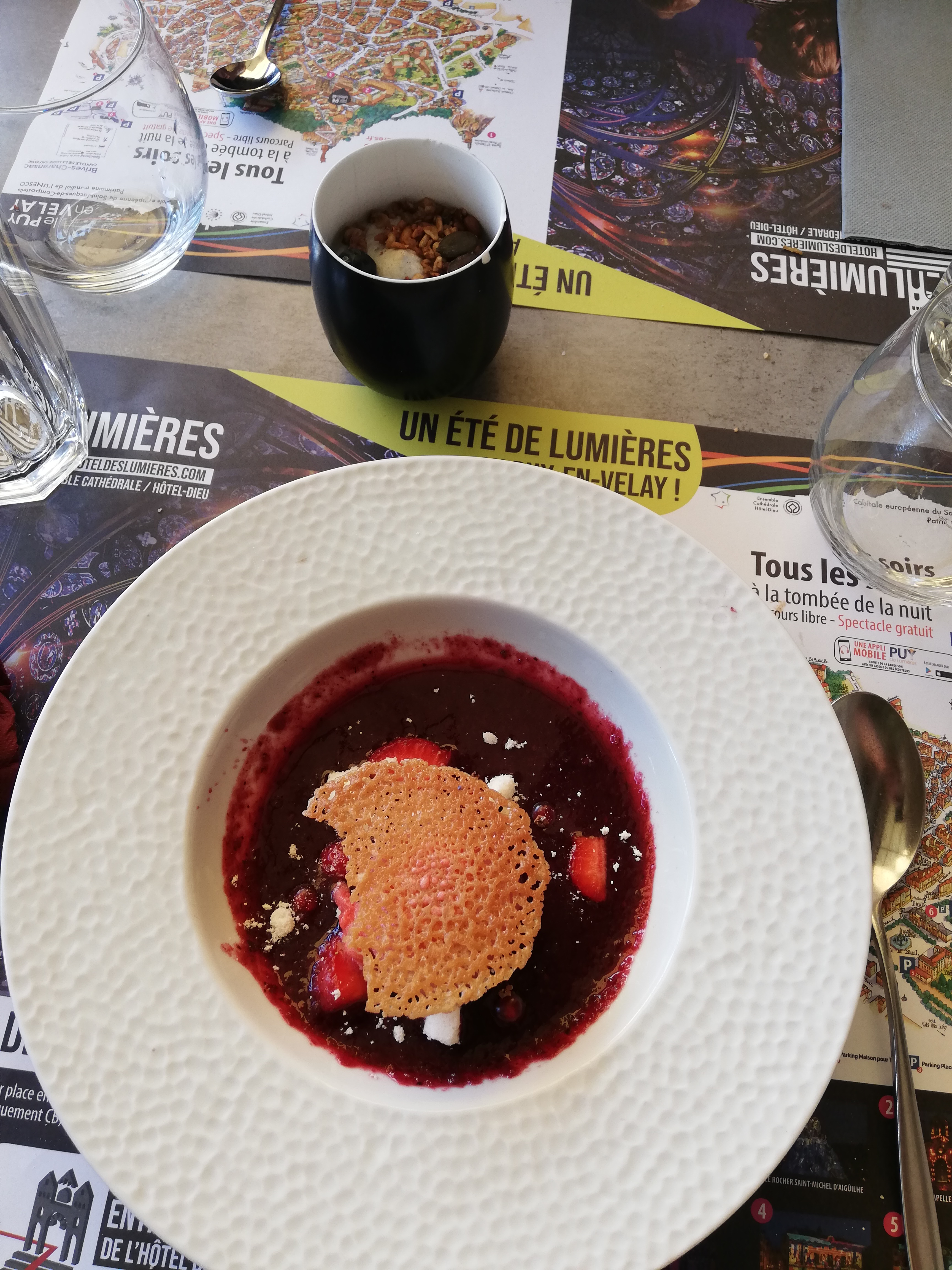 Le meilleur restaurant en tout point de ceux que j'ai fait au Puy-En-Velay. On voit le talent dans les plats avec des mélanges de saveurs qu'on n'aurait jamais pensé. Le personnel est très gentil, le chef cuisinier nous apporte le dessert pour conclure le repas ce que je trouve être une superbe idée et qui puis est est une personne très agréable et passionnée.
