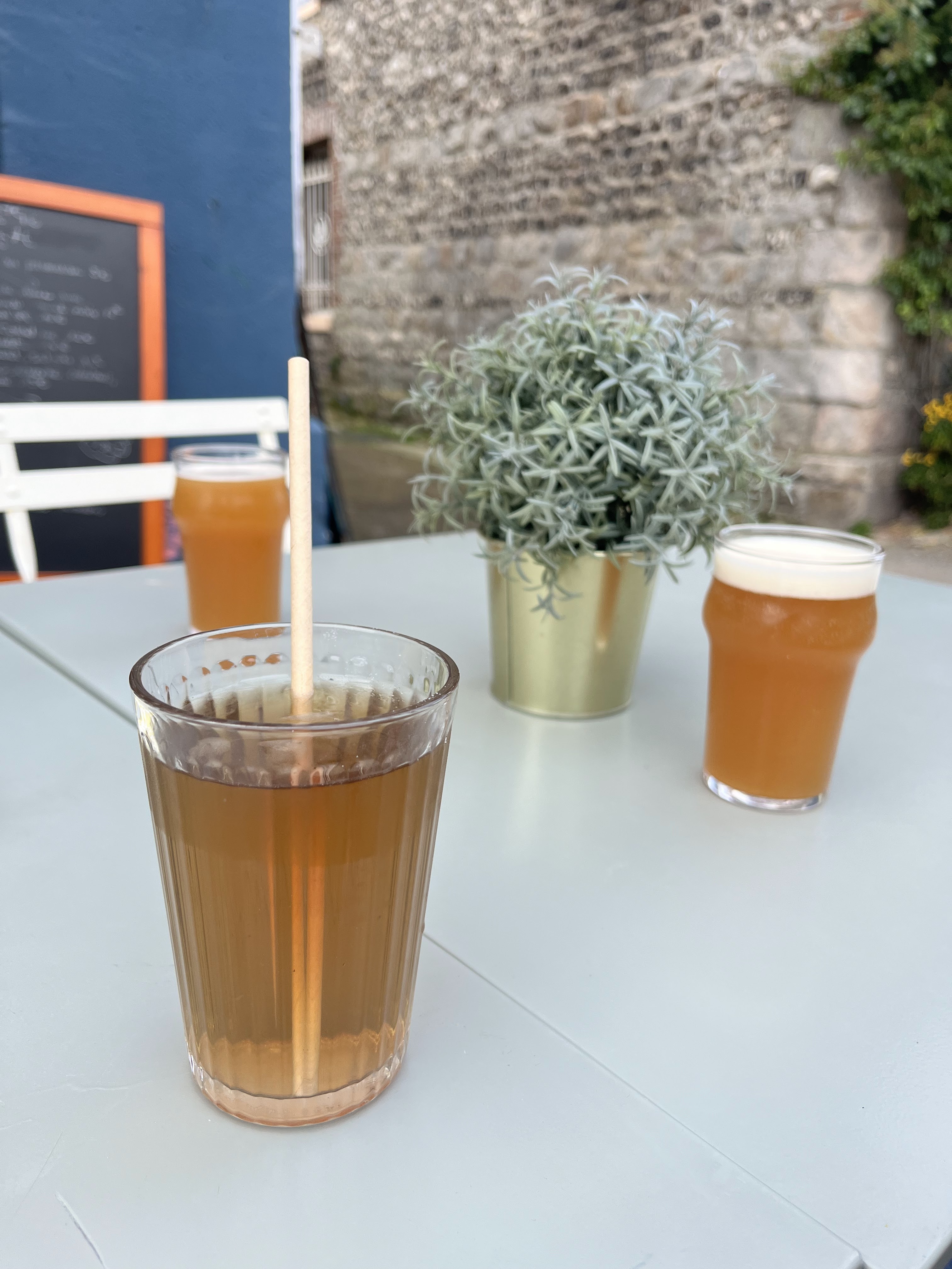 Fabuleux ! Je n'apprécie pas les glaces mais je me suis laissée tenter par leurs parfums. Pr ma part, une boule fraise/figue : un délice ! Mon ami, tout aussi enthousiaste avec une boule pêche/abricot. Ainsi que leur limonade artisanale et leur jus de fruit d'un producteur normand situé à Heurteauville. Bravo !