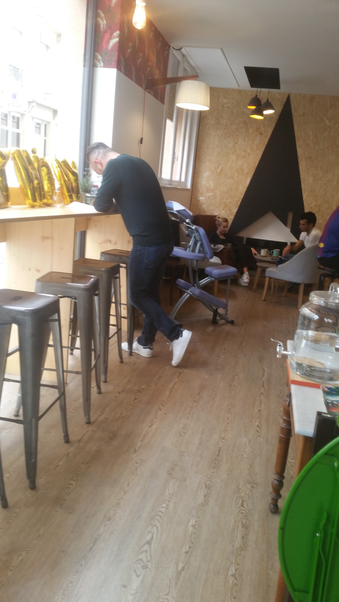 Super endroit pour un retour de vacances ! Cosy, accueillant, Calme. On y mange une excellente salade parfumé d’épices, ainsi que des pâtisseries à tomber !!! Je recommande chaleureusement votre café ! Merci à Didier pour ton accueil !