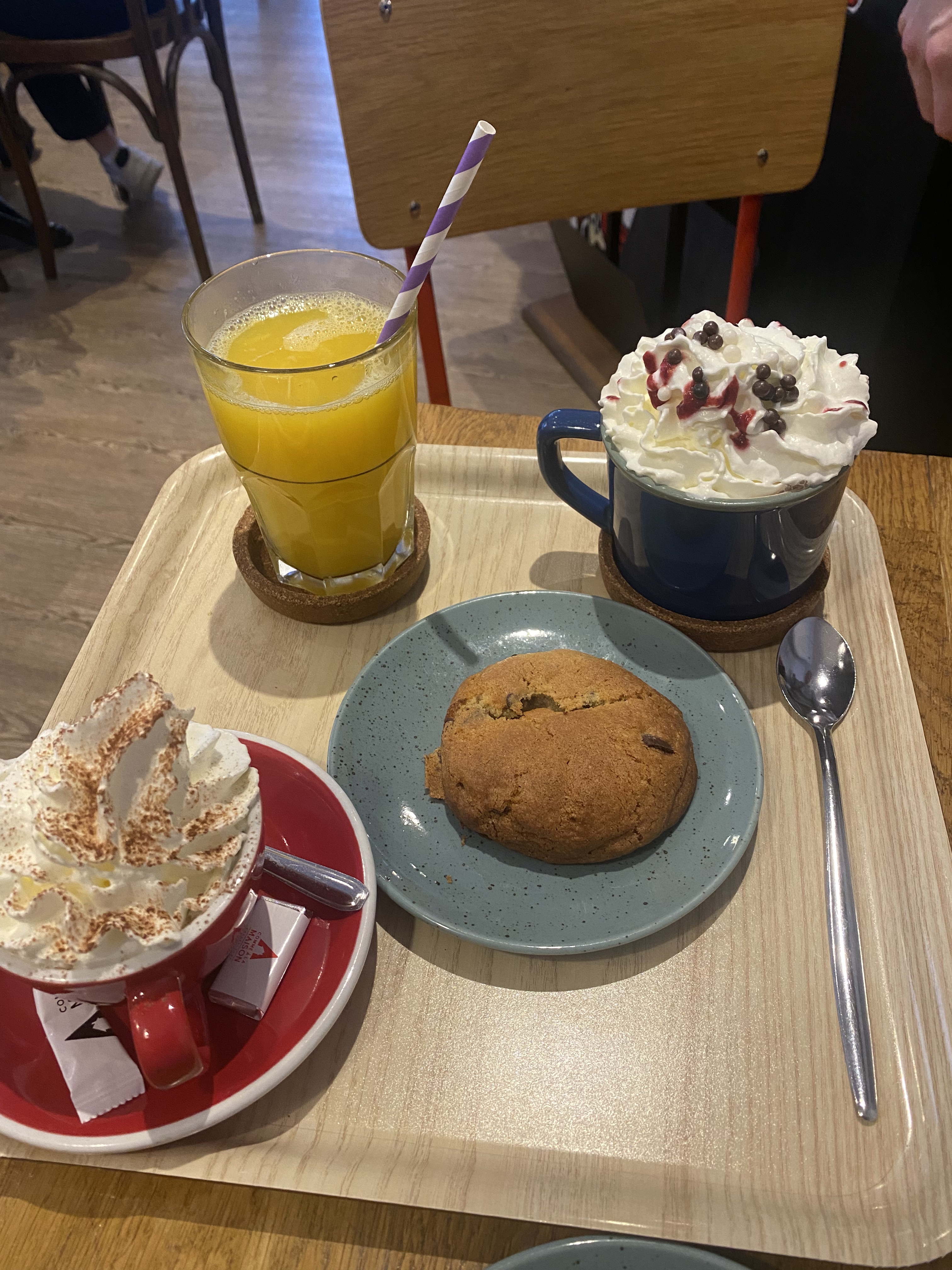 Les pâtisseries et le café sont passables, sans plus. Par contre le personnel est franchement peu accueillant. Heureusement que c’est bien plus chaleureux à la maison ! C’est aussi très bruyant. Il y a de bien meilleures options dans le coin.