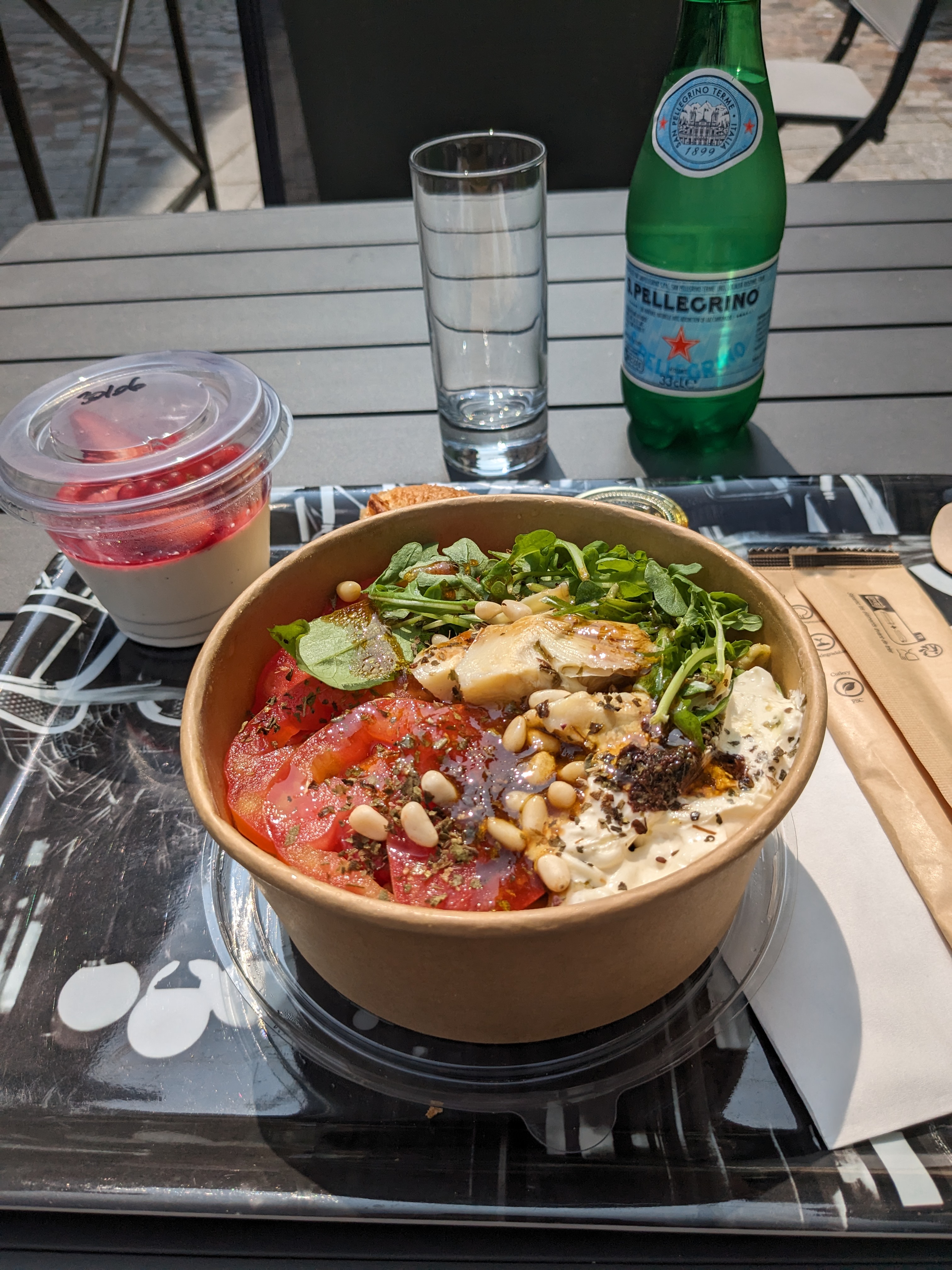 Bien sympathique, j'ai mangé en terrasse une salade italienne fraîche et une panacotta bien agréable avec une petite bouteille d'eau pétillante, le tout pour 14 euros.
