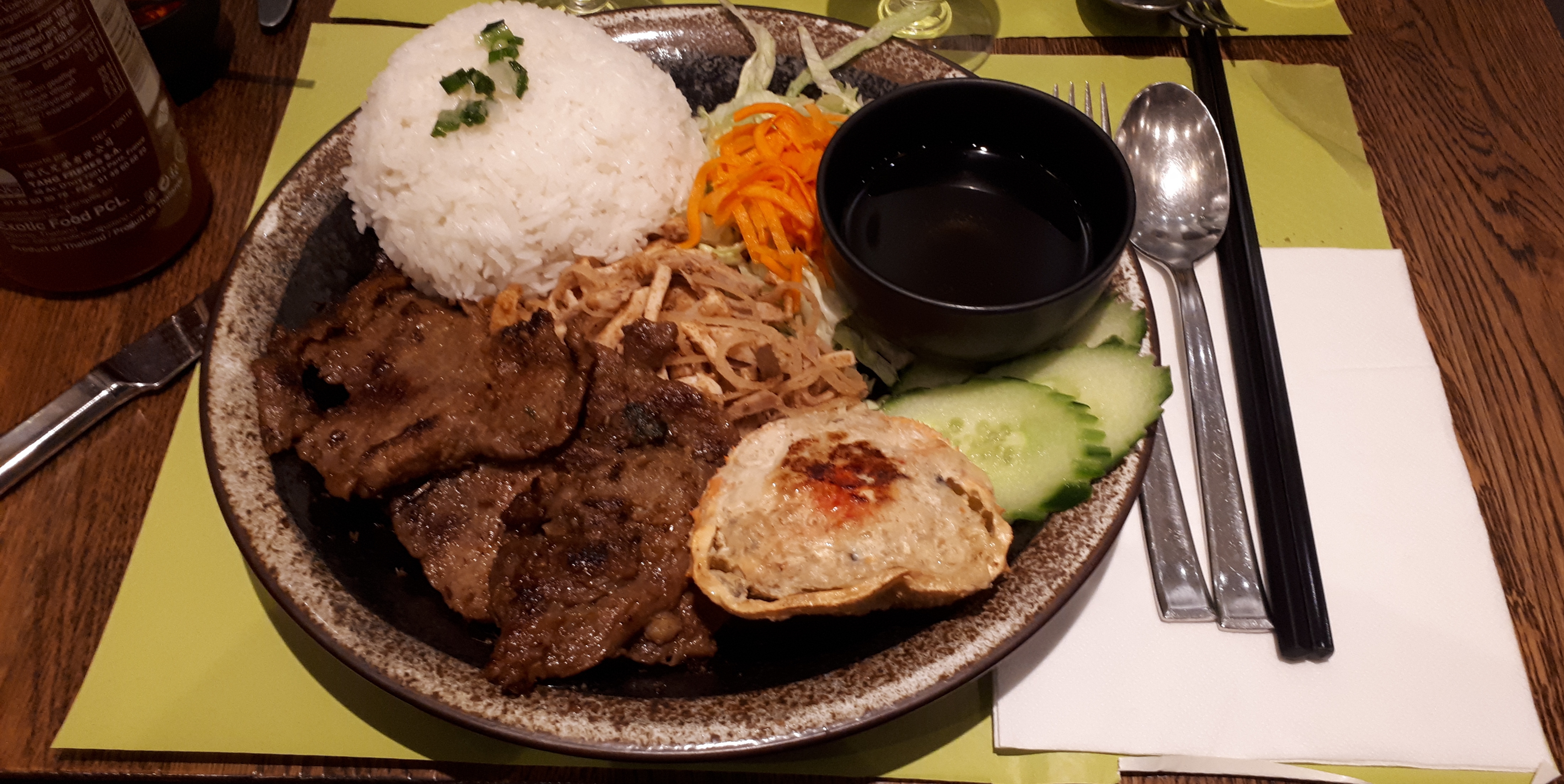 Excellent accueil dès notre entrée dans ce restaurant élégamment décoré. Les plats sont généreusement copieux, les viandes bien marinées, le riz et les vermicelles de riz sont cuits à souhait. Une bonne expérience culinaire, comme au Vietnam.