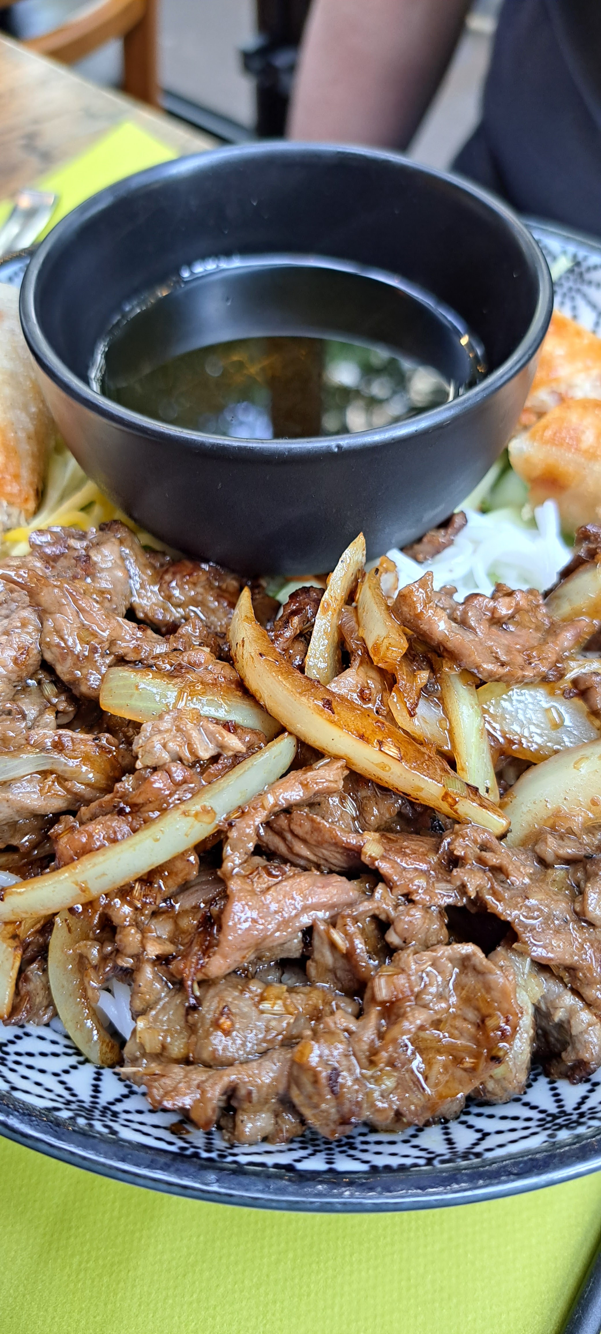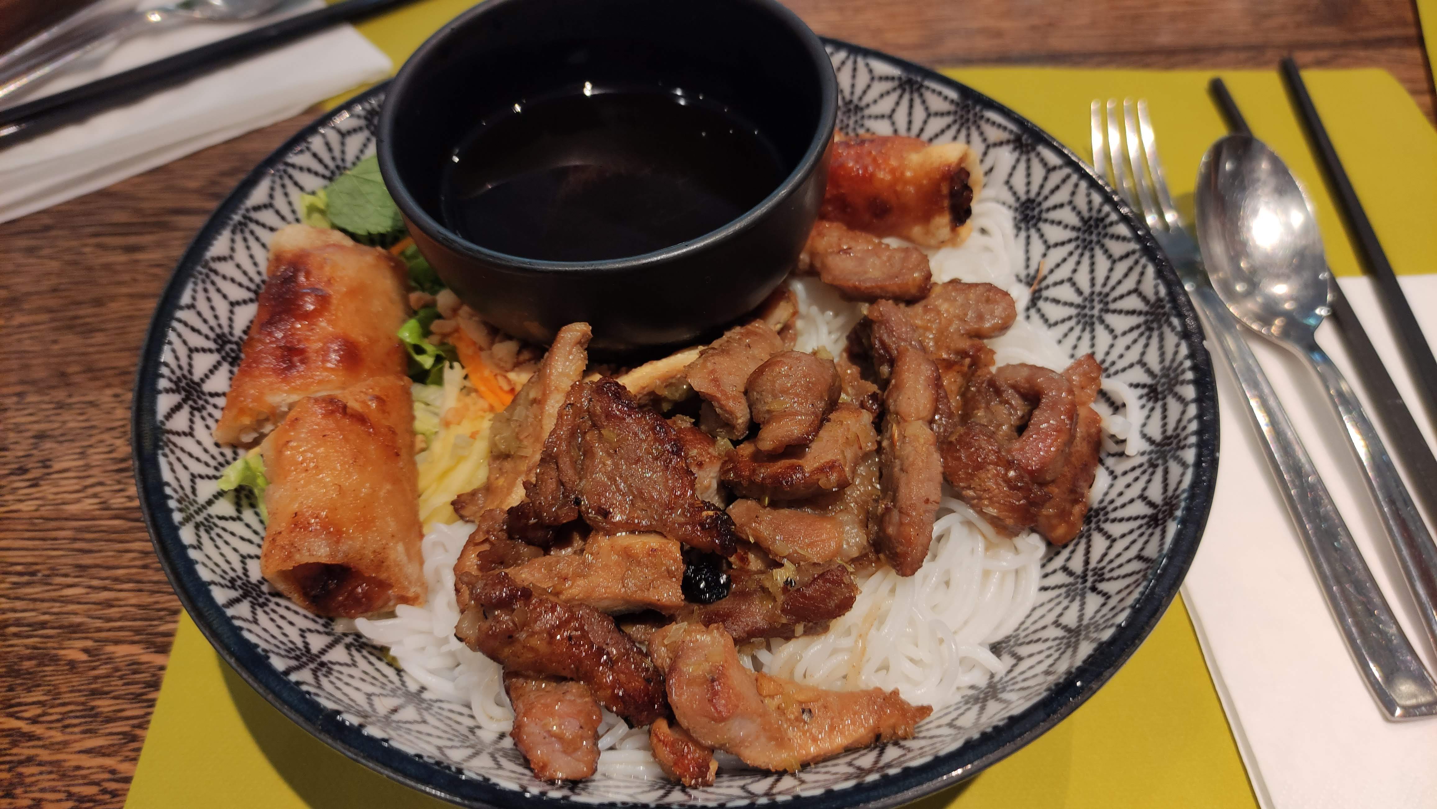 Restaurant à conseiller 👏👏👏 Grand bol de Bo Bun avec bœuf et pâtés impériaux 👌, restaurant très sympa avec 2 autres petites salles distinctes au fond, restaurant bien décoré, belle vaisselle et présentations, serveurs agréables et souriants, jolis plats copieux et bien cuisinés 👏👏👏Bravo. Pourquoi ne pas rajouter la soupe Hu Tui au menu ?