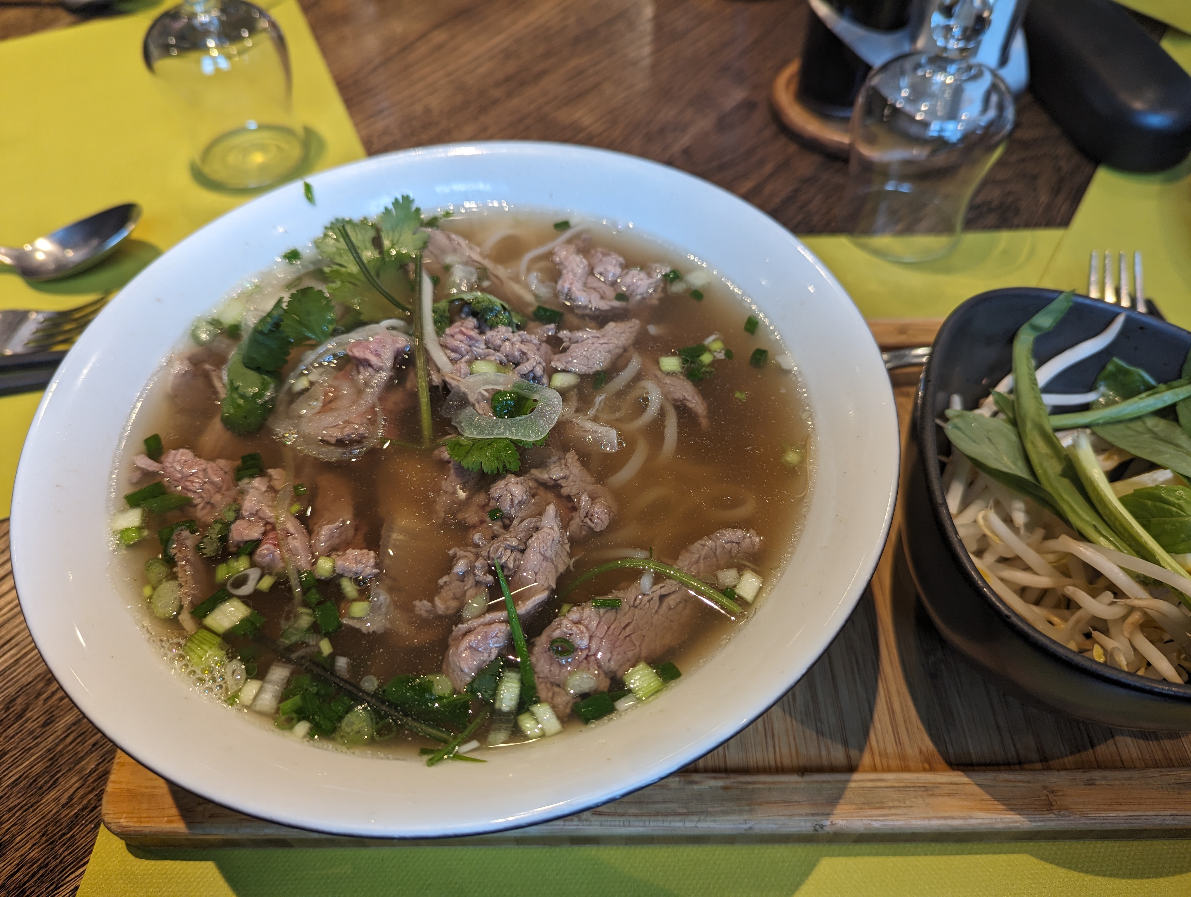 Le cadre est plutôt joli, la présentation des plats sont soignés. Mais le goût des plats est plutôt insipide. Pho très moyen pour le quartier, le bouillon semble chimique. Je pense que la clientèle est surtout attirée par le cadre. Pour la nourriture il y a bien mieux dans le quartier.