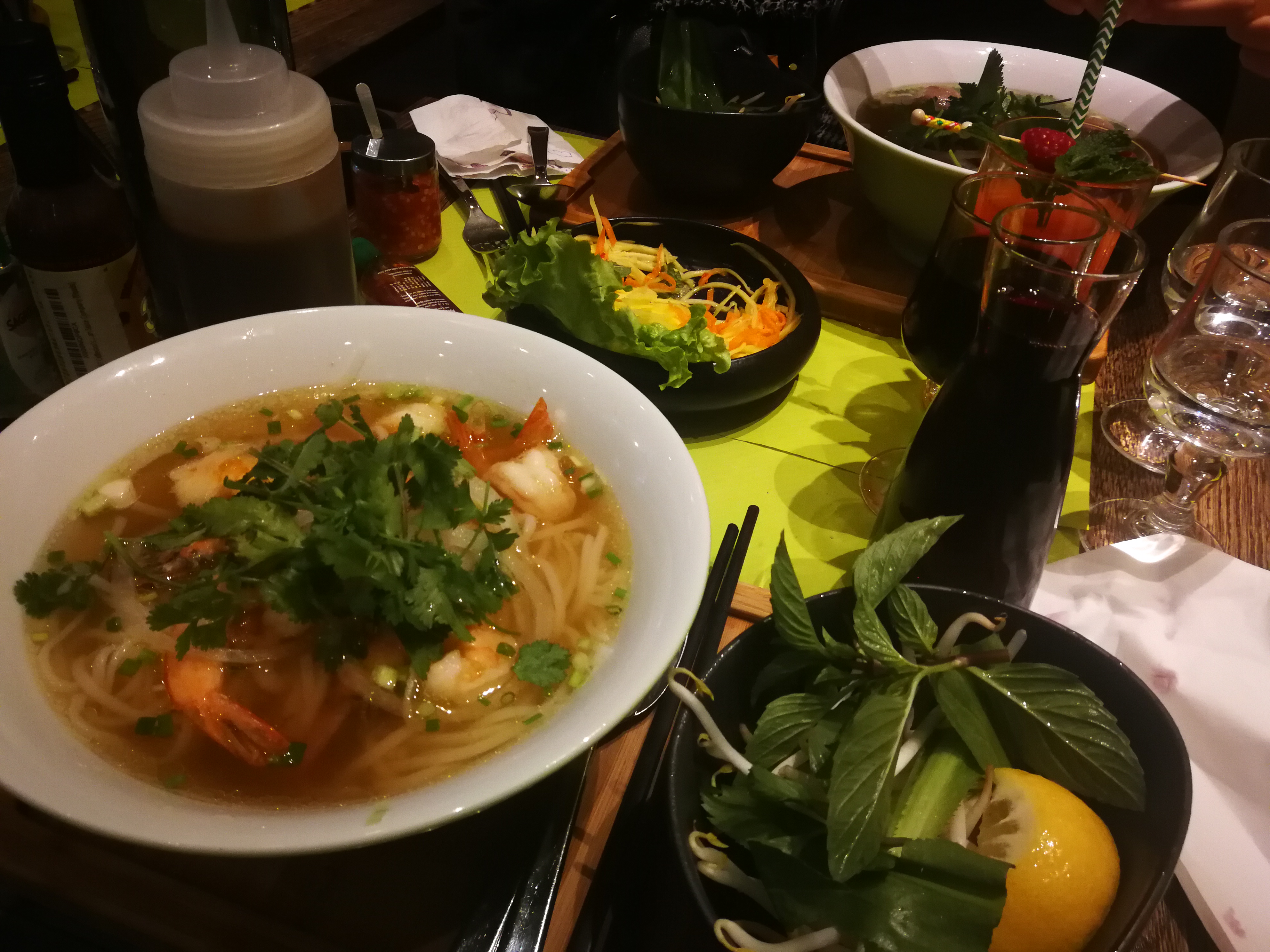Pho et salade aux crevettes 5 Etoiles servis rapidement avec le sourire dans un cadre agréable, quoi de plus ?