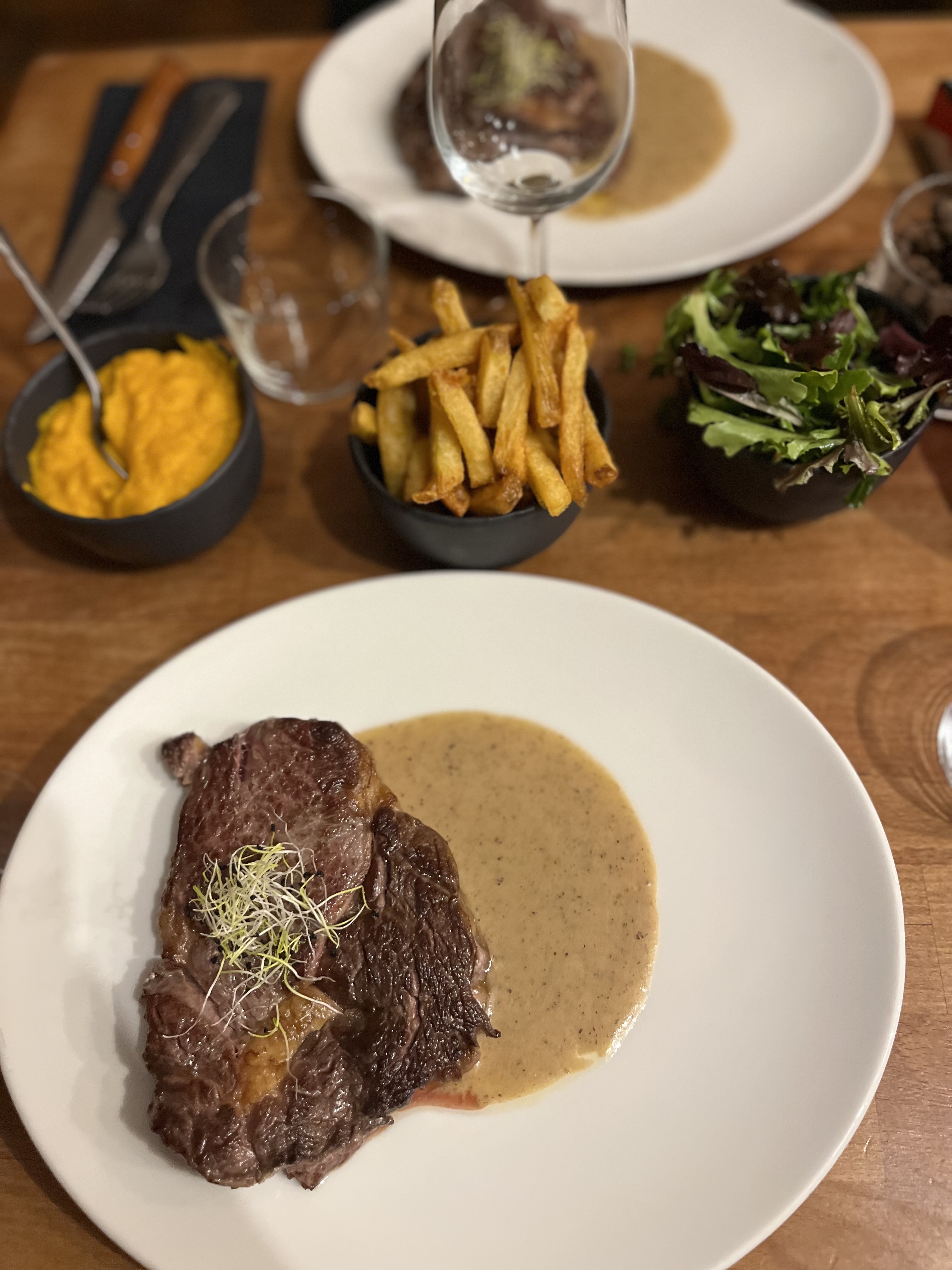 Nous avons trouvé cette adresse un peu par hasard et ce fut un véritable coup de coeur. Les prix sont étonnamment abordables quand on voit l'emplacement du restaurant et la qualité des plats. Le magret de canard était une merveille, une assiette pleine de saveurs sucrées-salées, délicieux! L'entrecôte était bonne et les frites avaient l'air maison, ce qui était d'autant plus appréciable. Les plats ne sont pas trop lourds, ce qui nous a permis de prendre un dessert pour finir sur une note délicieuse avec le pain perdu au caramel beurre salé. C'est sûr, on sera de retour très vite!