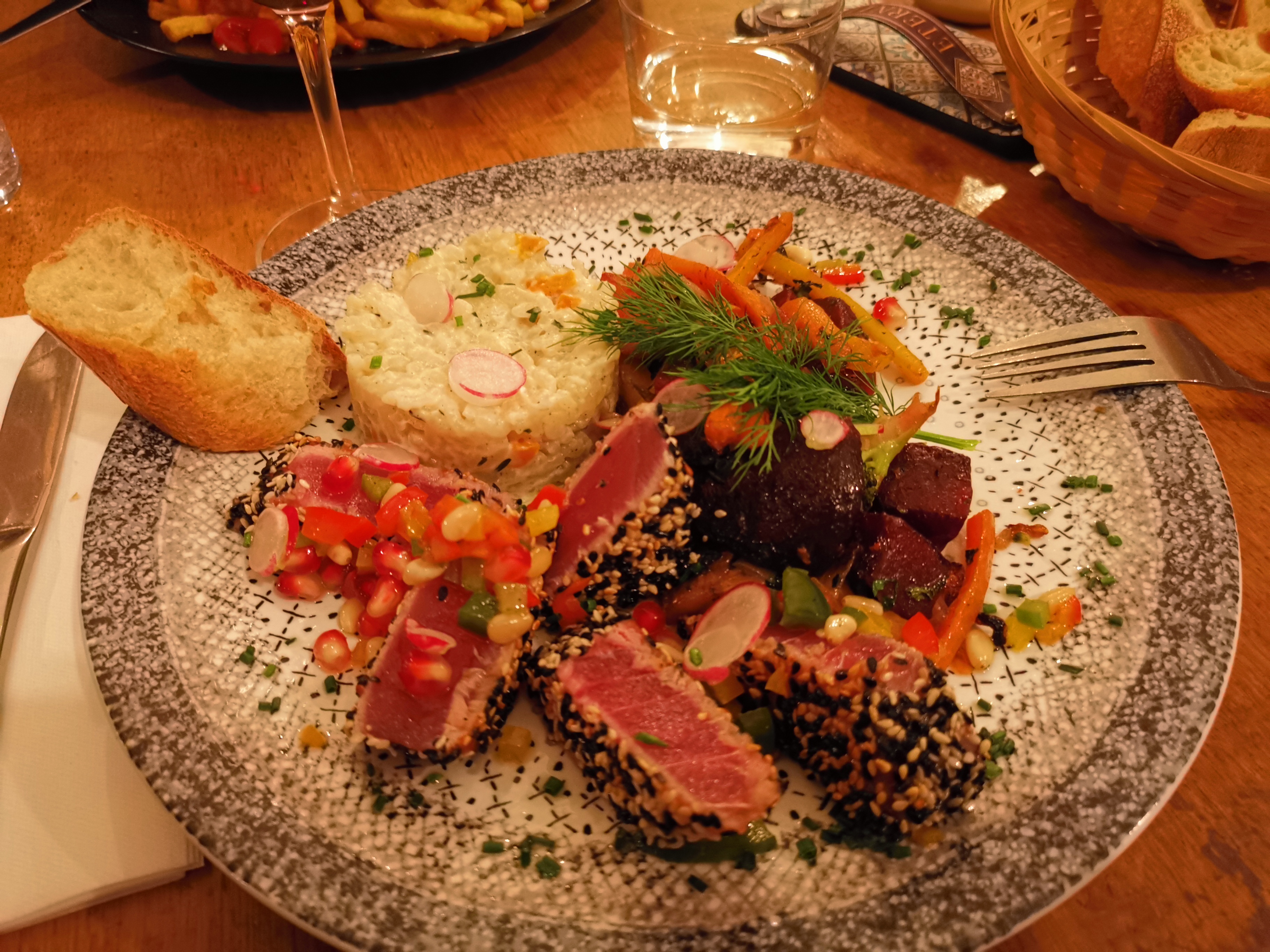 Super resto, cuisine française comme on l’aime. Le juste éloigne qu’il faut des affreuses zone de restos touristiques mais avec une super vue sur la maison de quasimodo