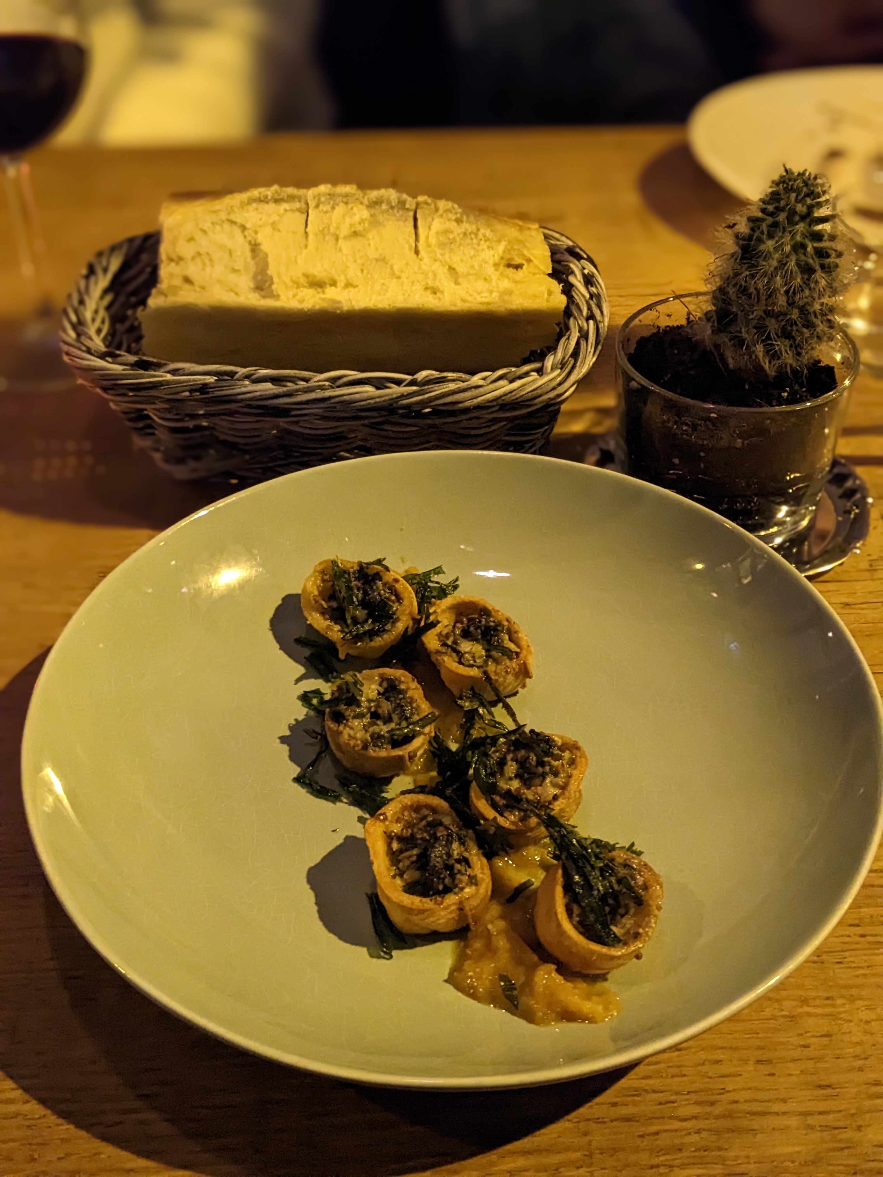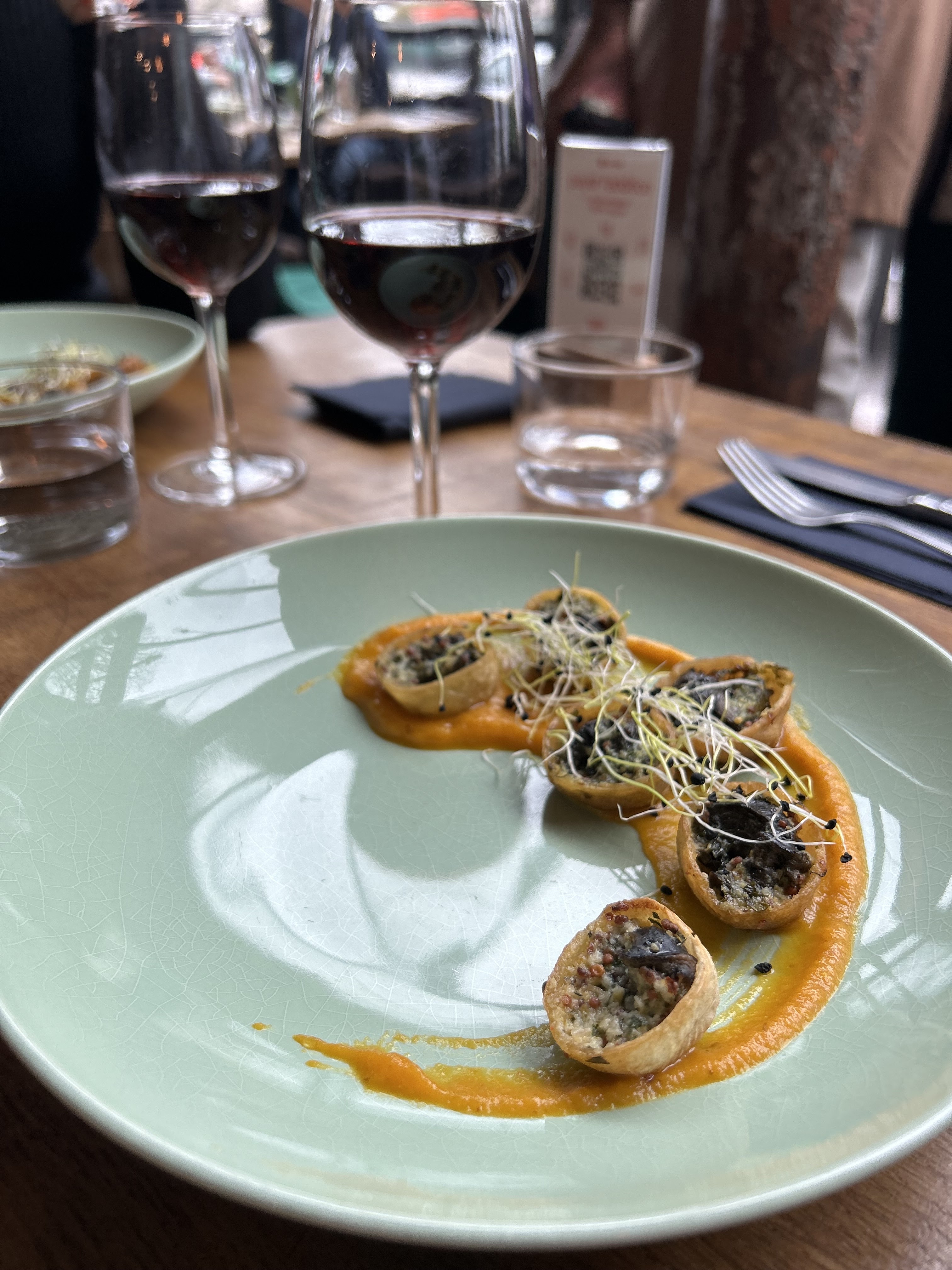 Service au top et original. Ballotine au cabillaud et sauce chocolat ail est délicieux, un peu moins convaincu par les escargots, mais l’affaire du gout
