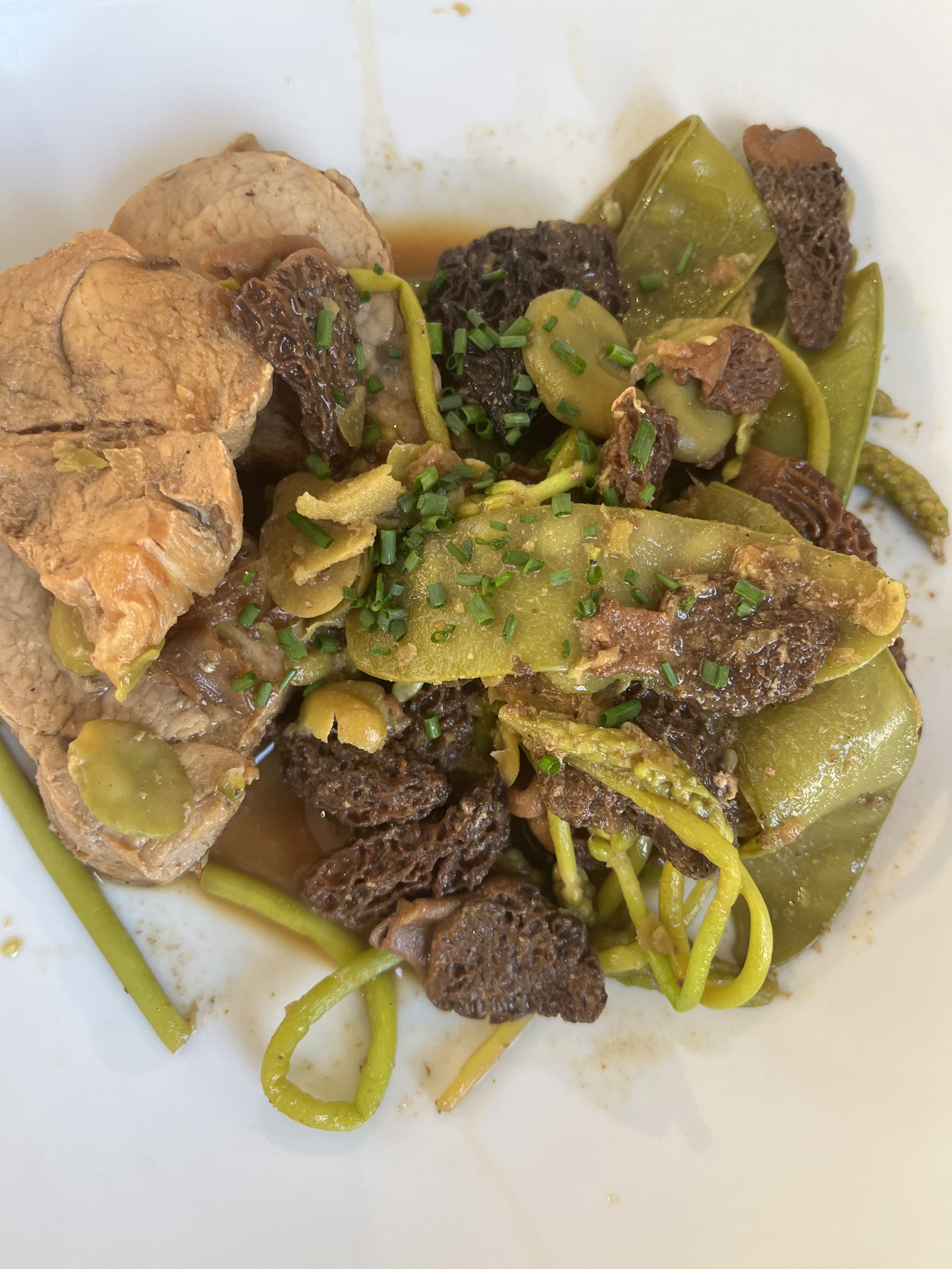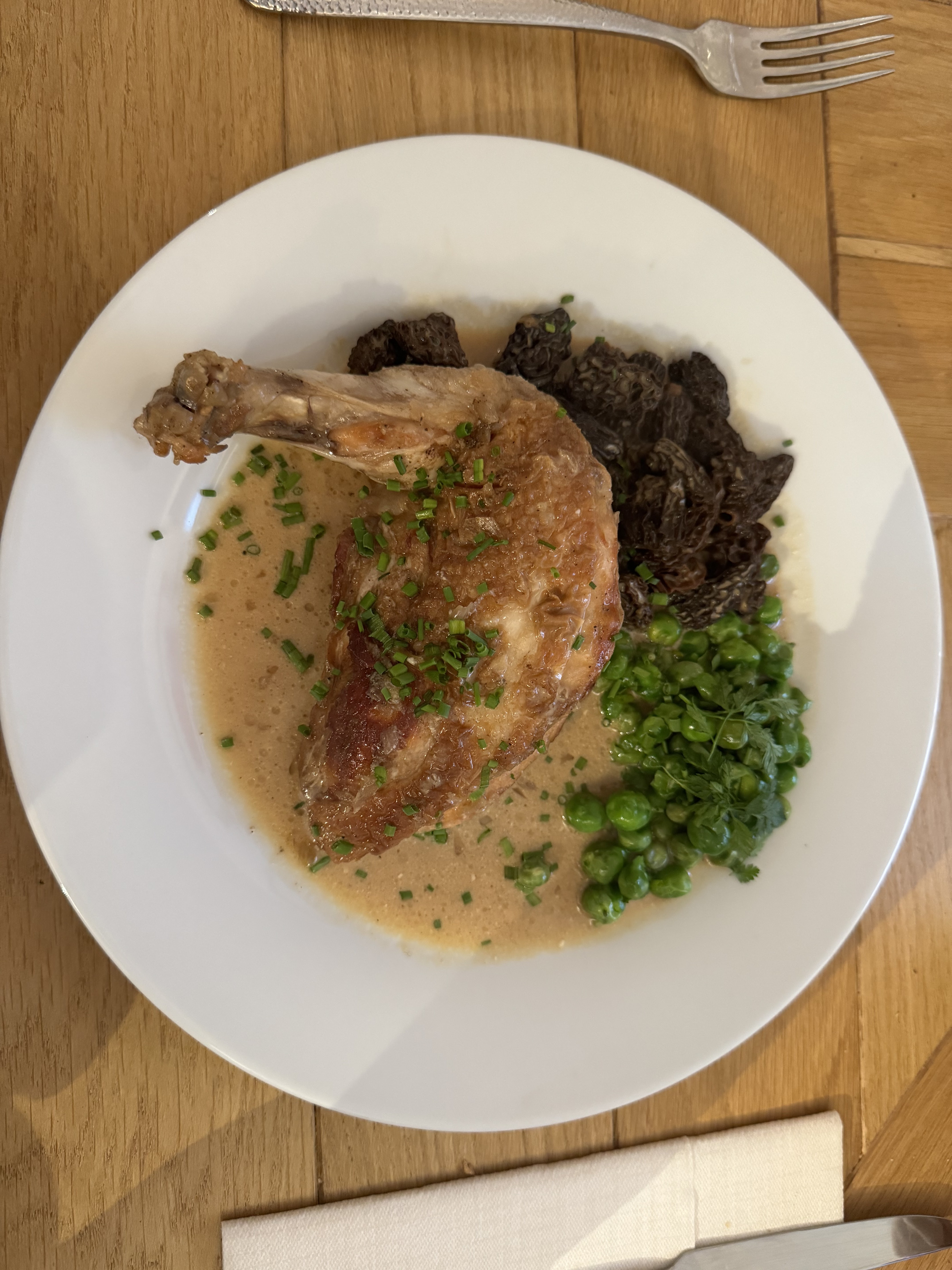 Un endroit tellement mignon au centre de Meursault, servant des légumes délicieusement frais et de saison, cultivés localement par des voisins et amis, a déclaré Alix, la propriétaire. Et plus; nous avons commandé tout le menu. Ragoût de fèves, morilles et asperges sauvages avec poitrine de pigeonneau ; les plus petits pois verts ; asperges généreusement servies et parfaitement cuites avec une mayonnaise aux herbes émulsionnée de crème ; de jolis poireaux avec une sauce aux herbes totalement différente et tout aussi excitante ; Croque-monsieurs au jambon et fromage parfaitement grillé avec truffe noire d'été et salade verte. On nous a servi trois vins blancs différents au verre, du Roulot, de Montille et Les Romains Sancerre de Vacheron. Même les cafés étaient super. Un déjeuner rare et spécial. J'ai hâte de revenir.