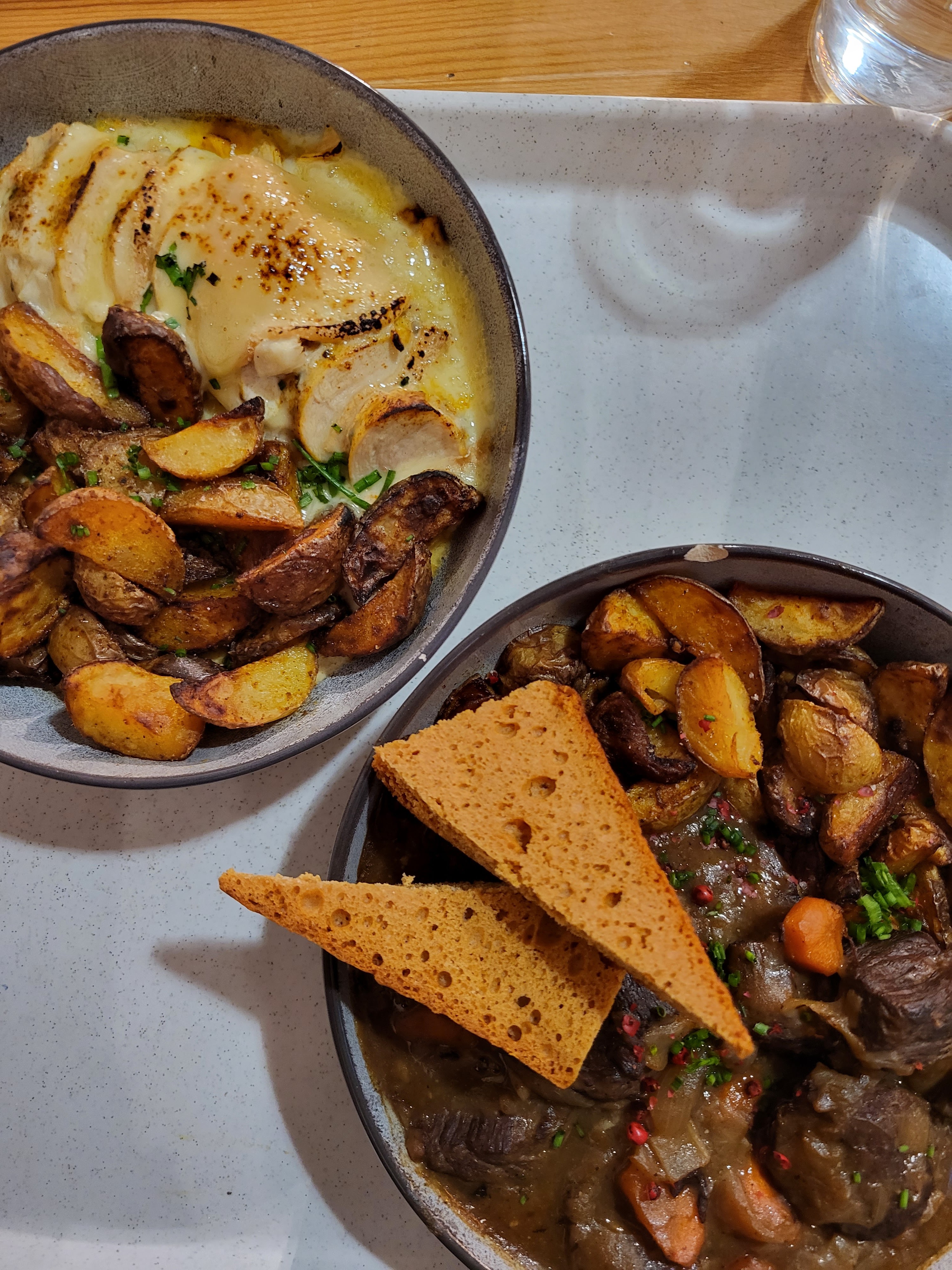 Dans un endroit très sympa, 2 cuisto passionnés qu’on voit travailler de la banque ou on est assis. Le plat était un émincé de poulet avec maroilles gratiné, juste excellent. La cuisson du poulet parfaite , le tout accompagné de pommes de terre rôties. Préparation maison avec des produits frais assurément. Je conseille à tout le monde cet endroit.