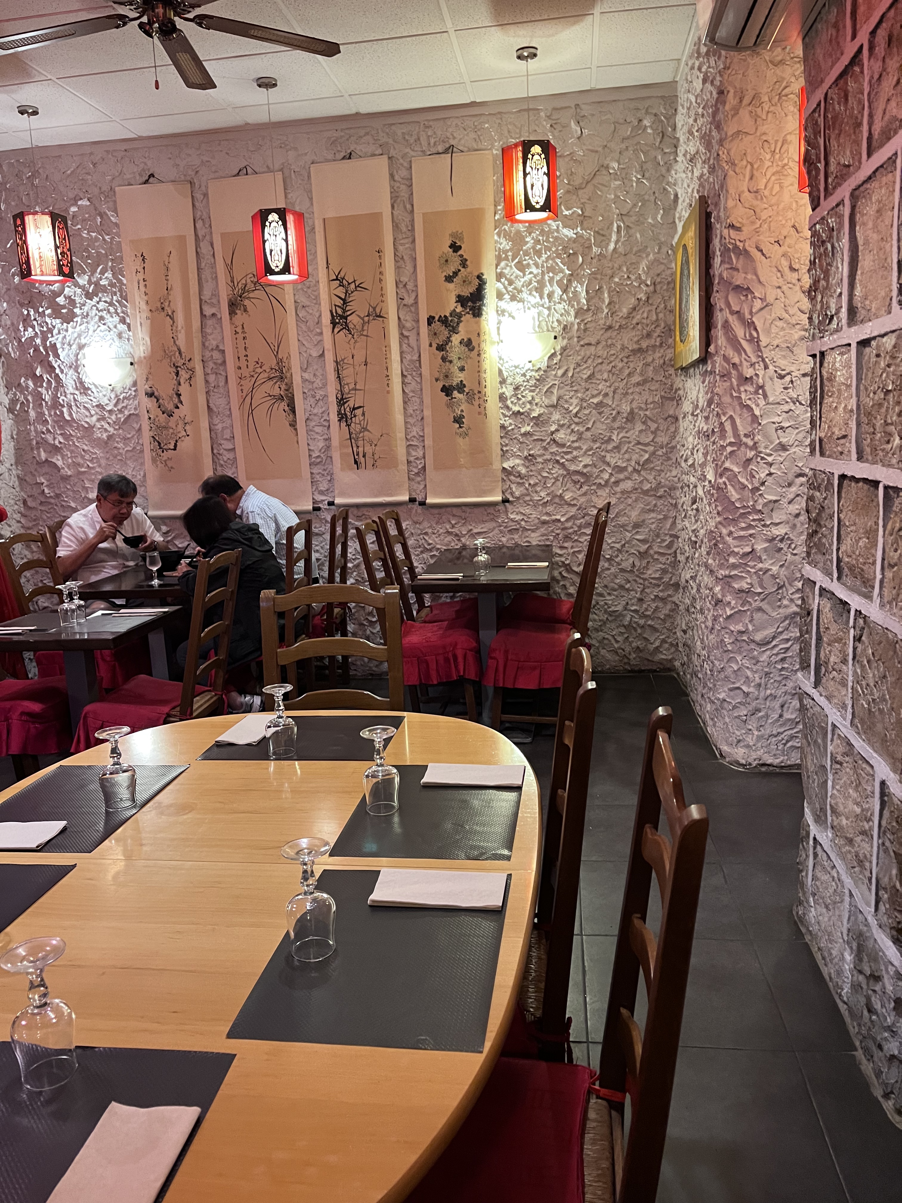 Très bonne cuisine. Fait maison. Service avec le sourire. Restaurant familial, fréquenté par des asiatiques majoritairement. Seul hic, le système de ventilation qui fait que les odeurs de nourriture et surtout les fumées parviennent dans le restaurant (dont la salle principale est petite - 30aine de couverts au maximum). J'ai été assez incommodé par un piment qui a dû trop cuire et cela m'a piqué les yeux et les muqueuses. Les quelques clients présents ont dû se moucher à plusieurs reprises. Et pourtant la porte d'entrée était ouverte. Pas mal de plats sont pimentés (normal dans la cuisine chinoise). Donc, n'hésitez pas à préciser si vous ne voulez pas trop de piment). A part ce désagrément, qui, je l'espère pour eux n'est pas quotidien, j'y retournerai car j'ai bien apprécié ce que j'ai mangé.