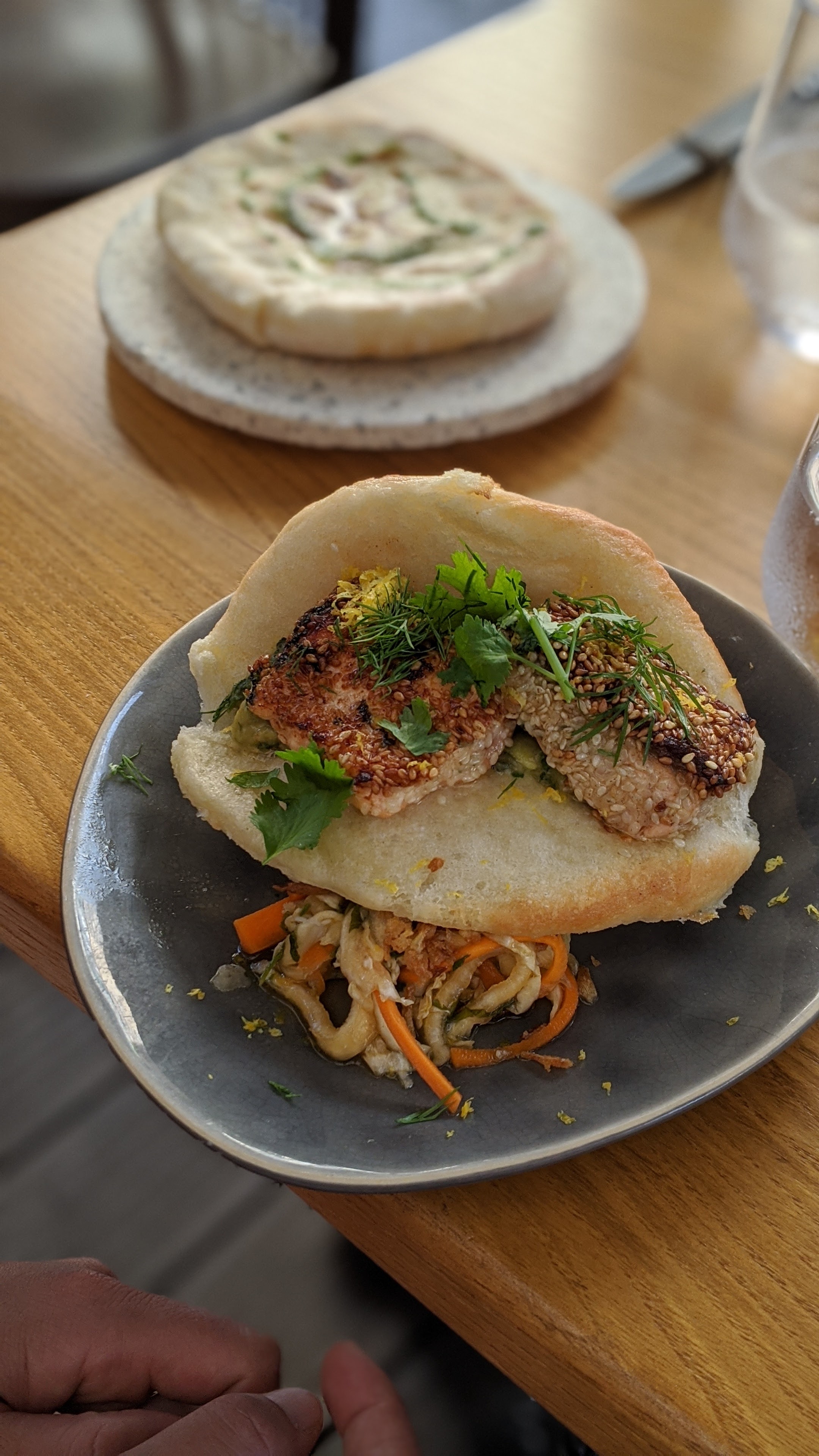 Très bon Bao Burger servis copieusement et savoureux. Deux petits bémols : les accompagnements pas au même niveau et la table assez inconfortable tellement elle était petite et donc difficile de tout poser et de s’installer dans une bonne position pour déjeuner.