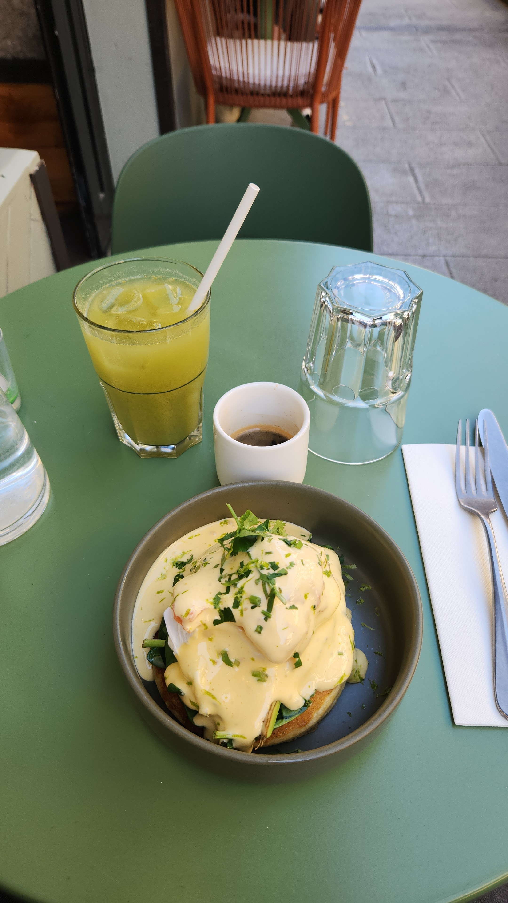 Très bon brunch sur Nice. Une carte variée avec des plats qui ont du goût et qui se distingue de ce qu'on peut voir dans les brunch tradi. Nous aurions aimé avoir une table à l'intérieur mais avons oublié de le spécifier, nous y penserons pour la prochaine fois !