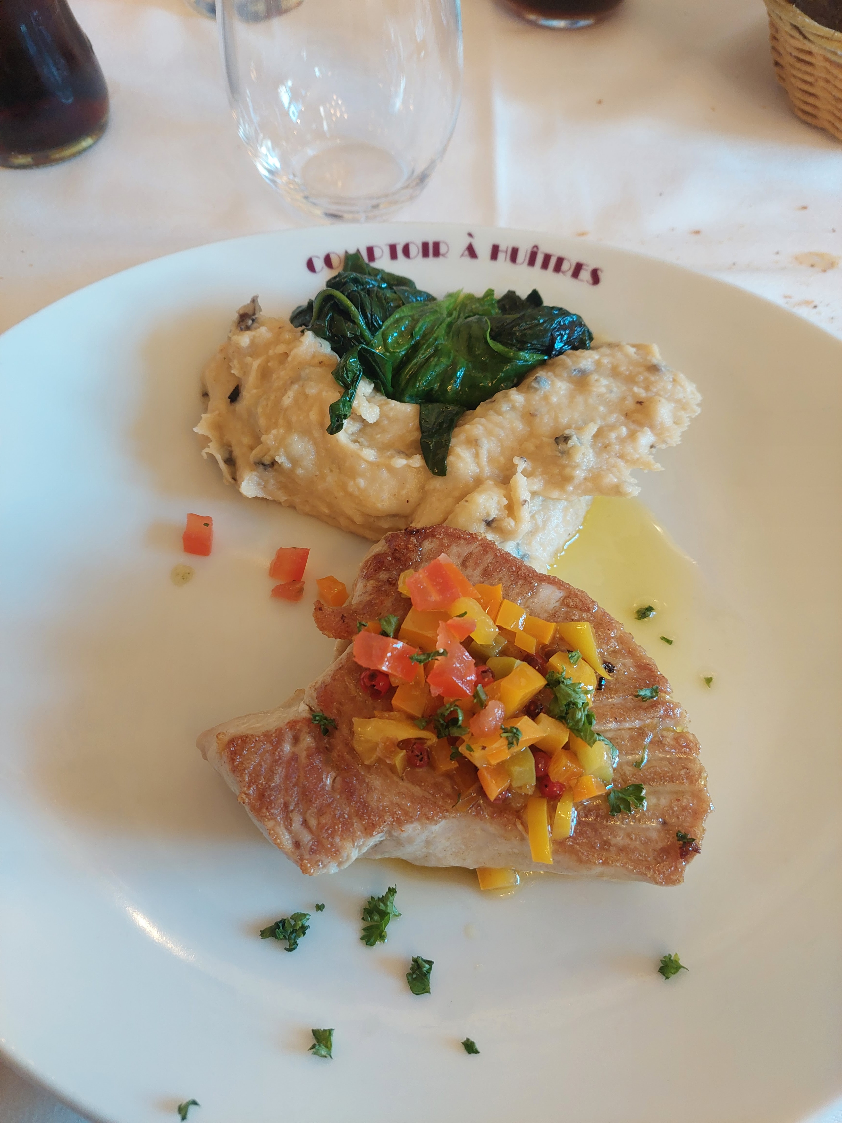 nous somme arrivés là par hazard, et vraiment ce fut une très belle découverte mon commentaire sera assez simple , tout était bien l accueil chaleureux , le service au top , rapide et discret , sans temps mort , et puis surtout la cuisine des huitres excellentes qu elles soient crues ou cuisinées , la cuisson du turbo et du thon rouge parfaitement maitrisée , la purée de pomme de terre étonnante , mais très bonne nous nous sommes fait plaisir , c est une belle adresse , à recommander chaudement