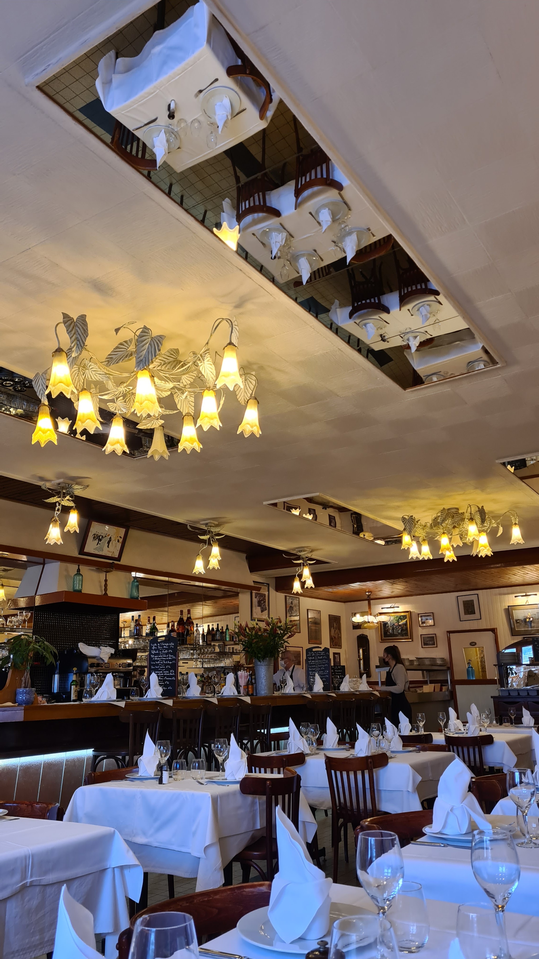 Bistrot à l ancienne, un vrai régal ce côté un peu retro j adore. Nous avons goûté des plats peu communs par exemple du foie de lotte en salade, étonnant, j ai adoré également le côté généreux de chaque assiette. Je n ai jamais vu autant de fruits de mer dans un plat de pâtes. Les desserts à l ancienne et faits maison c était délicieux et le service de qualité je recommande