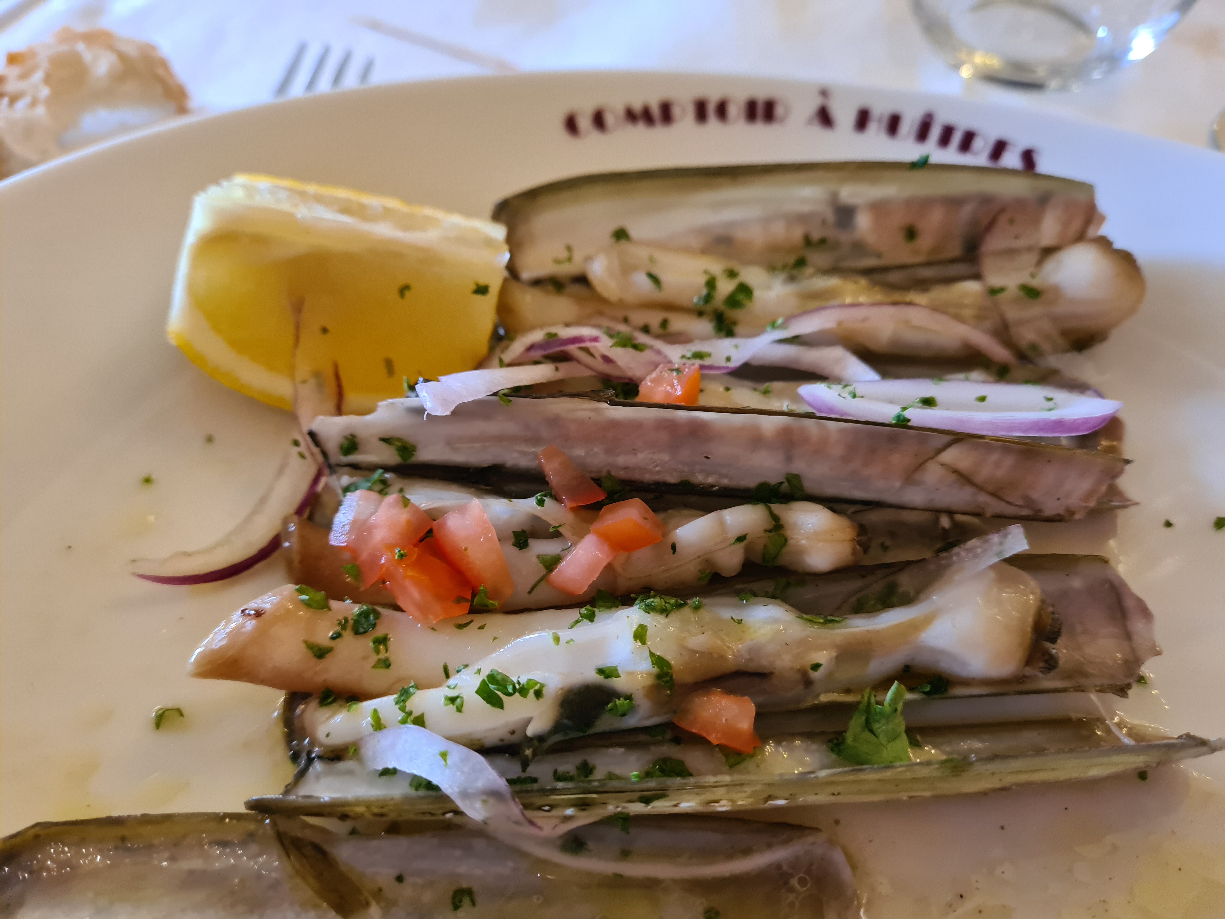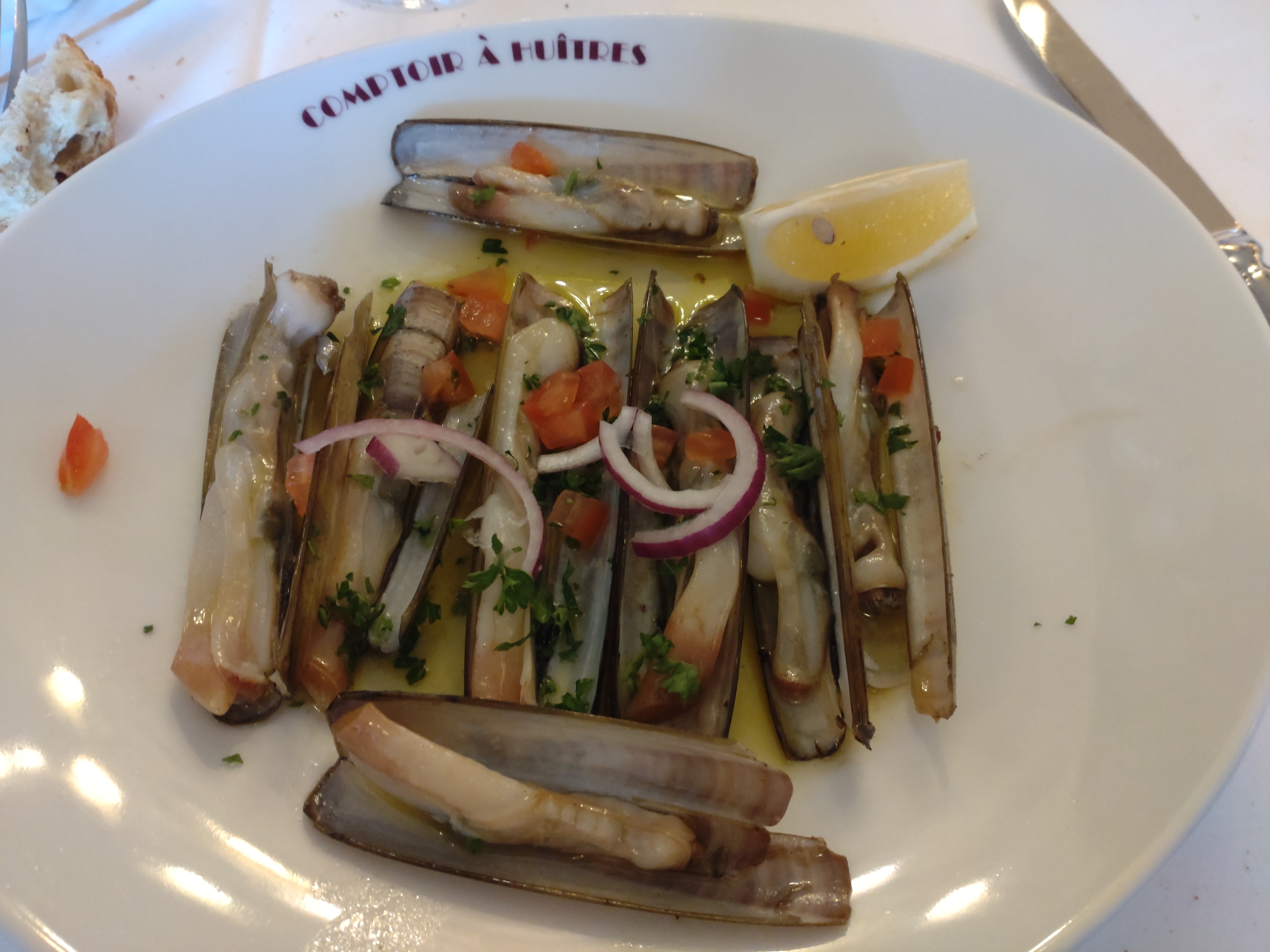 Déjeuner couteaux en entrée et de la raie pour le plat sans saveurs pour part je me suis rattrapé sur le dessert.