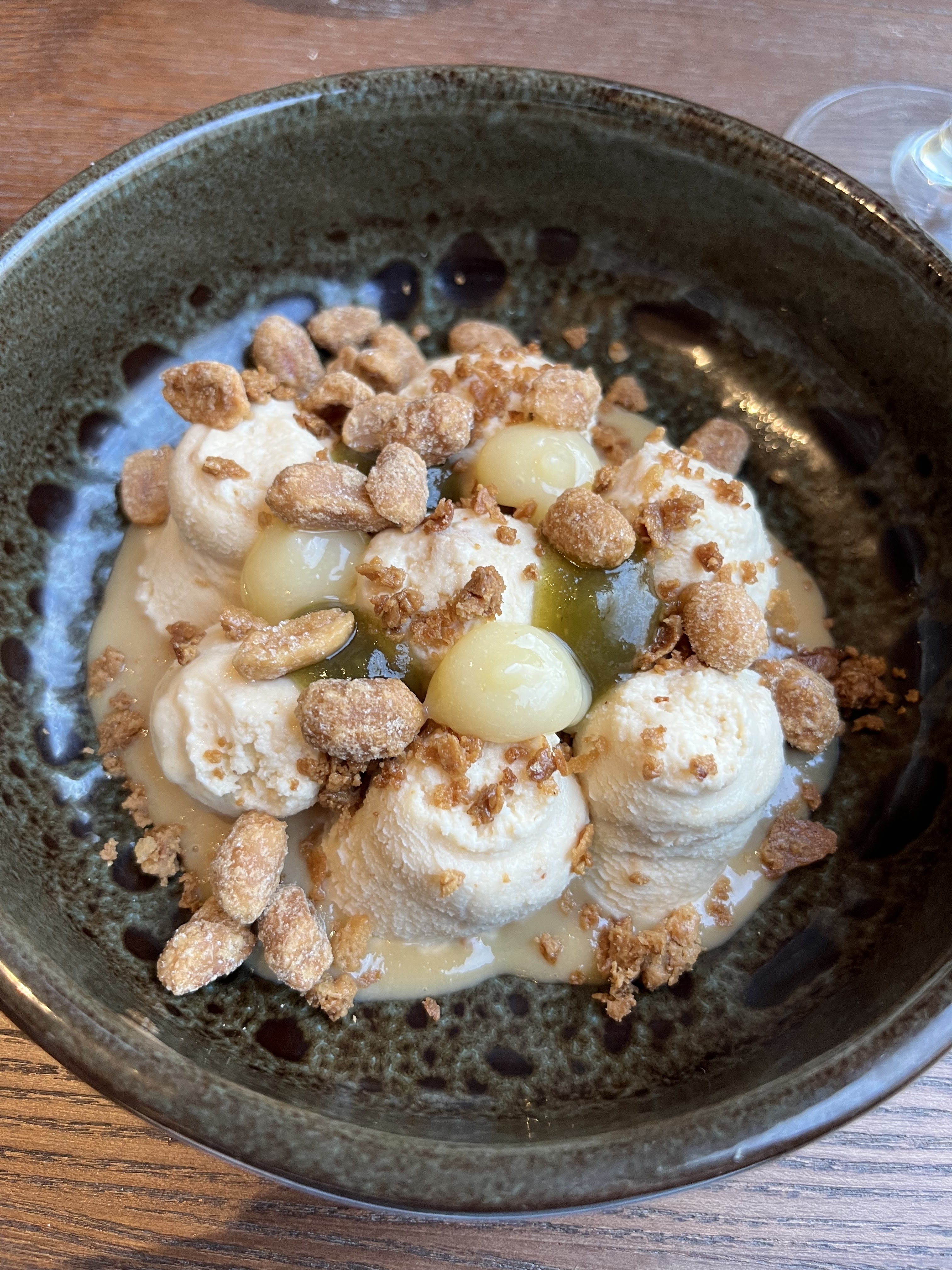 Entrée très bonne à base de daurade et tourteau. Le plat de gnocchis ail des ours était également super bon. Par contre le dessert était vraiment trop sucré, trop d'ingrédients peut être dans l'assiette et on ne sentait pas la cacahuète annoncée... dommage ! Le patron était très sympathique et le lieu vraiment chouette.